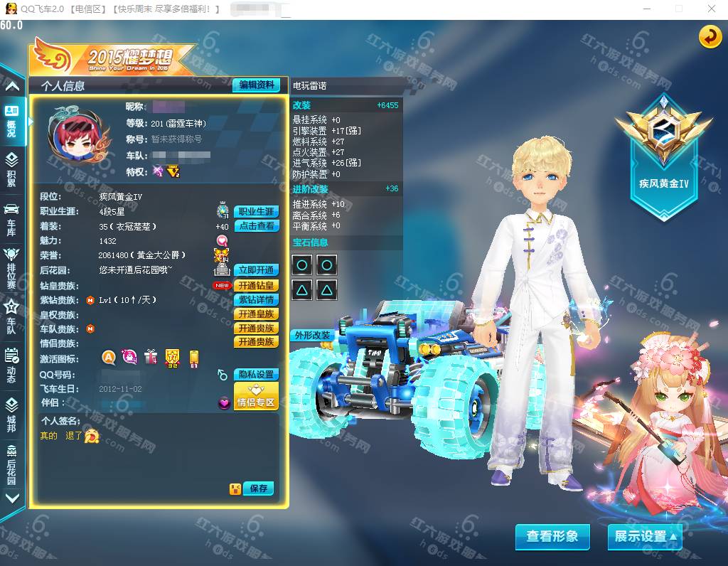 DS4385,红六更号裙762771576【电信一区】魅力1432,荣誉206w,紫钻1级,6A车:高改双四神风玉堂,高改电玩雷诺,高改时序使者,骑宠1页:樱花仙子+7,套装女4页,套装男11页,(CF福建一区雷神火麒麟极光天启)280R,