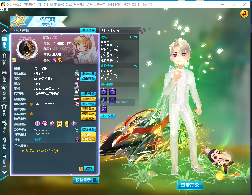 【QQ飞车-电信】1S:全29双四终极众神之神-吕布,4A:全29双三猛禽,高改双三雷诺,火焰侠,赤霄御影,8骑宠:酷喵设计师强4,飞虎王,套装:女装17页男7页,女发饰19页男8页,年费紫钻LV4