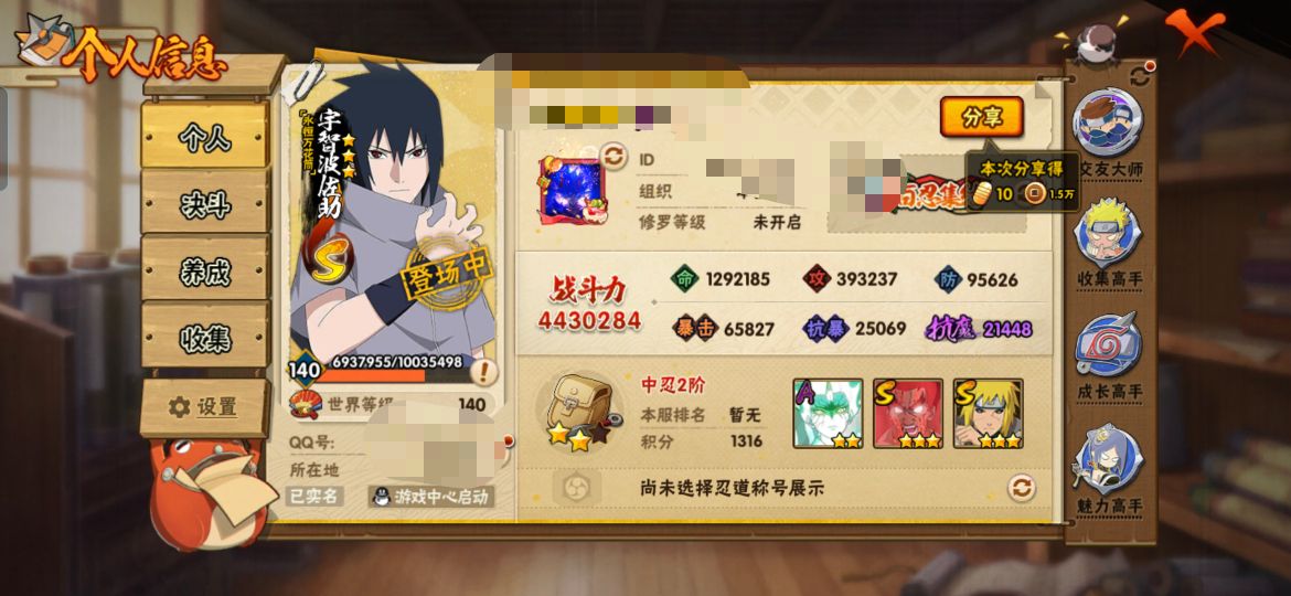 PX_2459660-】安卓Q,13S,30A,V10,16通灵兽,,772W战力,忍战带土,佩恩天道,万花筒佐助,死门凯,水门,忍战樱