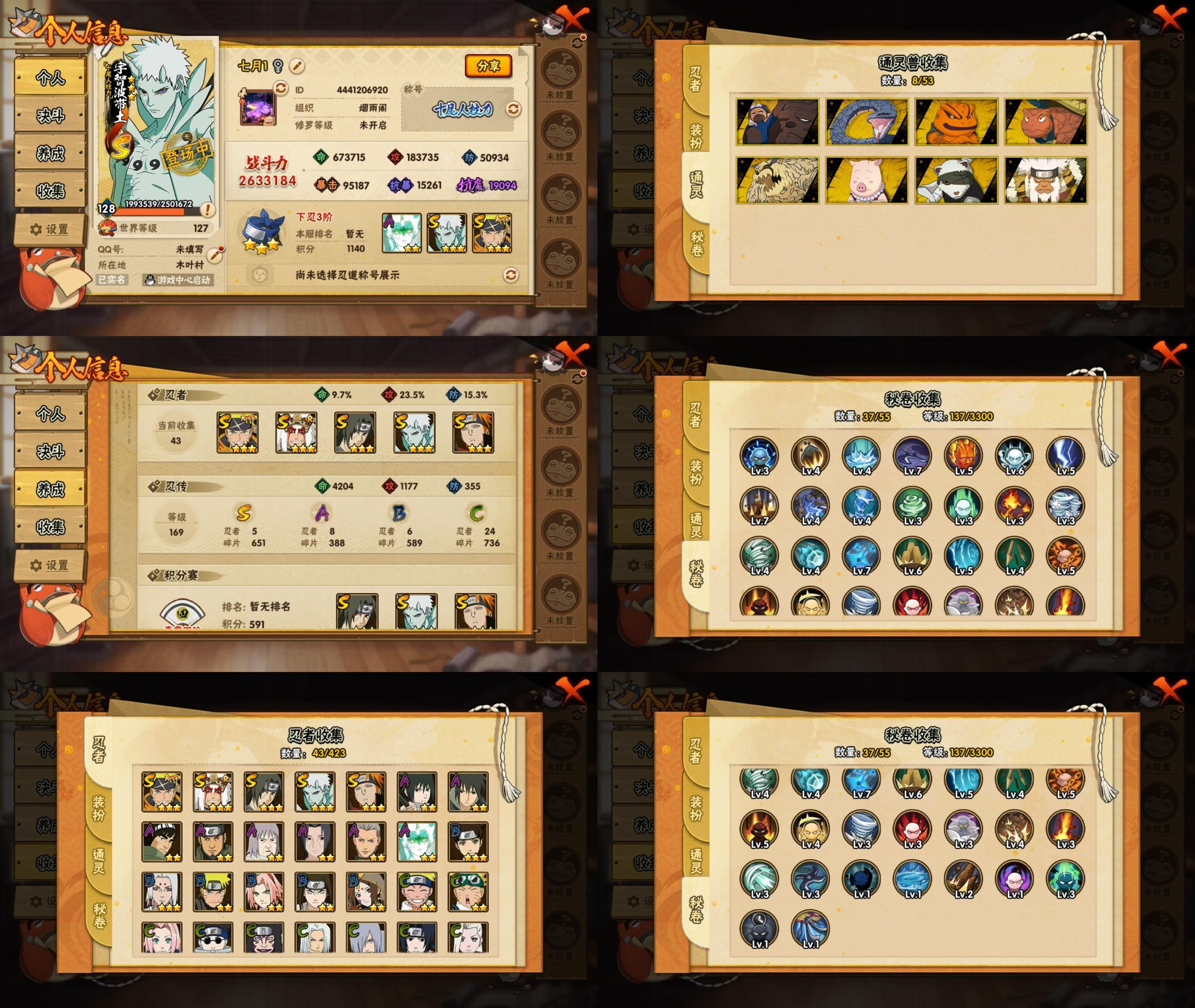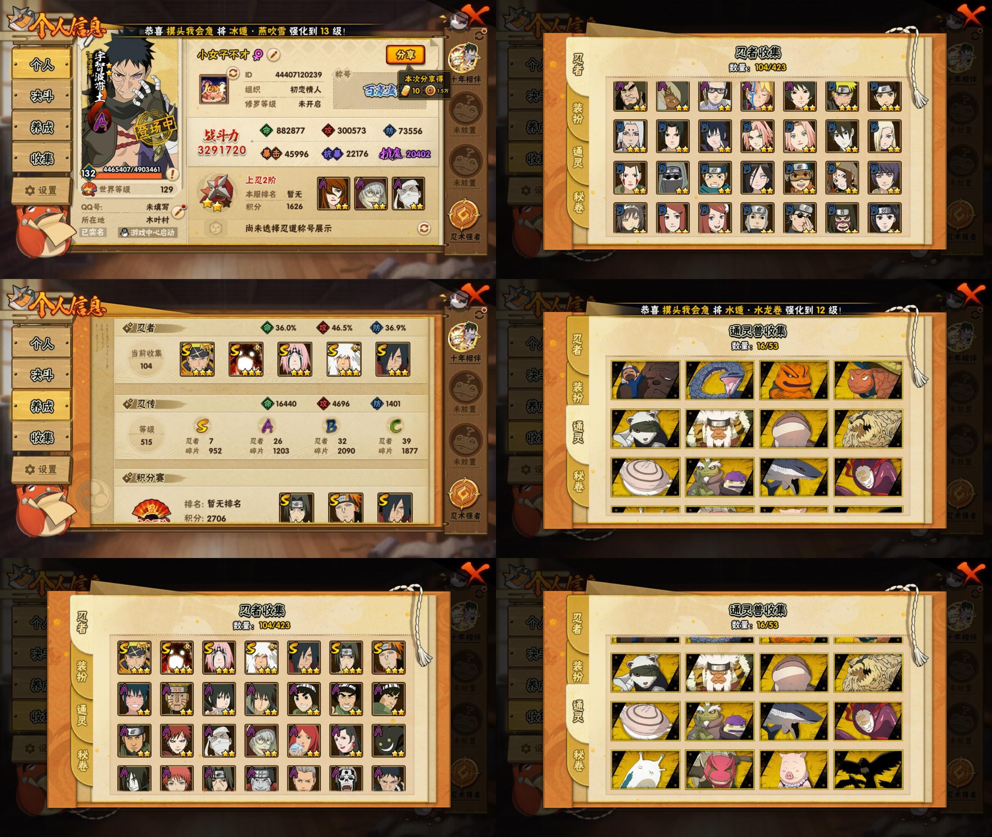 PX_2445414-7S忍/26A忍/战力329W/V9/区服4071 【S忍者】,宇智波佐助「漩涡鸣人」,宇智波斑「秽土转生·解」,春野樱「忍界大战」,自来也「舞之豪杰」,漩涡鸣人「暴怒·第六尾」,宇智波鼬「须佐能乎」,佩恩「天道」, 【A忍者】,机械鸣人「初始形态」,迈特凯「青春爆炸」,长十郎「六代目水影」,不缘,漩涡博人「桃式显现」,李洛克「忍界大战」,黑绝,宇智波泉奈,宇智波带土「漂泊浪客」,神农「羁绊」,达鲁伊「五代目雷影」,不风,神秘面具男「忍者之路」,宇智波佐助「须佐能乎」,桃地再不斩「漂泊武士」,药师兜「半蛇斗篷」,大蛇丸「晓」,飞段「死司凭血」,飞段,我爱罗「疾风传」,蝎,干柿鬼鲛,宇智波鼬,猿飞阿斯玛,迈特凯,