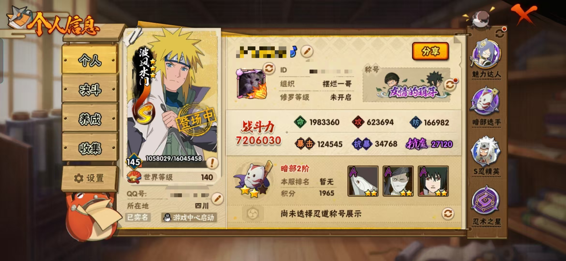 PX_2424397-2,A忍者35,通灵16】【安卓Q-2888区-145级-V11-720万战力】【S级】春野樱「忍界大战」,佩恩「天道」,宇智波带土「忍界大战」,宇智波佐助「永恒万花筒」,波风水门,宇智波斑「秽土转生·解」,宇智波鼬「须佐能乎」,大蛇丸,漩涡鸣人·宇智波佐助,药师兜「仙人模式」,自来也「舞之豪杰」,漩涡鸣人「九喇嘛连结」【A级】秋道丁次「忍界大战」,蝎,波风水门「青年」,宇智波止水「新春