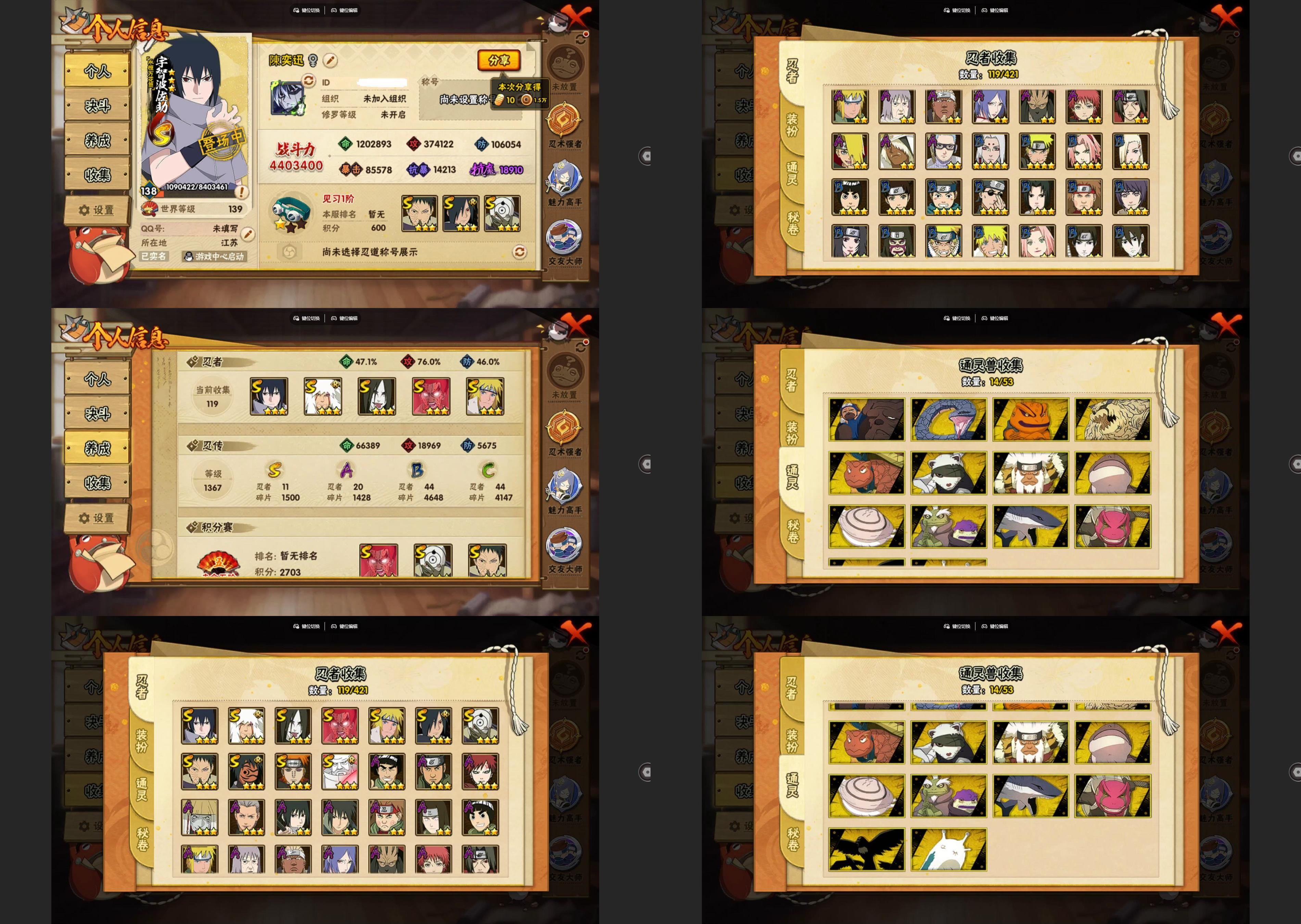 PX_2401988-4S忍/16A忍/战力357W/V3/区服4523 【S忍者】,宇智波佐助「漩涡鸣人」,宇智波斑「秽土转生·解」,自来也「舞之豪杰」,宇智波鼬「须佐能乎」, 【A忍者】,机械鸣人「初始形态」,巳月「仙人模式」,迈特凯「青春爆炸」,土台「忍界大战」,旗木卡卡西「幻之真容」,神农「羁绊」,达鲁伊「五代目雷影」,神秘面具男「忍者之路」,宇智波佐助「须佐能乎」,飞段,迪达拉,蝎,干柿鬼鲛,宇智波鼬,猿飞阿斯玛,迈特凯,