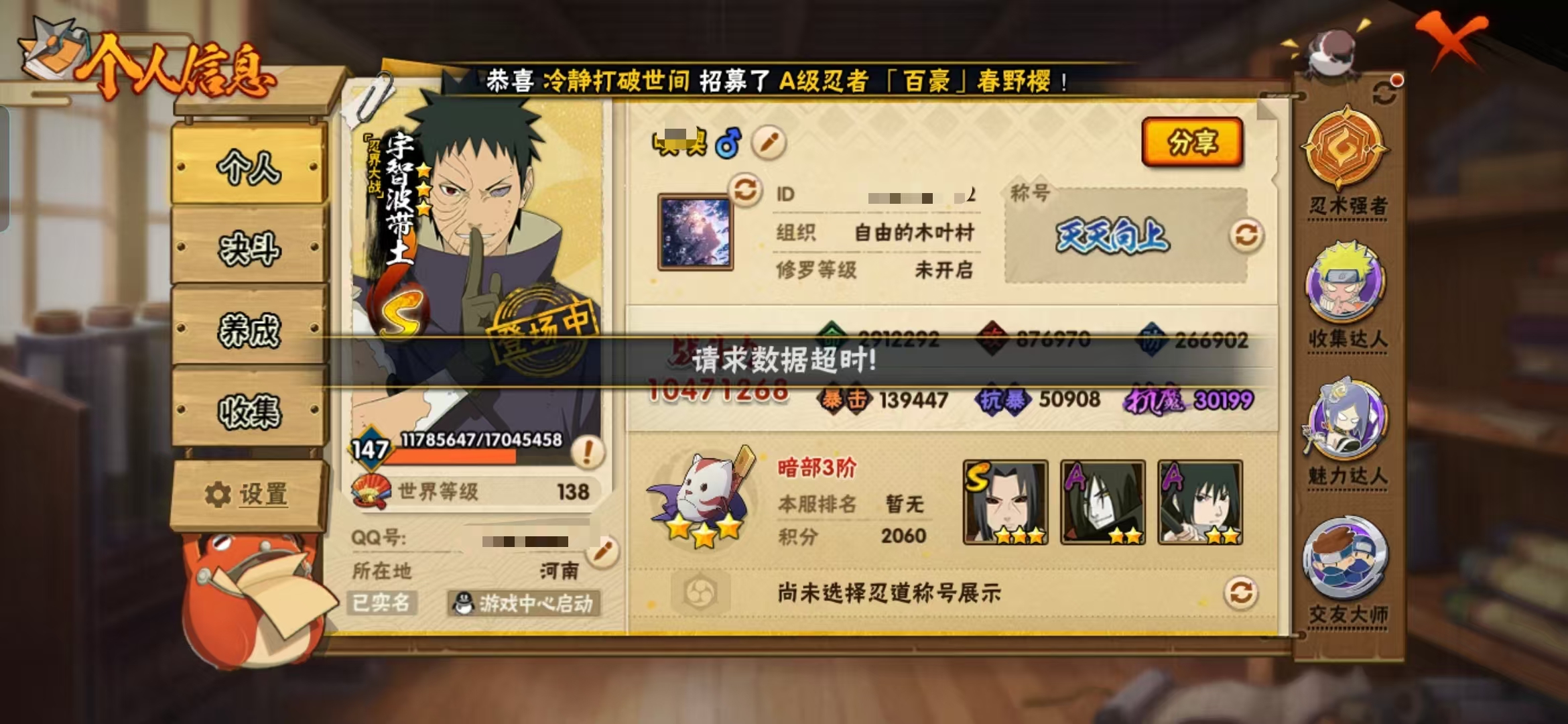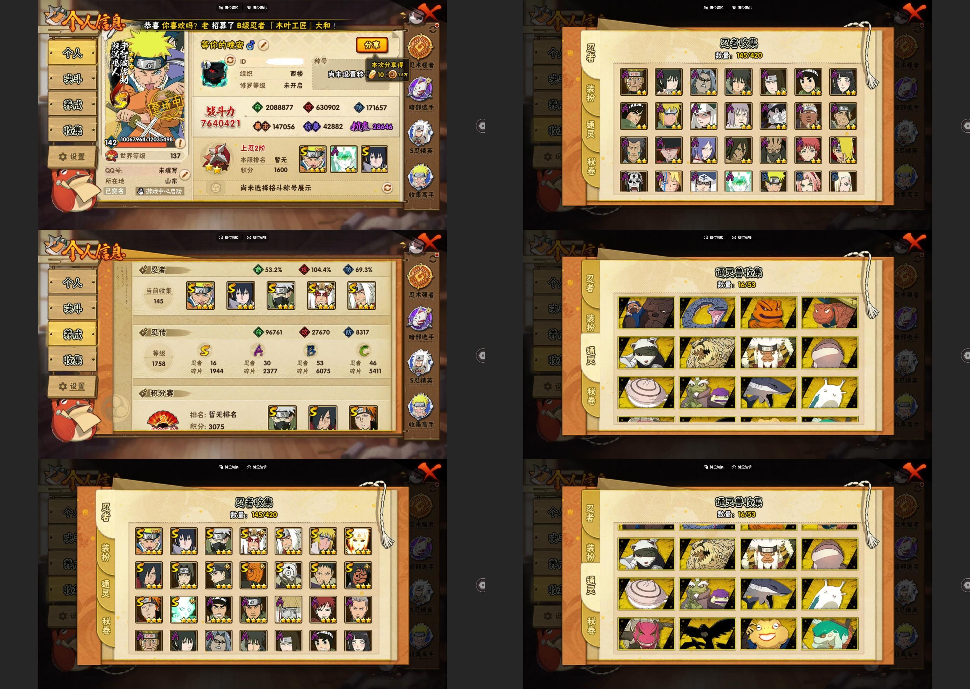 PX_2396924-6,A忍者46,通灵18】【安卓Q-3030区-147级-V10-1047万战力】【S级】自来也「舞之豪杰」,漩涡鸣人「九喇嘛连结」,漩涡鸣人·宇智波佐助,宇智波斑「秽土转生·解」,旗木卡卡西「须佐能乎」,神秘面具男「红夜之刃」,波风水门,波风水门「秽土转生」,宇智波斑「白面具」,宇智波鼬「秽土转生」,宇智波带土「忍界大战」,宇智波佐助「永恒万花筒」,自来也「传说中的三忍」,宇智波鼬「须