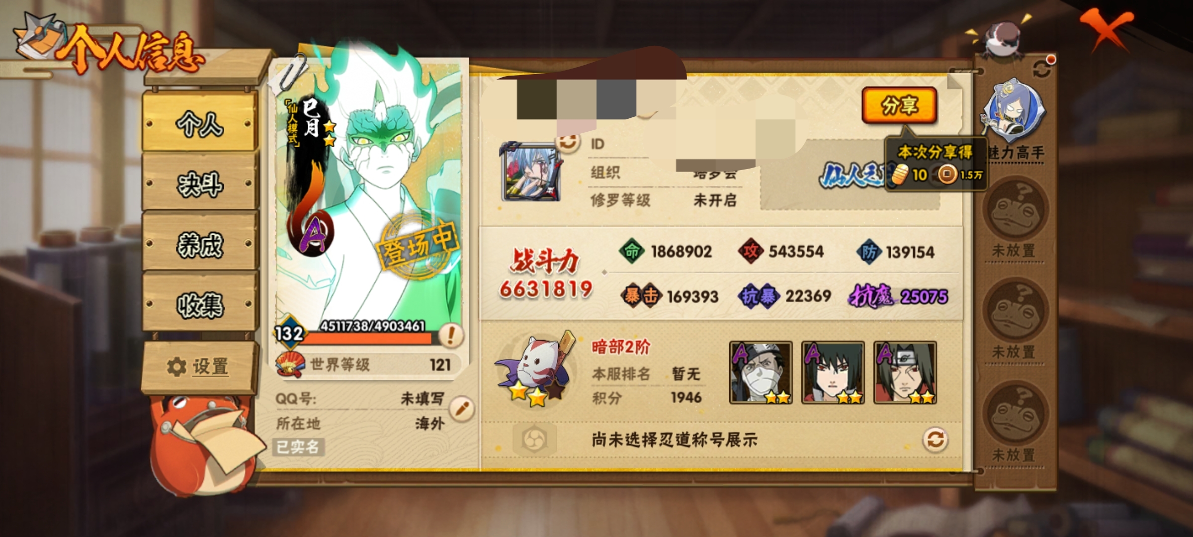 PX_2395301-,A忍者20,通灵16】【安卓Q-4356区-132级-V5-663万战力】【S级】漩涡鸣人·宇智波佐助,宇智波鼬「须佐能乎」,佩恩「天道」,波风水门「九喇嘛连结」,自来也「舞之豪杰」【A级】桃地再不斩,桃地再不斩「秽土转生」,迈特凯,宇智波泉奈,秋道丁次「忍界大战」,巳月「仙人模式」,干柿鬼鲛,猿飞阿斯玛,神农「羁绊」,迪达拉,大野木「侠隐江湖」,宇智波佐助「万花筒