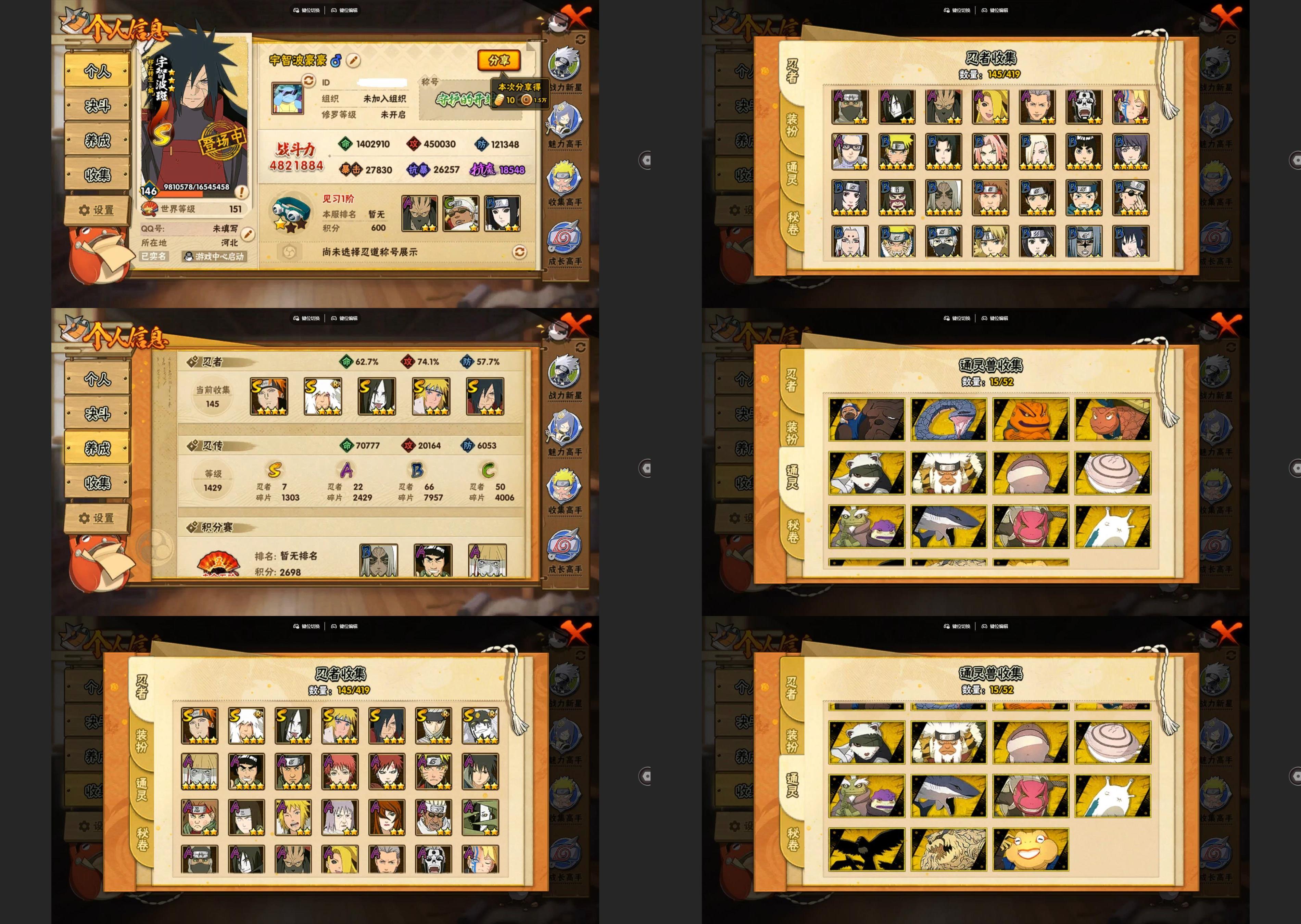 PX_2364615-5S忍/13A忍/战力234W/V4/区服3782 【S忍者】,宇智波斑「秽土转生·解」,自来也「舞之豪杰」,宇智波鼬「须佐能乎」,佩恩「天道」,波风水门, 【A忍者】,日向宁次「忍界大战」,漩涡博人「桃式显现」,宇智波泉奈,长门「青年」,艾「青年」,宇智波佐助「须佐能乎」,漩涡鸣人「九尾查克拉」,秋道丁次「忍界大战」,迪达拉,我爱罗「疾风传」,干柿鬼鲛,宇智波鼬,