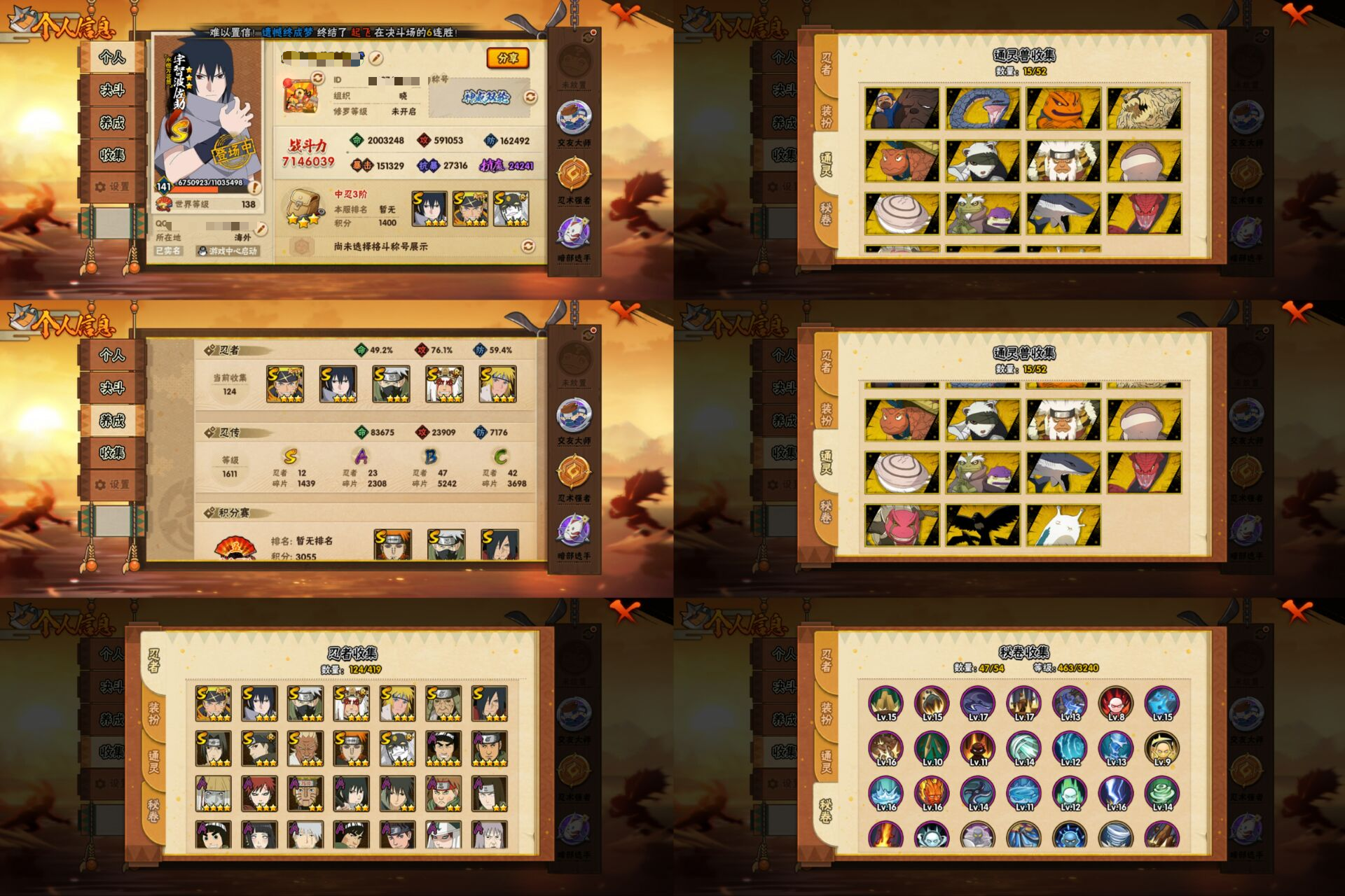 PX_2362455-6S忍/23A忍/战力296W/V9/区服3723 【S忍者】,宇智波佐助「漩涡鸣人」,宇智波带土「忍界大战」,自来也「舞之豪杰」,宇智波鼬「须佐能乎」,佩恩「天道」,波风水门, 【A忍者】,迈特凯「青春爆炸」,漩涡博人「桃式显现」,旗木卡卡西「幻之真容」,蝎「绯流琥」,宇智波泉奈,神农「羁绊」,桃地再不斩「秽土转生」,长门「青年」,佩恩·六道「漂泊浪客」,不风,波风水门「青年」,宇智波佐助「须佐能乎」,迪达拉「秽土转生」,旗木卡卡西「忍界大战」,药师兜「半蛇斗篷」,秋道丁次「忍界大战」,春野樱「百豪」,飞段「死司凭血」,飞段,蝎,干柿鬼鲛,猿飞阿斯玛,迈特凯,