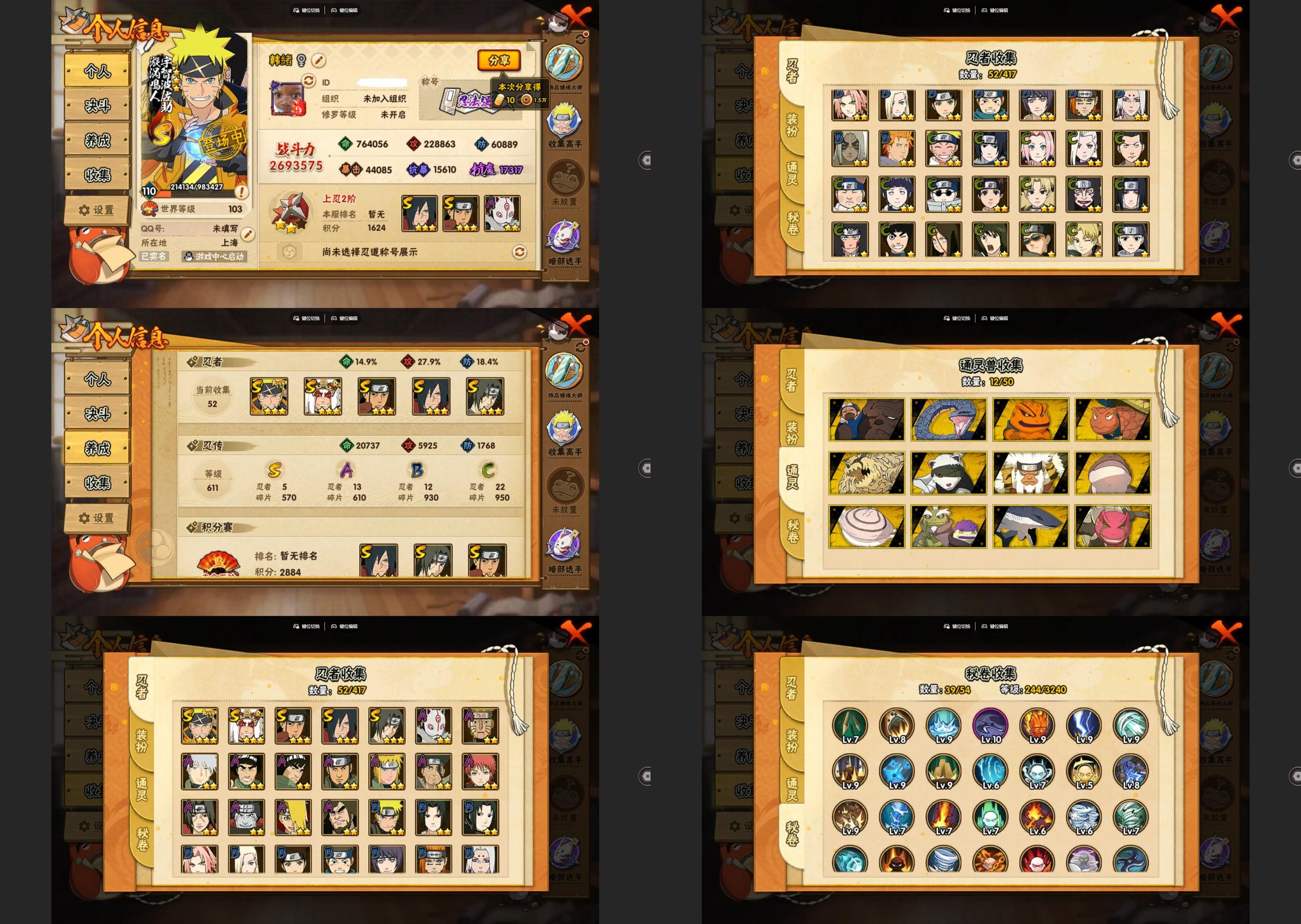 PX_2314681-8S忍/24A忍/战力731W/V7/区服3407 【S忍者】,艾「忍界大战」,宇智波斑「秽土转生·解」,春野樱「忍界大战」,自来也「舞之豪杰」,旗木卡卡西「须佐能乎」,宇智波鼬「须佐能乎」,佩恩「天道」,波风水门, 【A忍者】,长十郎「六代目水影」,漩涡博人「桃式显现」,宇智波鼬「夏日限定」,李洛克「忍界大战」,蝎「绯流琥」,宇智波泉奈,神农「羁绊」,艾「青年」,波风水门「青年」,宇智波佐助「须佐能乎」,漩涡鸣人「九尾查克拉」,千代「近松十人卫」,药师兜「半蛇斗篷」,秋道丁次「忍界大战」,猿飞阿斯玛「秽土转生」,猿飞日斩「火影继承人」,飞段「死司凭血」,飞段,我爱罗「疾风传」,蝎,干柿鬼鲛,宇智波鼬,猿飞阿斯玛,迈特凯,