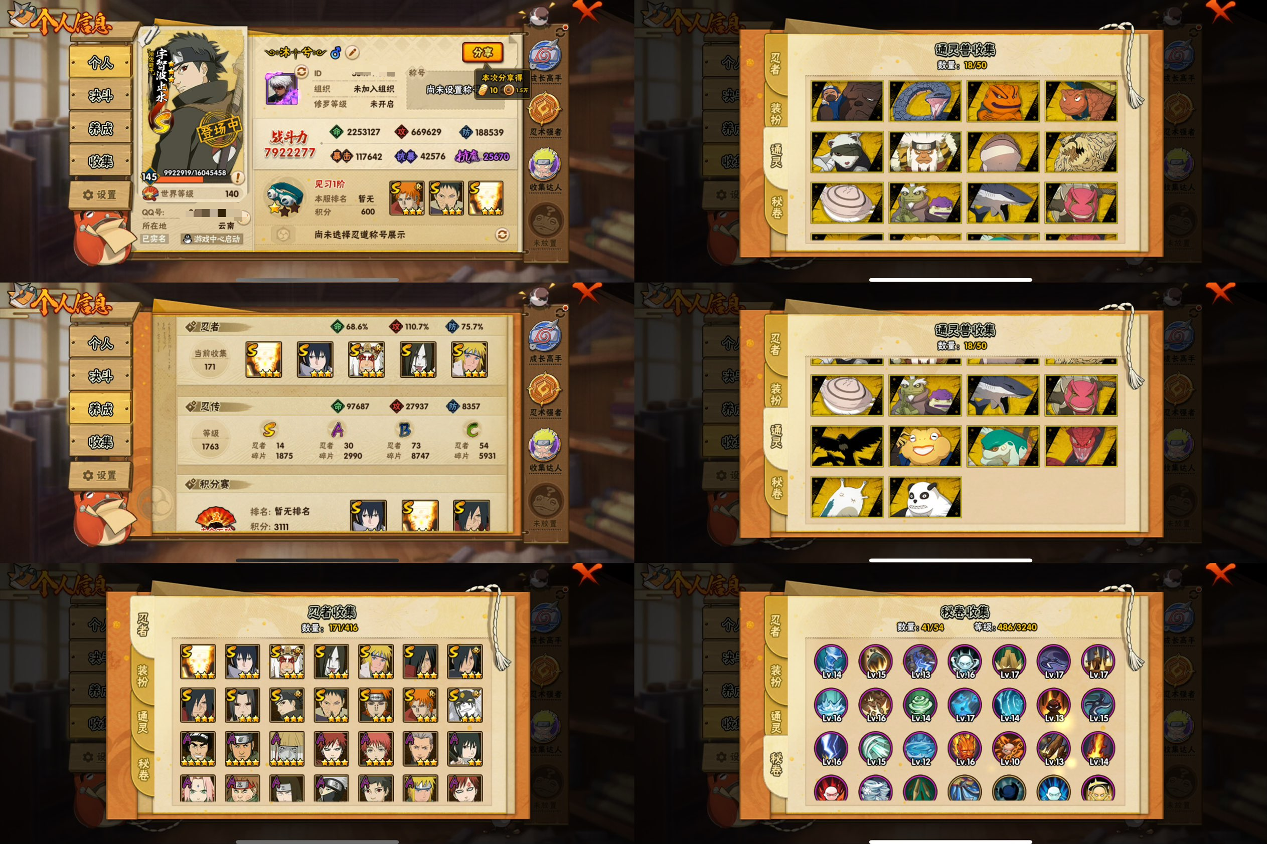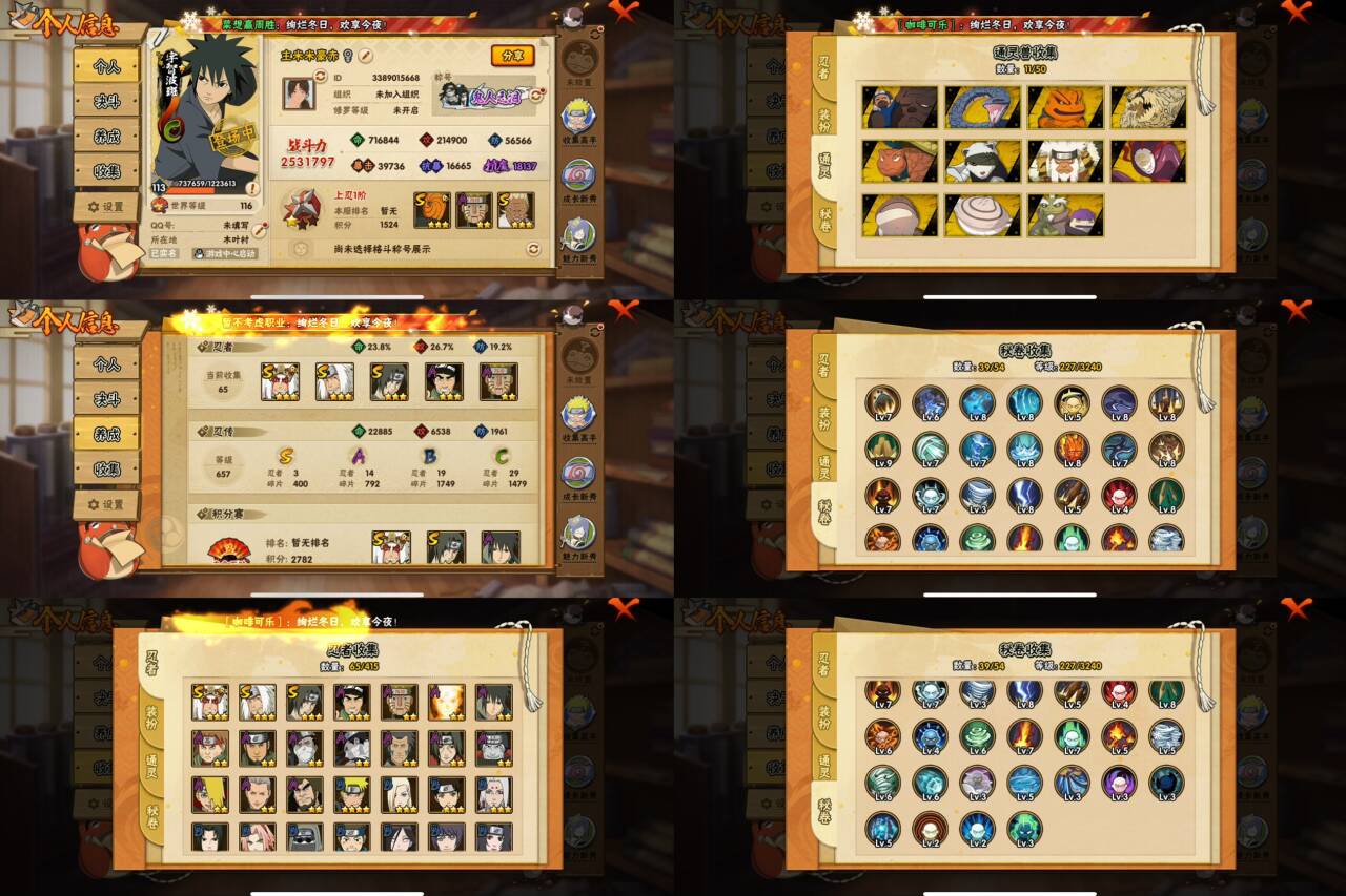 PX_2306090-9S忍/30A忍/战力602W/V7/区服3684 【S忍者】,宇智波止水「须佐能乎」,宇智波斑「秽土转生·解」,宇智波佐助「永恒万花筒」,自来也「舞之豪杰」,旗木卡卡西「须佐能乎」,宇智波鼬「须佐能乎」,佩恩「天道」,波风水门,波风水门「九喇嘛连结」, 【A忍者】,长十郎「六代目水影」,不缘,日向宁次「忍界大战」,漩涡博人「桃式显现」,日向雏田「最终章」,旗木卡卡西「幻之真容」,李洛克「忍界大战」,蝎「绯流琥」,宇智波泉奈,神农「羁绊」,桃地再不斩「秽土转生」,艾「青年」,宇智波佐助「须佐能乎」,秋道丁次「忍界大战」,猿飞阿斯玛「秽土转生」,飞段「死司凭血」,飞段,迪达拉,我爱罗「疾风传」,蝎,干柿鬼鲛,宇智波鼬,猿飞阿斯玛,迈特凯,卑留呼「火之意志继承者」,