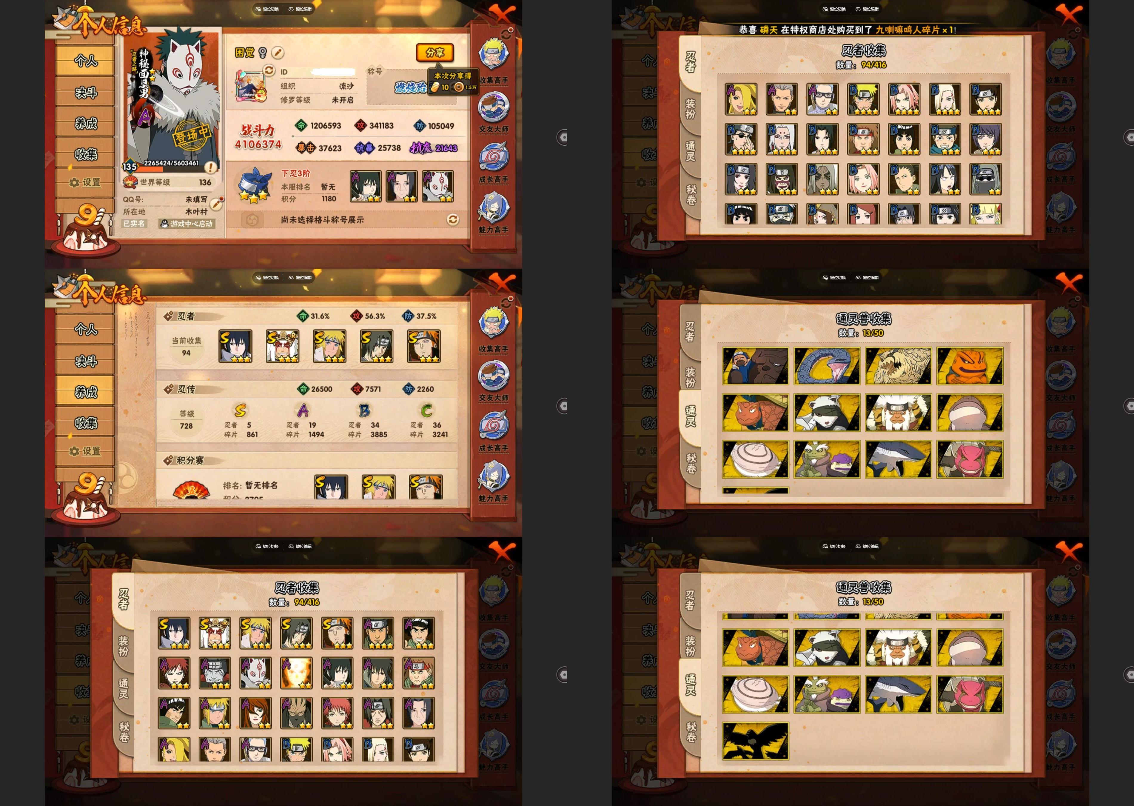 PX_2300457-14S忍/41A忍/战力638W/V10/区服1345 【S忍者】,艾「忍界大战」,宇智波斑「秽土转生·解」,宇智波佐助「永恒万花筒」,千手柱间「秽土转生」,自来也「舞之豪杰」,旗木卡卡西「须佐能乎」,宇智波鼬「秽土转生」,千手扉间「秽土转生」,纲手「百豪」,长门「秽土转生」,宇智波鼬「须佐能乎」,佩恩「天道」,波风水门,大蛇丸, 【A忍者】,纲手「侠隐江湖」,长十郎「六代目水影」,日向宁次「忍界大战」,漩涡博人「桃式显现」,日向雏田「最终章」,旗木卡卡西「幻之真容」,小南「漂泊浪客」,李洛克「忍界大战」,蝎「绯流琥」,宇智波泉奈,艾「青年」,不风,波风水门「青年」,奇拉比「忍界大战」,宇智波佐助「须佐能乎」,迪达拉「秽土转生」,小南「新春限定」,漩涡鸣人「九尾查克拉」,千代「近松十人卫」,药师兜「半蛇斗篷」,宇智波鼬「新春限定」,我爱罗「忍界大战」,小南「夏日泳装」,秋道丁次「忍界大战」,猿飞阿斯玛「秽土转生」,春野樱「百豪」,照美冥「五代目水影」,宇智波佐助「万花筒写轮眼」,漩涡鸣人「仙人模式」,旗木卡卡西「万花筒写轮眼」,飞段「死司凭血」,飞段,迪达拉,我爱罗「疾风传」,蝎,干柿鬼鲛,猿飞阿斯玛,迈特凯,