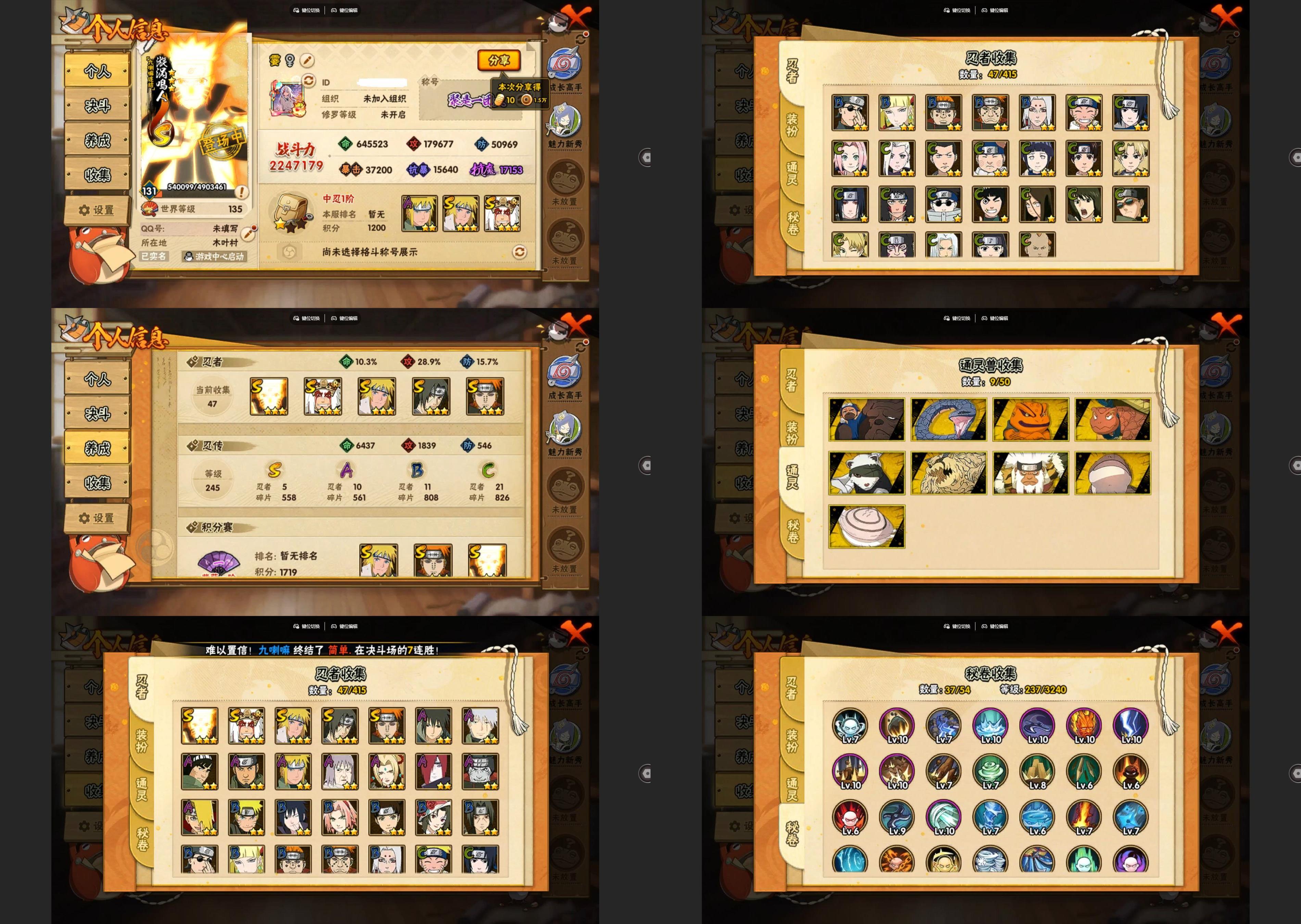 PX_2291075-7S忍/23A忍/战力547W/V5/区服2299 【S忍者】,漩涡鸣人「九喇嘛连结」,自来也「舞之豪杰」,宇智波斑「白面具」,宇智波鼬「须佐能乎」,佩恩「天道」,波风水门,大蛇丸, 【A忍者】,长十郎「六代目水影」,漩涡博人「桃式显现」,日向雏田「最终章」,旗木卡卡西「幻之真容」,宇智波泉奈,长门「青年」,艾「青年」,神秘面具男「忍者之路」,波风水门「青年」,奇拉比「忍界大战」,宇智波佐助「须佐能乎」,千代「近松十人卫」,药师兜「半蛇斗篷」,秋道丁次「忍界大战」,照美冥「五代目水影」,飞段「死司凭血」,飞段,我爱罗「疾风传」,蝎,干柿鬼鲛,猿飞阿斯玛,迈特凯,