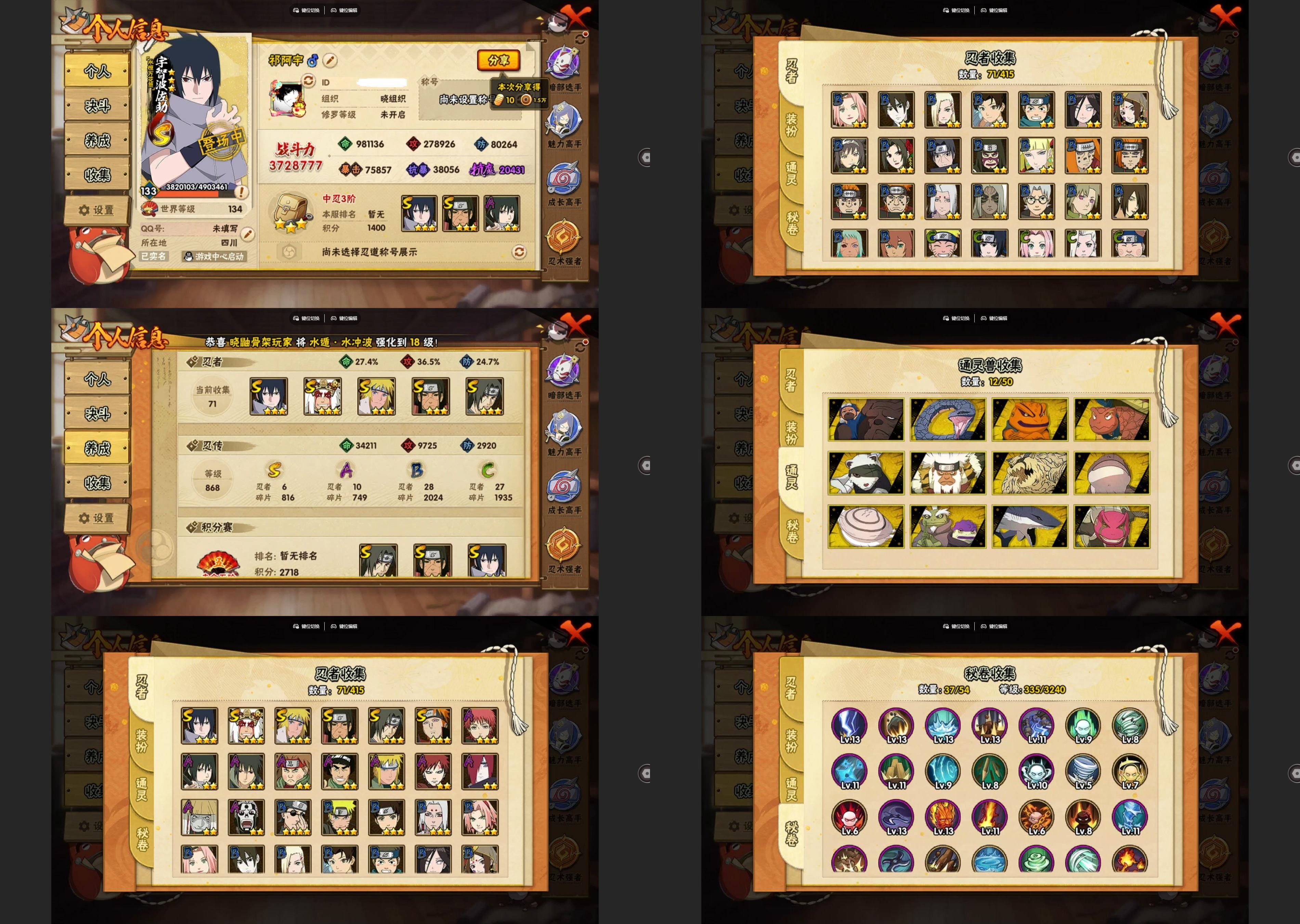 PX_2283503-6S忍/10A忍/战力372W/V1/区服3410 【S忍者】,宇智波佐助「永恒万花筒」,千手柱间「秽土转生」,自来也「舞之豪杰」,宇智波鼬「须佐能乎」,佩恩「天道」,波风水门, 【A忍者】,宇智波泉奈,长门「青年」,波风水门「青年」,宇智波佐助「须佐能乎」,秋道丁次「忍界大战」,飞段「死司凭血」,我爱罗「疾风传」,蝎,干柿鬼鲛,迈特凯,