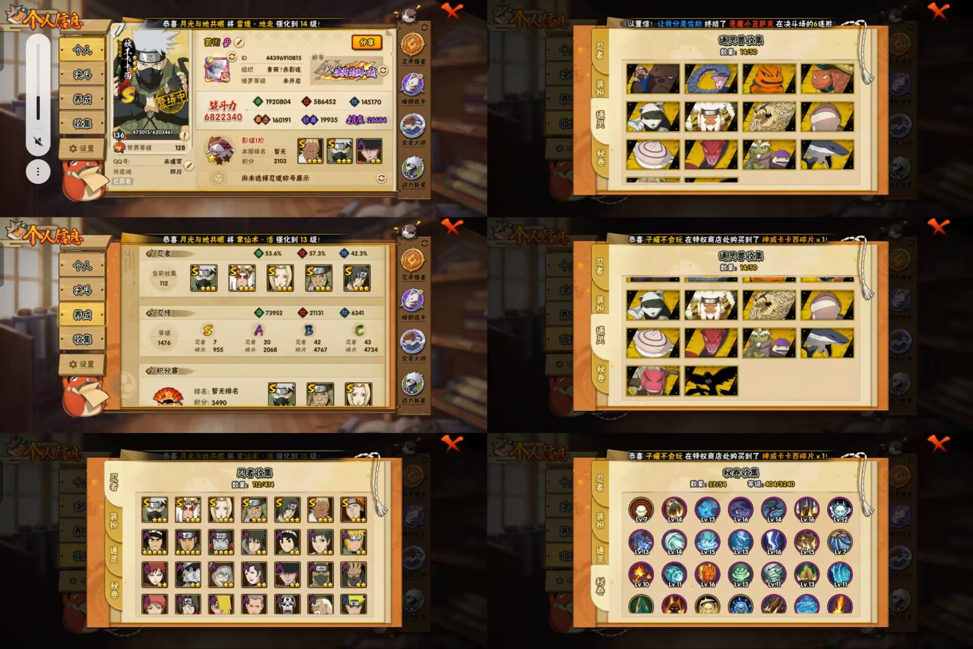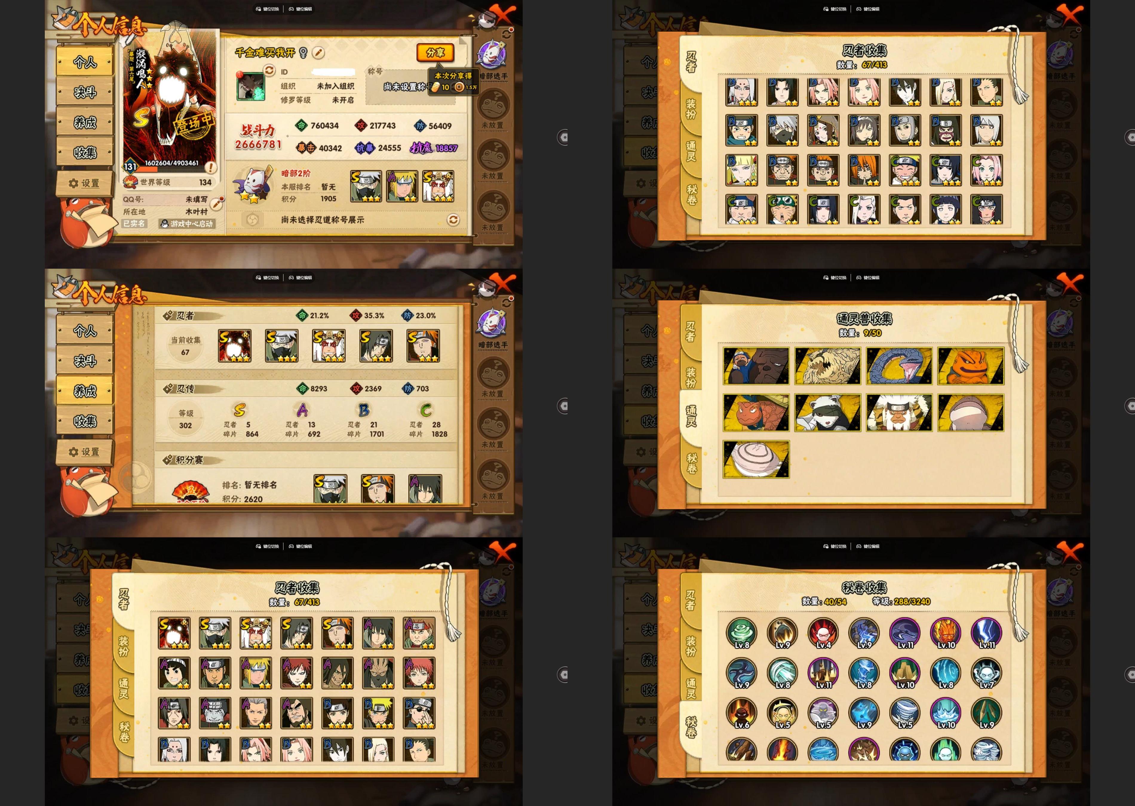 PX_2258239-6S忍/19A忍/战力478W/V1/区服3185 【S忍者】,艾「忍界大战」,自来也「舞之豪杰」,旗木卡卡西「须佐能乎」,宇智波鼬「须佐能乎」,佩恩「天道」,波风水门, 【A忍者】,漩涡博人「桃式显现」,旗木卡卡西「幻之真容」,李洛克「忍界大战」,蝎「绯流琥」,宇智波泉奈,长门「青年」,波风水门「青年」,千代「近松十人卫」,秋道丁次「忍界大战」,猿飞阿斯玛「秽土转生」,春野樱「百豪」,旗木卡卡西「万花筒写轮眼」,飞段「死司凭血」,飞段,我爱罗「疾风传」,蝎,干柿鬼鲛,猿飞阿斯玛,迈特凯,