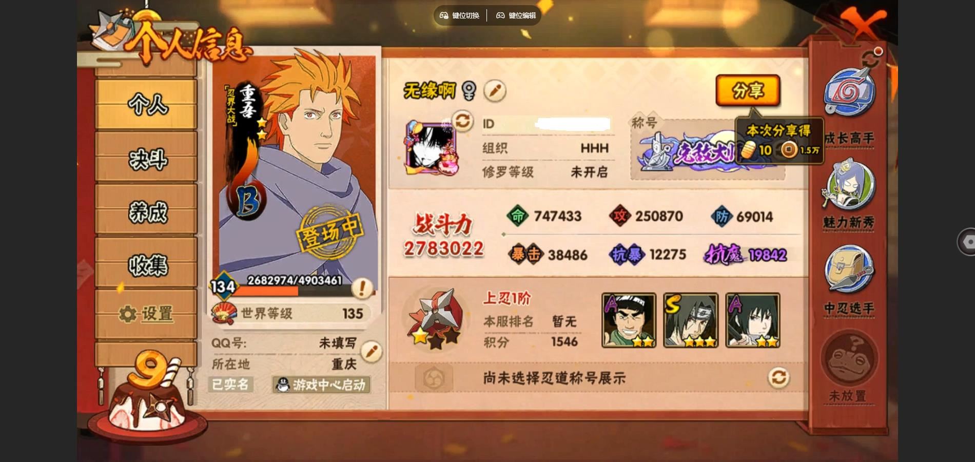PX_2253174-IOS/35S忍/46A忍/战力1198W/V11/区服397 【S忍者】,宇智波止水「须佐能乎」,艾「忍界大战」,宇智波斑「秽土转生·解」,千手柱间「木叶创立」,宇智波佐助「永恒万花筒」,神秘面具男「红夜之刃」,春野樱「忍界大战」,漩涡鸣人「九喇嘛连结」,迈特凯「死门」,宇智波斑「木叶创立」,宇智波带土「忍界大战」,千手柱间「秽土转生」,罗砂「四代目风影」,自来也「舞之豪杰」,旗木卡卡西「须佐能乎」,自来也「传说中的三忍」,宇智波鼬「秽土转生」,佩恩·天道「超」,药师兜「仙人模式」,宇智波斑「秽土转生」,艾「三代目雷影」,宇智波斑「白面具」,半藏「秽土转生」,千手扉间「秽土转生」,纲手「百豪」,长门「秽土转生」,宇智波斑,宇智波鼬「须佐能乎」,佩恩「天道」,猿飞日斩,波风水门,大蛇丸,自来也,纲手,波风水门「九喇嘛连结」, 【A忍者】,长十郎「六代目水影」,不缘,日向宁次「忍界大战」,漩涡博人「桃式显现」,日向雏田「最终章」,小南「漂泊浪客」,李洛克「忍界大战」,蝎「绯流琥」,宇智波泉奈,宇智波带土「漂泊浪客」,桃地再不斩「秽土转生」,角都「秽土转生」,宇智波止水,长门「青年」,艾「青年」,达鲁伊「五代目雷影」,波风水门「青年」,千手扉间「漂泊武士」,奇拉比「忍界大战」,宇智波佐助「须佐能乎」,迪达拉「秽土转生」,漩涡鸣人「九尾查克拉」,千代「近松十人卫」,药师兜「半蛇斗篷」,我爱罗「忍界大战」,秋道丁次「忍界大战」,大蛇丸「晓」,照美冥「五代目水影」,猿飞日斩「火影继承人」,宇智波佐助「万花筒写轮眼」,志村团藏,漩涡鸣人「仙人模式」,旗木卡卡西「万花筒写轮眼」,飞段「死司凭血」,小南,飞段,迪达拉,我爱罗「疾风传」,蝎,干柿鬼鲛,宇智波鼬,猿飞阿斯玛,迈特凯,