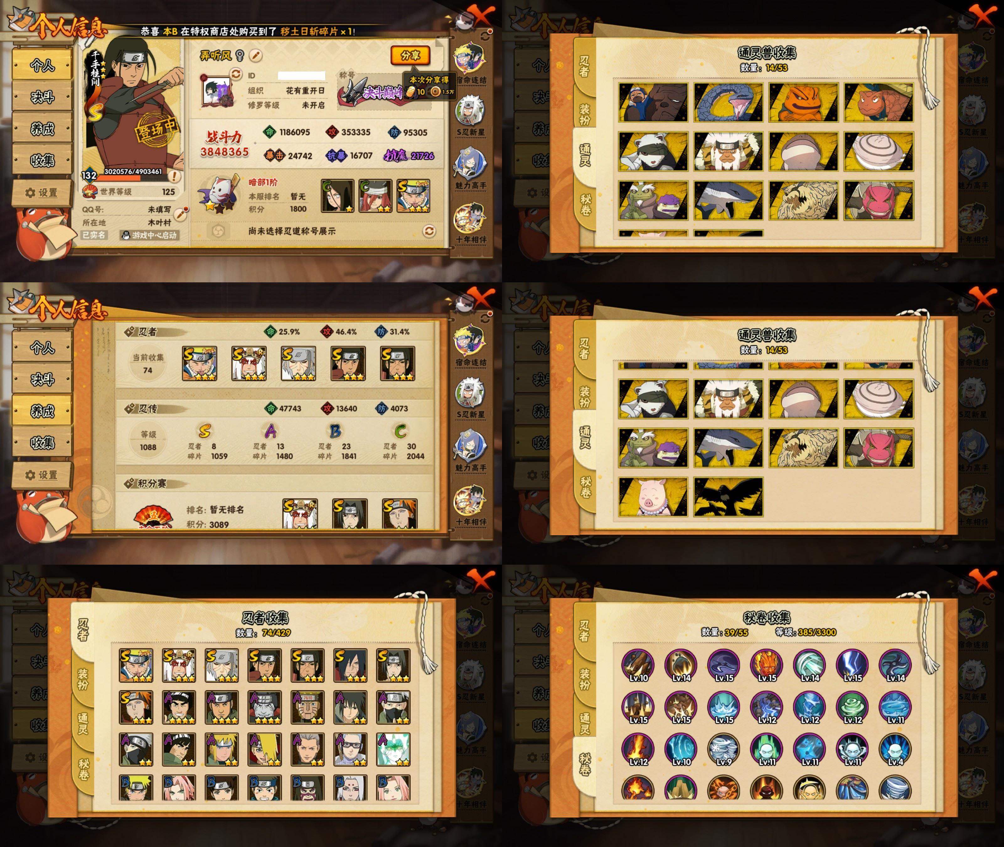 PX_2533561-17S忍/41A忍/战力810W/V11/区服1932 【S忍者】,宇智波佐助「漩涡鸣人」,宇智波斑「秽土转生·解」,神秘面具男「红夜之刃」,春野樱「忍界大战」,迈特凯「死门」,宇智波带土「忍界大战」,千手柱间「秽土转生」,自来也「舞之豪杰」,旗木卡卡西「须佐能乎」,漩涡鸣人「暴怒·第六尾」,宇智波鼬「秽土转生」,药师兜「仙人模式」,长门「秽土转生」,宇智波鼬「须佐能乎」,佩恩「天道」,波风水门,大蛇丸, 【A忍者】,宇智波佐助「侠隐江湖」,宇智波带土「漂泊浪客」,小南「神驹佑将」,机械鸣人「初始形态」,大野木「侠隐江湖」,巳月「仙人模式」,迈特凯「青春爆炸」,我爱罗「新春限定」,日向宁次「忍界大战」,宇智波鼬「夏日限定」,日向雏田「最终章」,李洛克「忍界大战」,大蛇丸「新春限定」,宇智波泉奈,神农「羁绊」,艾「青年」,波风水门「青年」,奇拉比「忍界大战」,黑土「四代目土影」,飞段「恶灵之影」,宇智波佐助「须佐能乎」,迪达拉「秽土转生」,宇智波带土「暴怒」,漩涡鸣人「九尾查克拉」,千代「近松十人卫」,药师兜「半蛇斗篷」,小南「夏日泳装」,秋道丁次「忍界大战」,照美冥「五代目水影」,猿飞日斩「火影继承人」,宇智波佐助「万花筒写轮眼」,漩涡鸣人「仙人模式」,旗木卡卡西「万花筒写轮眼」,飞段「死司凭血」,飞段,我爱罗「疾风传」,蝎,干柿鬼鲛,宇智波鼬,猿飞阿斯玛,迈特凯,