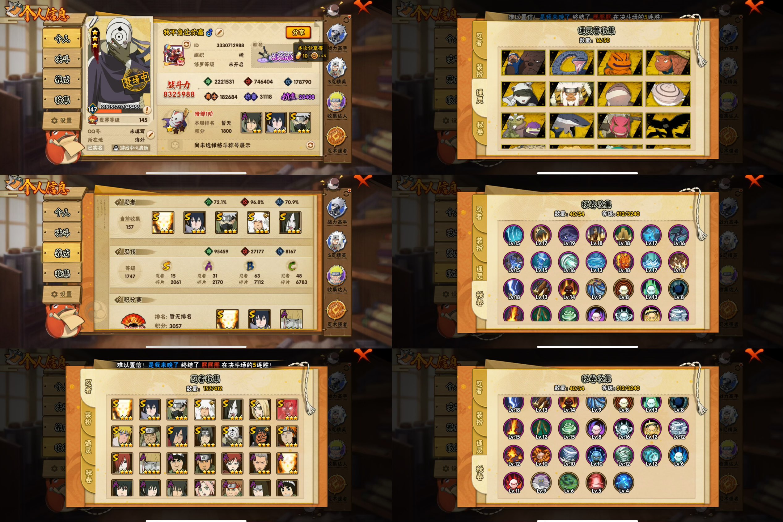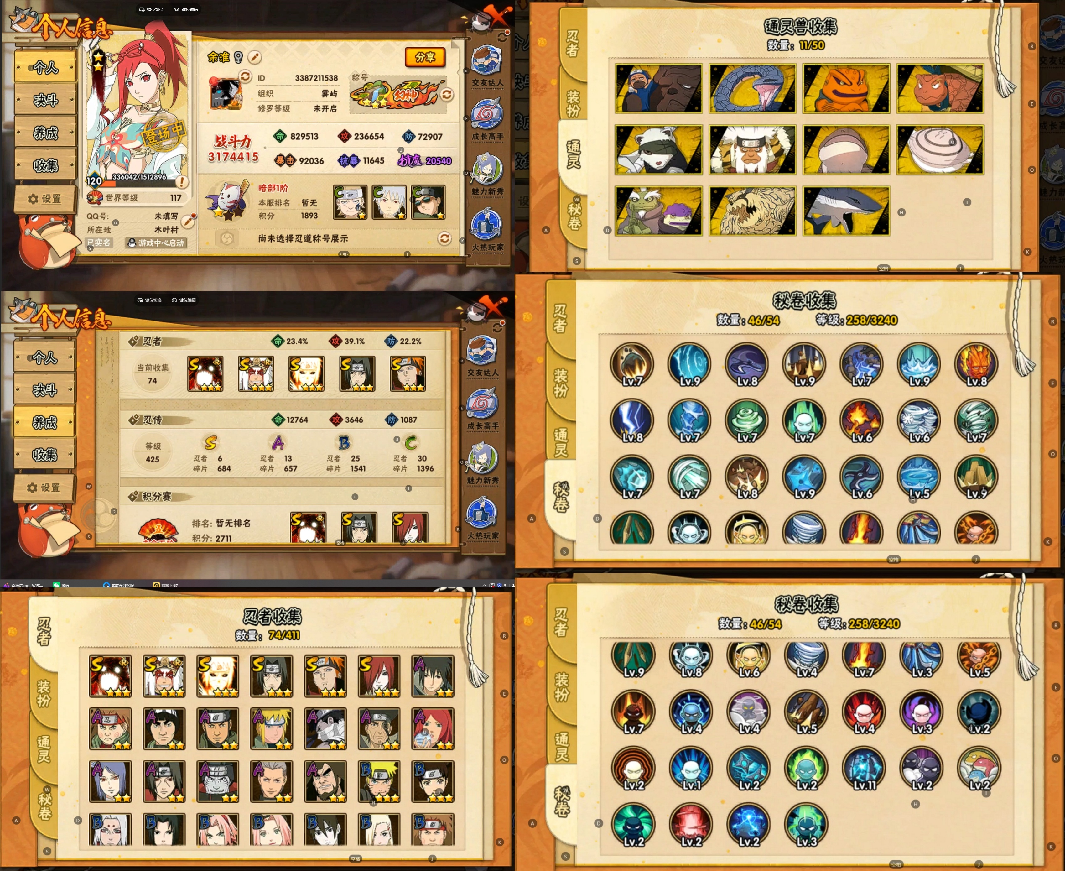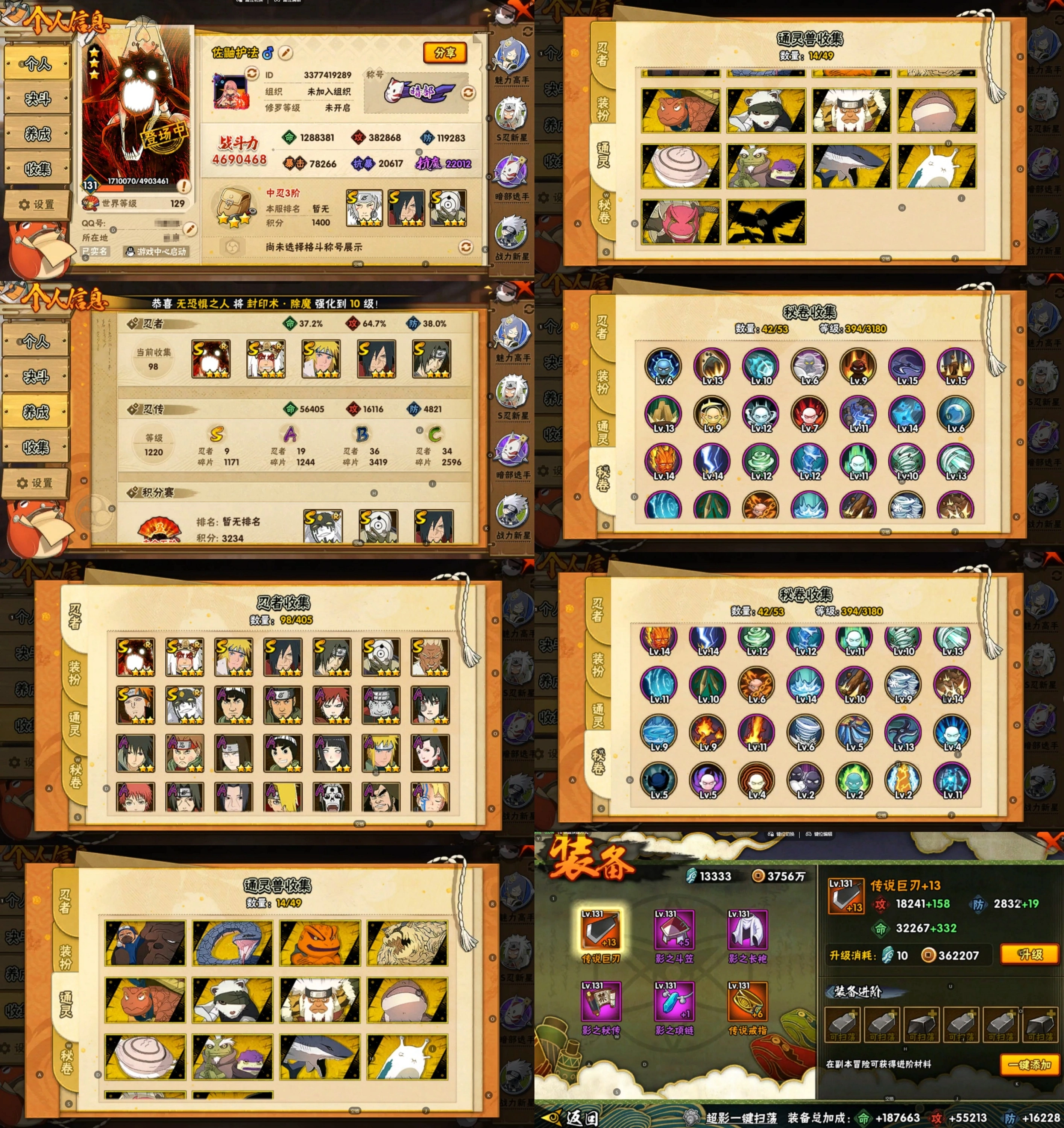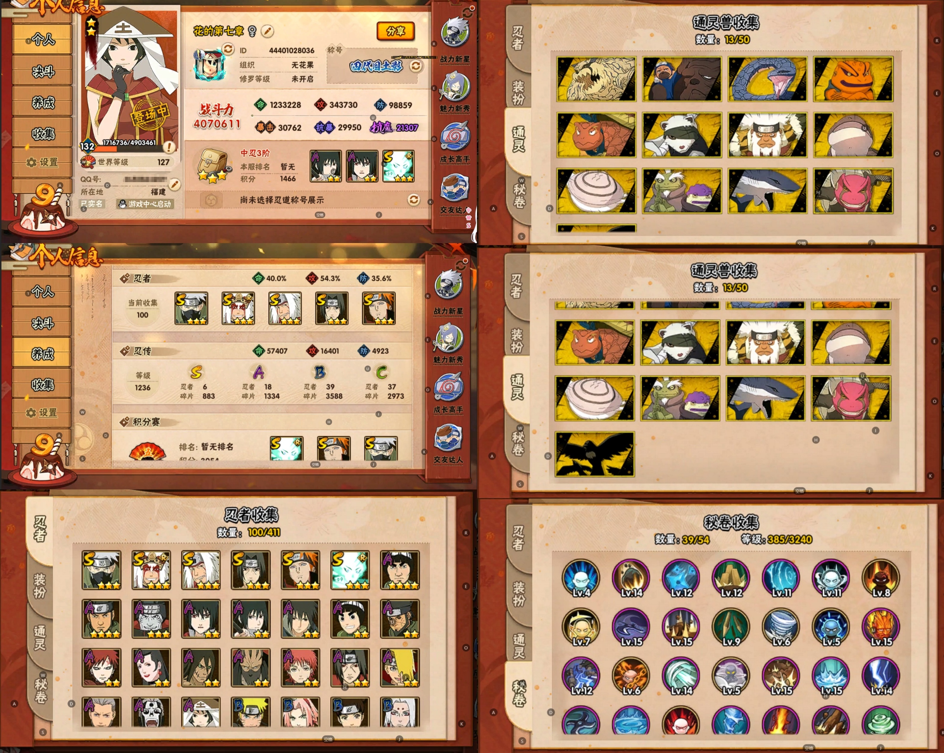 PX_2234509-6S忍/18A忍/战力407W/V7/区服4010 【S忍者】,自来也「舞之豪杰」,旗木卡卡西「须佐能乎」,大筒木舍人「最终章」,自来也「传说中的三忍」,宇智波鼬「须佐能乎」,佩恩「天道」, 【A忍者】,不缘,李洛克「忍界大战」,蝎「绯流琥」,宇智波泉奈,角都「秽土转生」,宇智波佐助「须佐能乎」,猿飞阿斯玛「秽土转生」,宇智波佐助「万花筒写轮眼」,飞段「死司凭血」,飞段,迪达拉,我爱罗「疾风传」,蝎,干柿鬼鲛,宇智波鼬,猿飞阿斯玛,迈特凯,