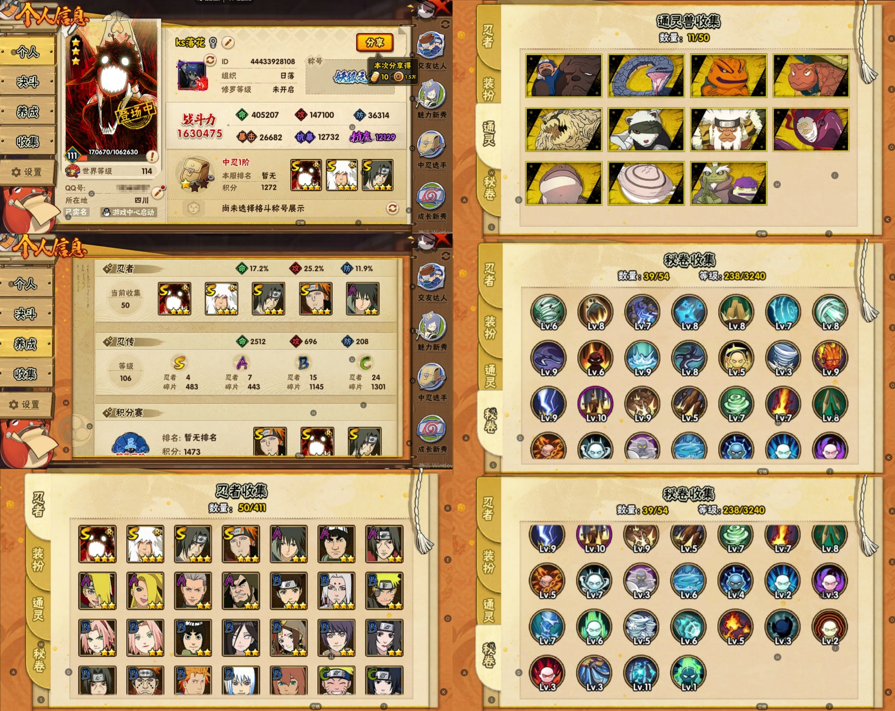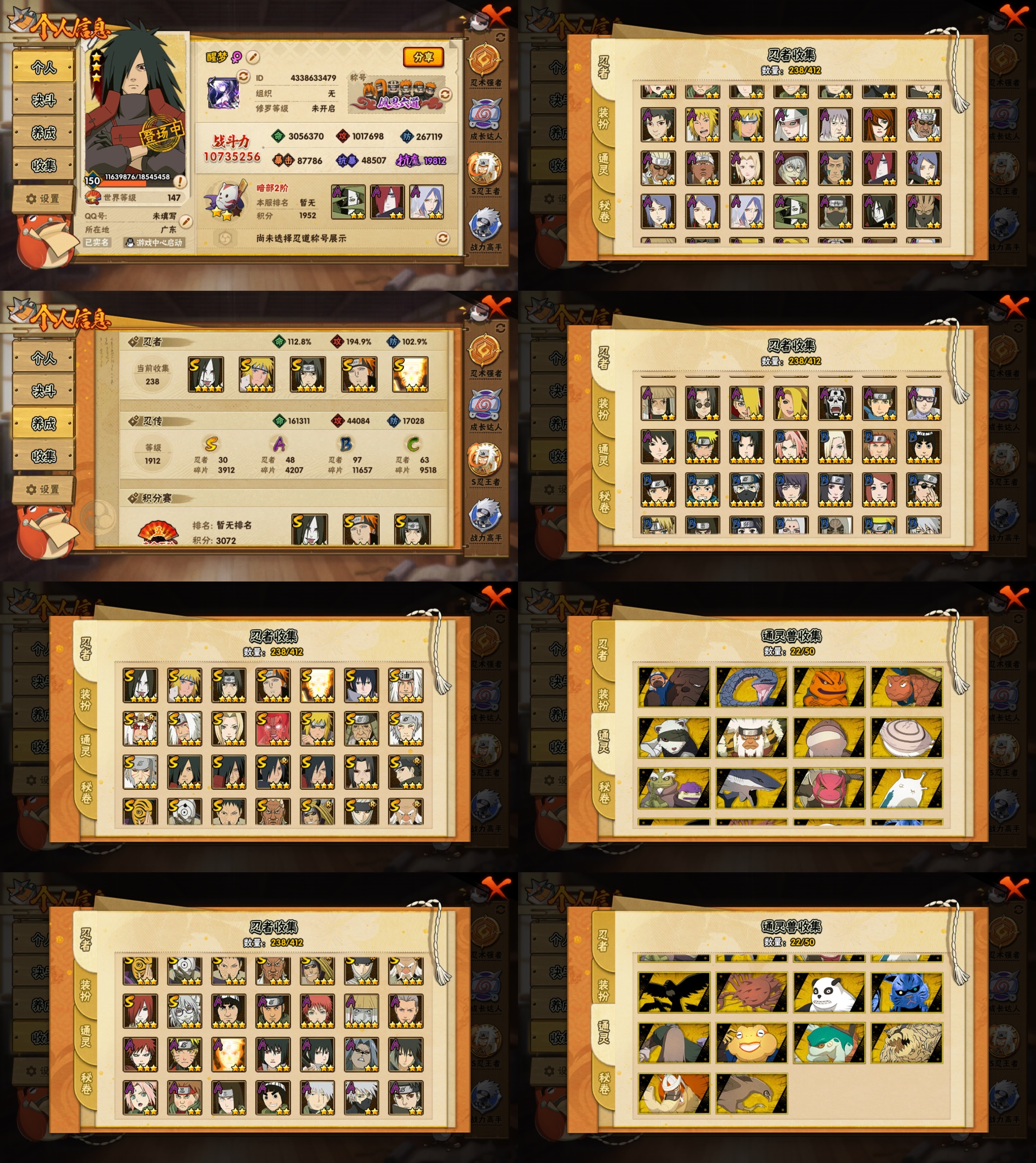 PX_2234111-8S忍/28A忍/战力917W/V7/区服631 【S忍者】,宇智波斑「秽土转生·解」,宇智波佐助「永恒万花筒」,自来也「舞之豪杰」,佩恩·天道「超」,猿飞日斩「秽土转生」,宇智波鼬「须佐能乎」,佩恩「天道」,波风水门, 【A忍者】,土台「忍界大战」,长十郎「六代目水影」,不缘,日向宁次「忍界大战」,漩涡博人「桃式显现」,李洛克「忍界大战」,蝎「绯流琥」,宇智波泉奈,神农「羁绊」,桃地再不斩「秽土转生」,长门「青年」,波风水门「青年」,宇智波佐助「须佐能乎」,千代「近松十人卫」,药师兜「半蛇斗篷」,我爱罗「忍界大战」,宇智波佐助「万花筒写轮眼」,漩涡鸣人「仙人模式」,飞段「死司凭血」,飞段,我爱罗「疾风传」,蝎,干柿鬼鲛,宇智波鼬,猿飞阿斯玛,迈特凯,卑留呼「火之意志继承者」,