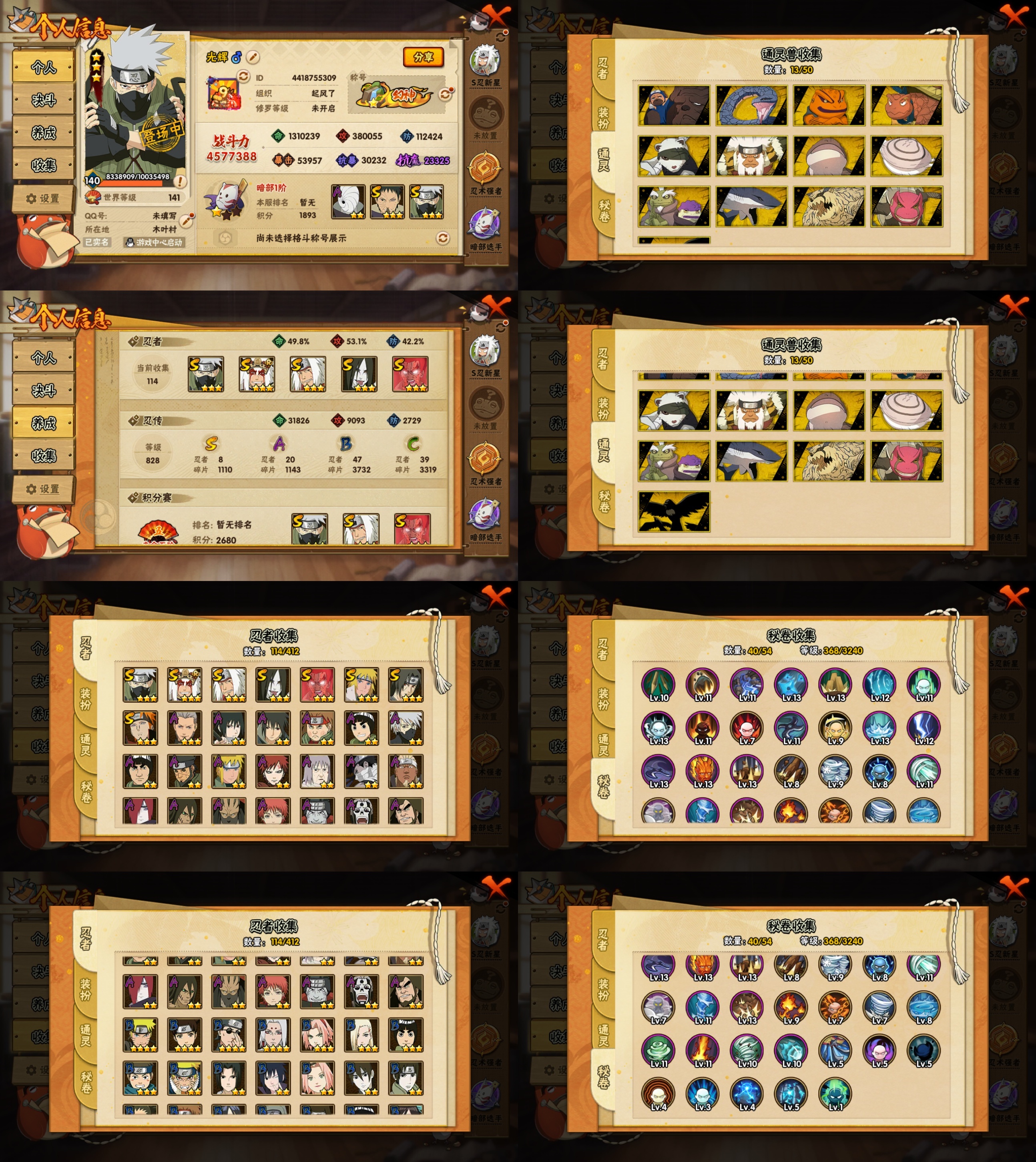 PX_2226891-10S忍/20A忍/战力699W/V9/区服2974 【S忍者】,宇智波止水「须佐能乎」,艾「忍界大战」,大筒木桃式,宇智波斑「秽土转生·解」,自来也「舞之豪杰」,旗木卡卡西「须佐能乎」,猿飞日斩「秽土转生」,宇智波鼬「须佐能乎」,佩恩「天道」,波风水门, 【A忍者】,日向宁次「忍界大战」,漩涡博人「桃式显现」,日向雏田「最终章」,旗木卡卡西「幻之真容」,李洛克「忍界大战」,宇智波泉奈,宇智波带土「漂泊浪客」,宇智波佐助「须佐能乎」,千代「近松十人卫」,我爱罗「忍界大战」,秋道丁次「忍界大战」,猿飞日斩「火影继承人」,飞段「死司凭血」,迪达拉,我爱罗「疾风传」,蝎,干柿鬼鲛,宇智波鼬,猿飞阿斯玛,迈特凯,