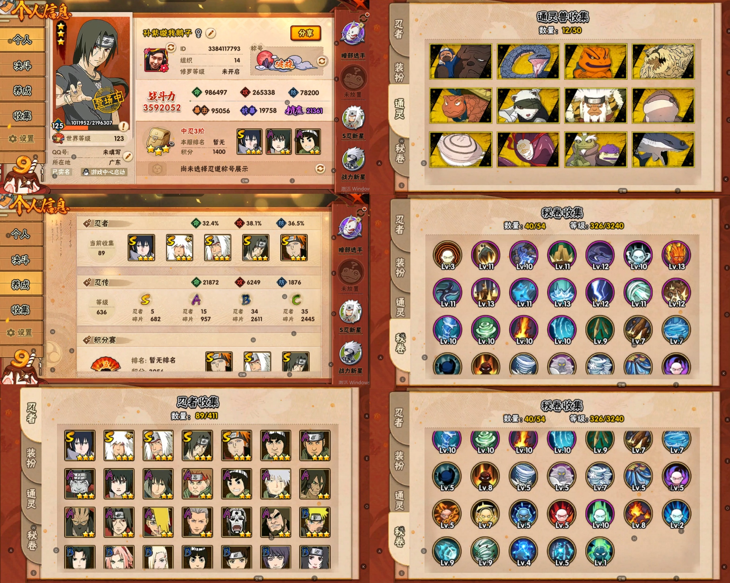 PX_2223899-12S忍/26A忍/战力1109W/V11/区服3145 【S忍者】,宇智波佐助「永恒万花筒」,神秘面具男「红夜之刃」,春野樱「忍界大战」,大筒木金式,大野木「忍界大战」,自来也「舞之豪杰」,艾「四代目雷影」,宇智波鼬「须佐能乎」,佩恩「天道」,猿飞日斩,波风水门,纲手, 【A忍者】,长十郎「六代目水影」,日向宁次「忍界大战」,漩涡博人「桃式显现」,旗木卡卡西「幻之真容」,李洛克「忍界大战」,蝎「绯流琥」,宇智波泉奈,角都「秽土转生」,长门「青年」,佩恩·六道「漂泊浪客」,迪达拉「秽土转生」,小南「新春限定」,千代「近松十人卫」,宇智波佐助「疾风传咒印」,秋道丁次「忍界大战」,照美冥「五代目水影」,飞段「死司凭血」,飞段,迪达拉,我爱罗「疾风传」,蝎,干柿鬼鲛,宇智波鼬,猿飞阿斯玛,迈特凯,卑留呼「火之意志继承者」,