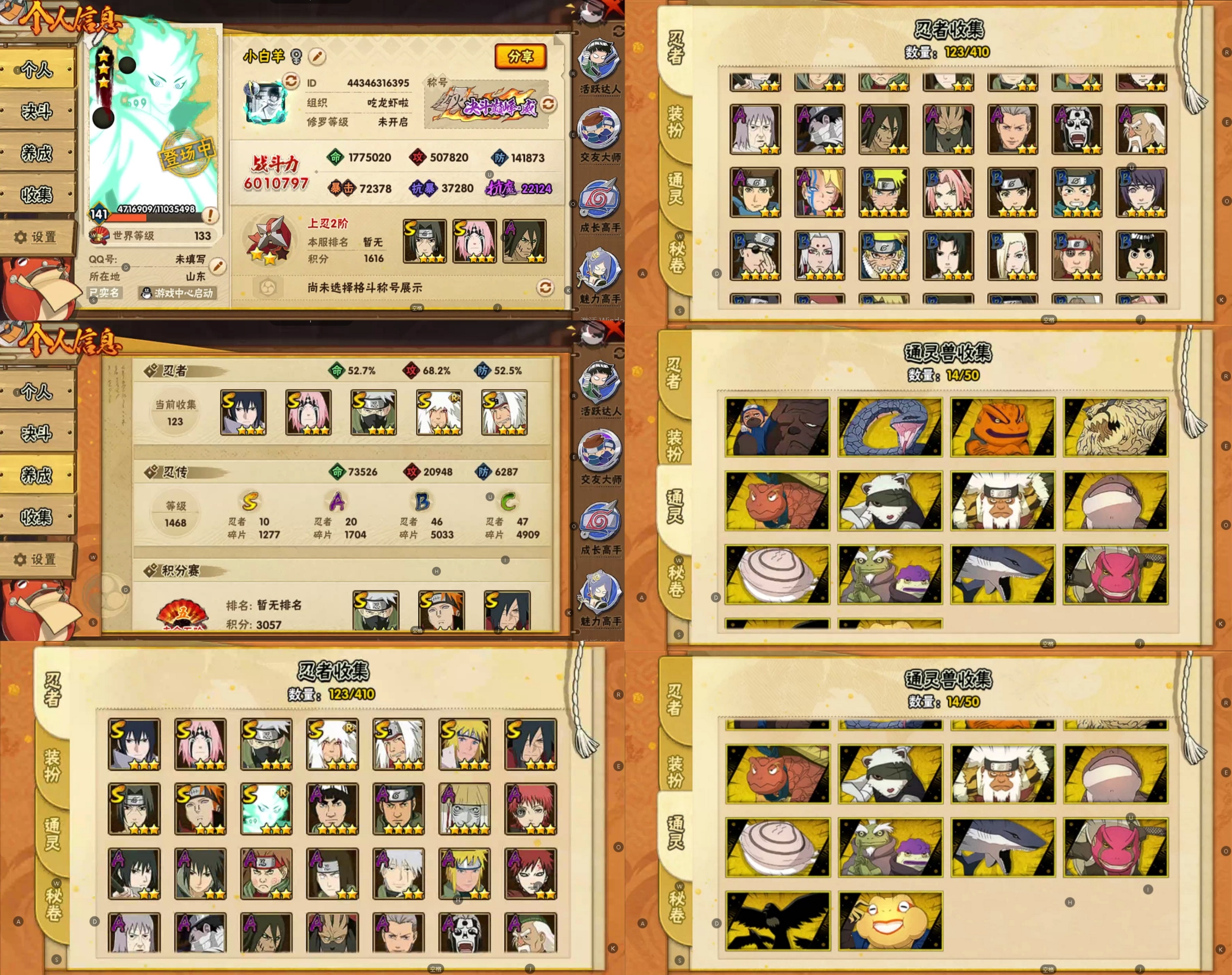PX_2223568-10S忍/20A忍/战力601W/V6/区服3463 【S忍者】,宇智波斑「秽土转生·解」,宇智波佐助「永恒万花筒」,春野樱「忍界大战」,自来也「舞之豪杰」,旗木卡卡西「须佐能乎」,大筒木舍人「最终章」,自来也「传说中的三忍」,宇智波鼬「须佐能乎」,佩恩「天道」,波风水门, 【A忍者】,日向宁次「忍界大战」,漩涡博人「桃式显现」,旗木卡卡西「幻之真容」,蝎「绯流琥」,宇智波泉奈,桃地再不斩「秽土转生」,角都「秽土转生」,波风水门「青年」,宇智波佐助「须佐能乎」,千代「近松十人卫」,秋道丁次「忍界大战」,飞段「死司凭血」,飞段,我爱罗「疾风传」,蝎,干柿鬼鲛,猿飞阿斯玛,迈特凯,