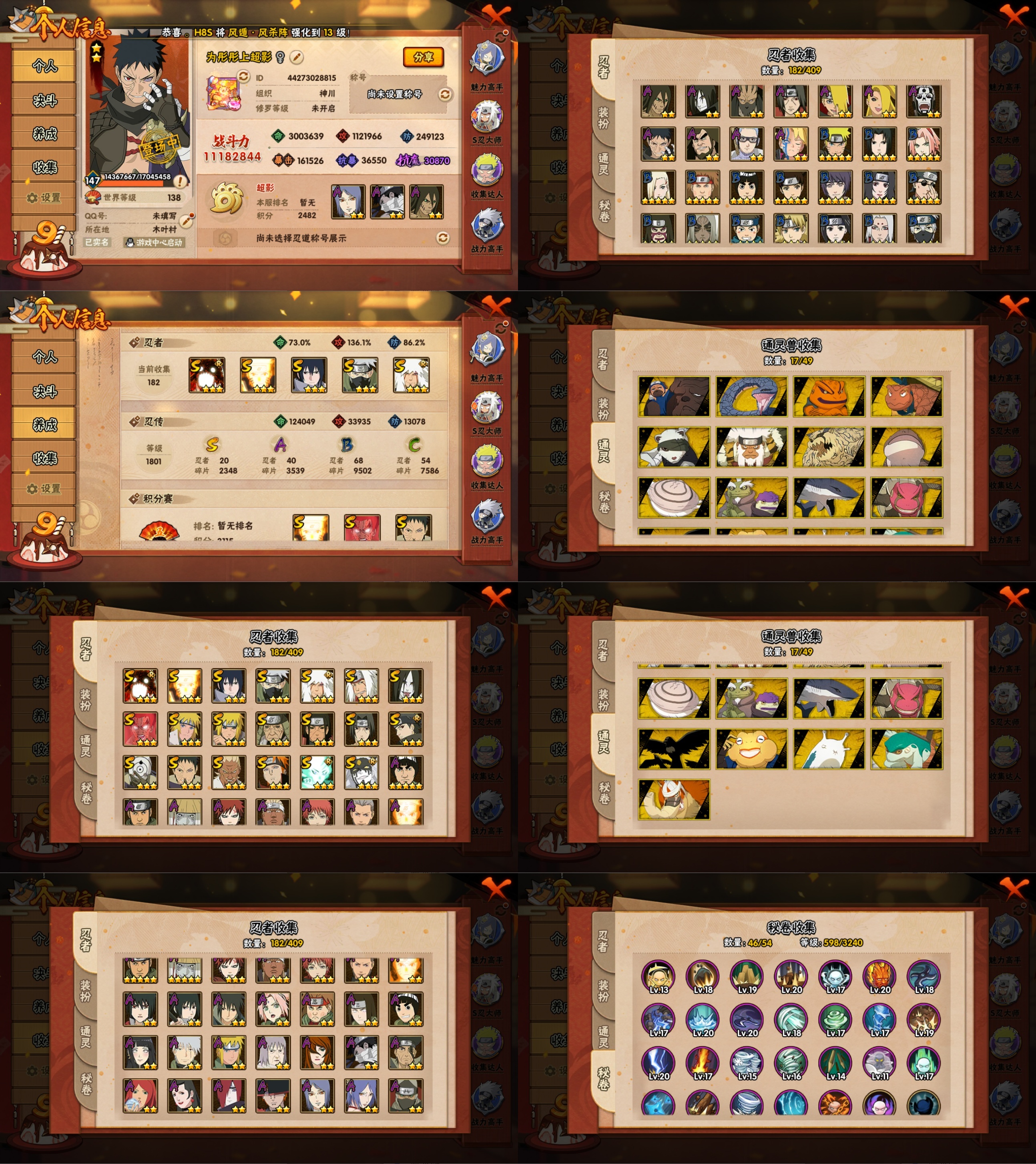 PX_2217581-20S忍/40A忍/战力1118W/V10/区服2730 【S忍者】,宇智波止水「须佐能乎」,艾「忍界大战」,大筒木桃式,宇智波佐助「永恒万花筒」,漩涡鸣人「九喇嘛连结」,迈特凯「死门」,宇智波带土「忍界大战」,千手柱间「秽土转生」,自来也「舞之豪杰」,旗木卡卡西「须佐能乎」,大筒木舍人「最终章」,自来也「传说中的三忍」,漩涡鸣人「暴怒·第六尾」,宇智波斑「白面具」,波风水门「秽土转生」,猿飞日斩「秽土转生」,宇智波鼬「须佐能乎」,佩恩「天道」,波风水门,大蛇丸, 【A忍者】,土台「忍界大战」,长十郎「六代目水影」,不缘,日向宁次「忍界大战」,漩涡博人「桃式显现」,日向雏田「最终章」,旗木卡卡西「幻之真容」,小南「漂泊浪客」,李洛克「忍界大战」,蝎「绯流琥」,宇智波泉奈,宇智波带土「漂泊浪客」,神农「羁绊」,桃地再不斩「秽土转生」,角都「秽土转生」,长门「青年」,佩恩·六道「漂泊浪客」,艾「青年」,不风,波风水门「青年」,宇智波佐助「须佐能乎」,迪达拉「秽土转生」,漩涡鸣人「九尾查克拉」,千代「近松十人卫」,小南「夏日泳装」,秋道丁次「忍界大战」,大蛇丸「晓」,春野樱「百豪」,照美冥「五代目水影」,宇智波佐助「万花筒写轮眼」,飞段「死司凭血」,角都,飞段,迪达拉,我爱罗「疾风传」,蝎,干柿鬼鲛,宇智波鼬,猿飞阿斯玛,迈特凯,