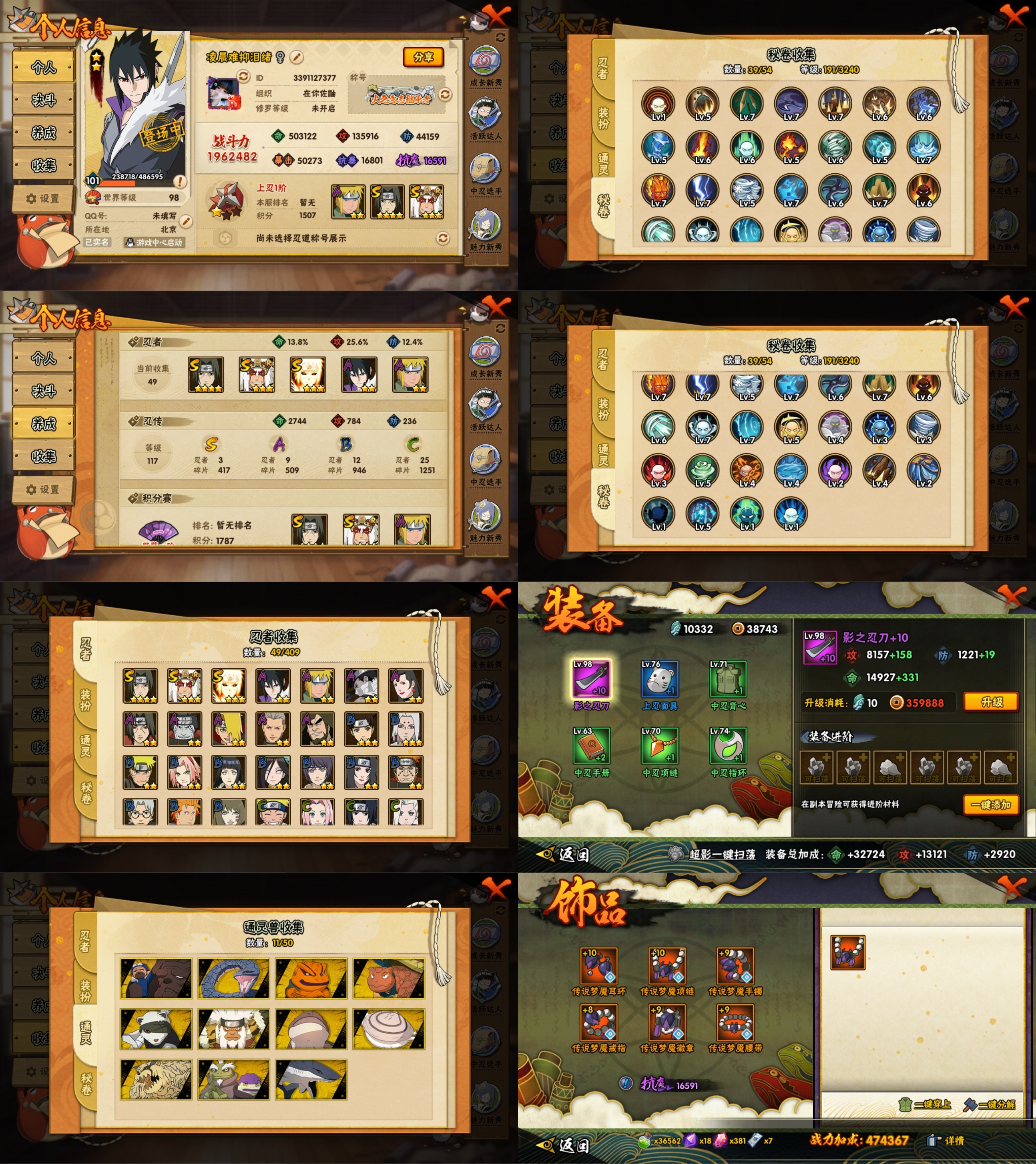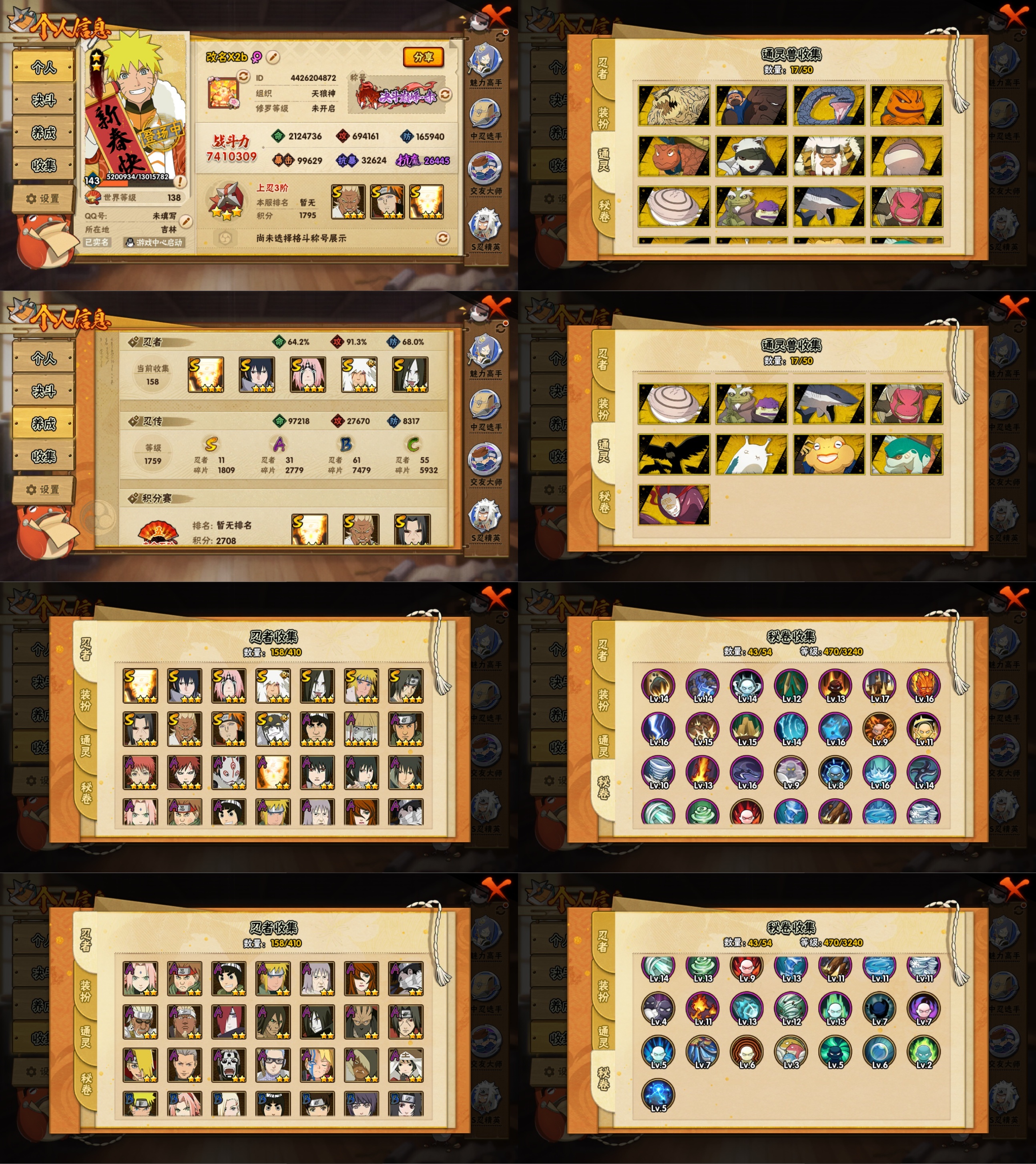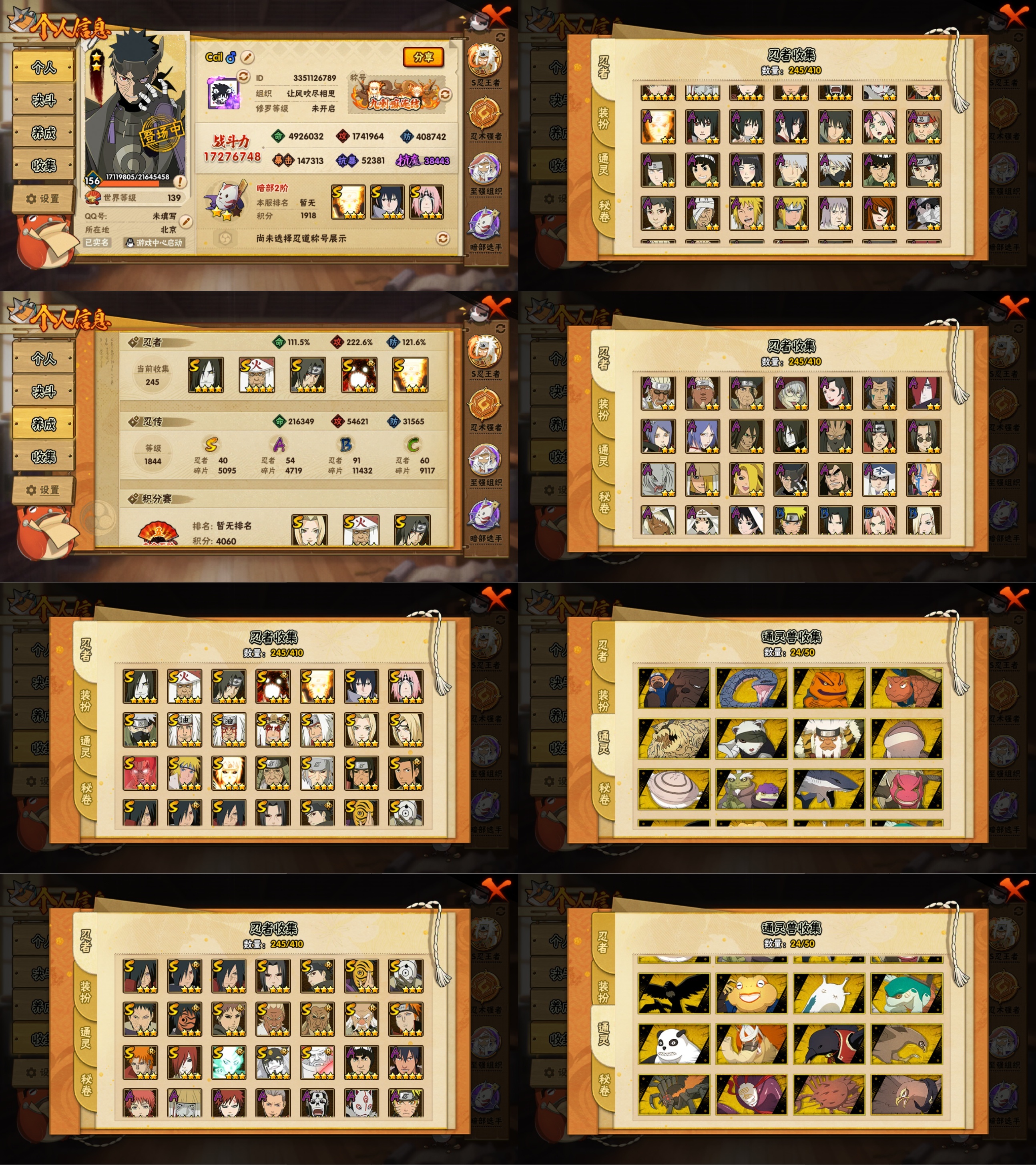 PX_2206066-9S忍/34A忍/战力717W/V9/区服3540 【S忍者】,宇智波佐助「永恒万花筒」,春野樱「忍界大战」,宇智波带土「忍界大战」,自来也「舞之豪杰」,自来也「传说中的三忍」,漩涡鸣人「暴怒·第六尾」,宇智波鼬「须佐能乎」,佩恩「天道」,波风水门, 【A忍者】,长十郎「六代目水影」,不缘,日向宁次「忍界大战」,漩涡博人「桃式显现」,日向雏田「最终章」,旗木卡卡西「幻之真容」,李洛克「忍界大战」,不动,蝎「绯流琥」,宇智波泉奈,宇智波带土「漂泊浪客」,神农「羁绊」,桃地再不斩「秽土转生」,角都「秽土转生」,长门「青年」,达鲁伊「五代目雷影」,宇智波佐助「须佐能乎」,千代「近松十人卫」,秋道丁次「忍界大战」,猿飞阿斯玛「秽土转生」,春野樱「百豪」,猿飞日斩「火影继承人」,宇智波佐助「万花筒写轮眼」,飞段「死司凭血」,飞段,迪达拉,我爱罗「疾风传」,蝎,干柿鬼鲛,宇智波鼬,猿飞阿斯玛,迈特凯,
