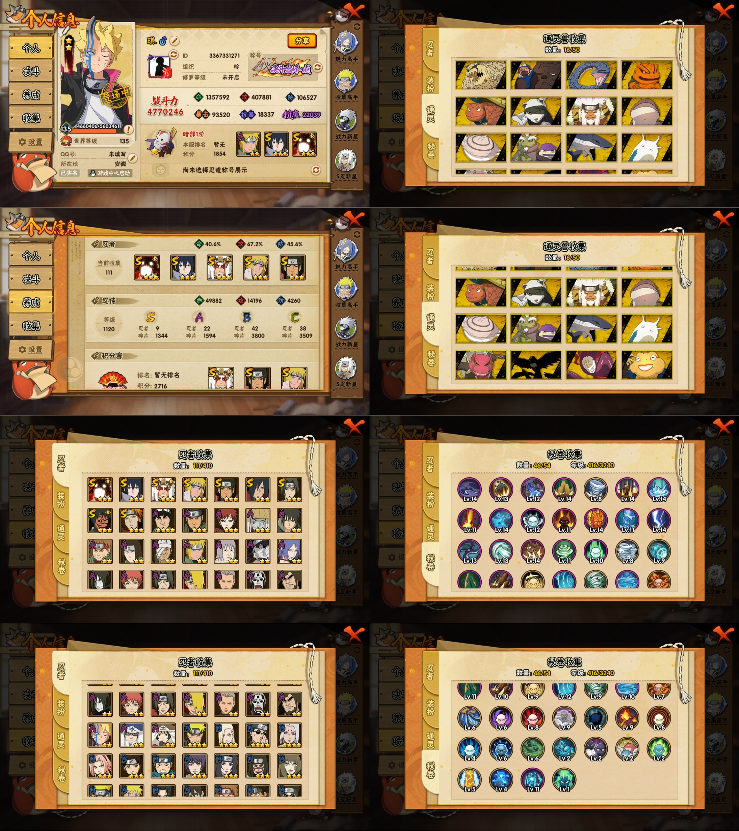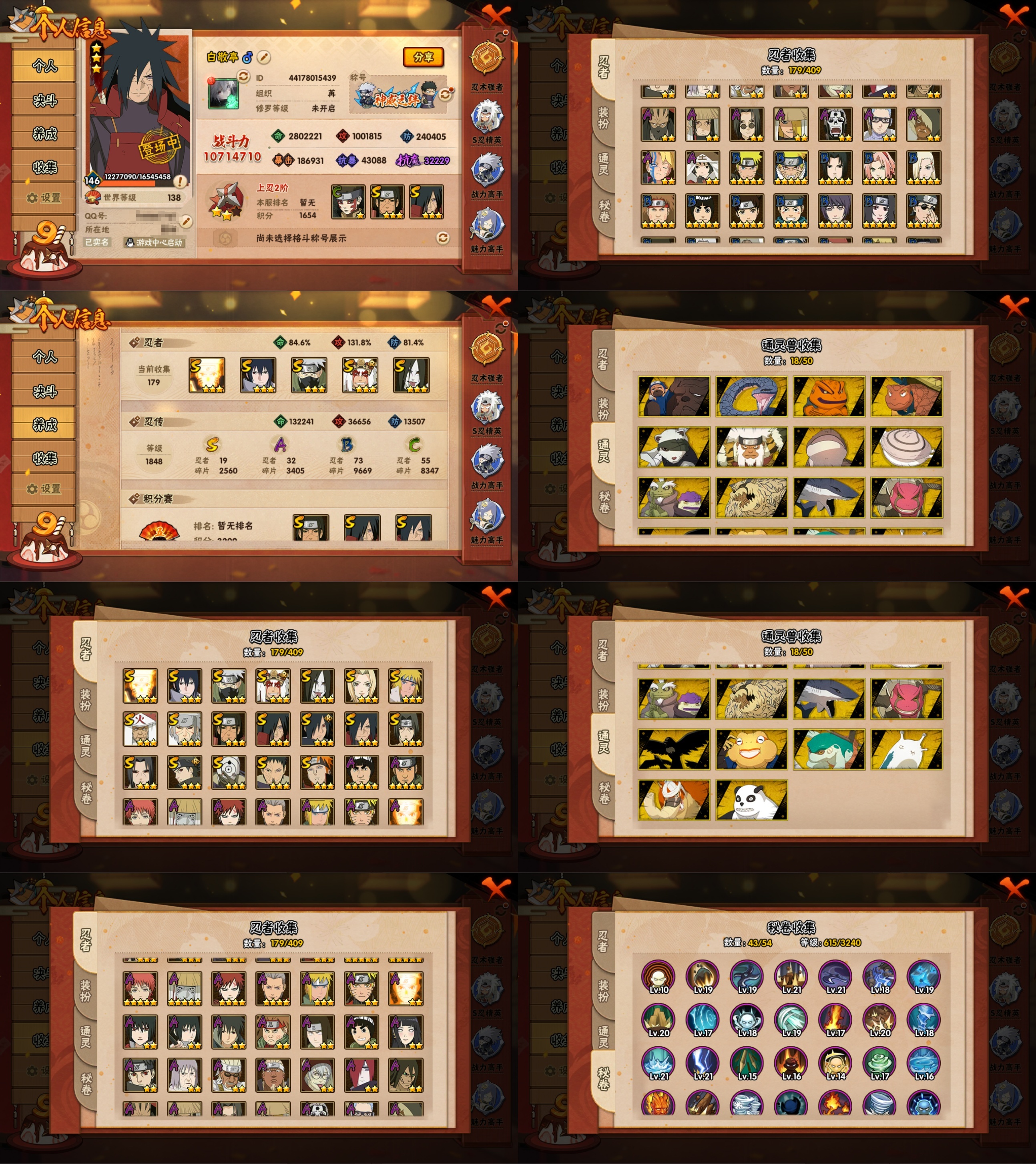 PX_2205447-18S忍/33A忍/战力1071W/V8/区服2050 【S忍者】,艾「忍界大战」,宇智波斑「秽土转生·解」,宇智波佐助「永恒万花筒」,漩涡鸣人「九喇嘛连结」,迈特凯「死门」,宇智波带土「忍界大战」,千手柱间「秽土转生」,自来也「舞之豪杰」,旗木卡卡西「须佐能乎」,宇智波鼬「秽土转生」,药师兜「仙人模式」,宇智波斑「秽土转生」,宇智波斑「白面具」,宇智波鼬「须佐能乎」,佩恩「天道」,猿飞日斩,波风水门,大蛇丸, 【A忍者】,长十郎「六代目水影」,不缘,日向宁次「忍界大战」,漩涡博人「桃式显现」,日向雏田「最终章」,李洛克「忍界大战」,不动,宇智波泉奈,长门「青年」,艾「青年」,达鲁伊「五代目雷影」,波风水门「青年」,奇拉比「忍界大战」,宇智波佐助「须佐能乎」,迪达拉「秽土转生」,旗木卡卡西「忍界大战」,漩涡鸣人「九尾查克拉」,千代「近松十人卫」,秋道丁次「忍界大战」,大蛇丸「晓」,照美冥「五代目水影」,宇智波佐助「万花筒写轮眼」,漩涡鸣人「仙人模式」,飞段「死司凭血」,飞段,迪达拉,我爱罗「疾风传」,蝎,干柿鬼鲛,宇智波鼬,猿飞阿斯玛,迈特凯,