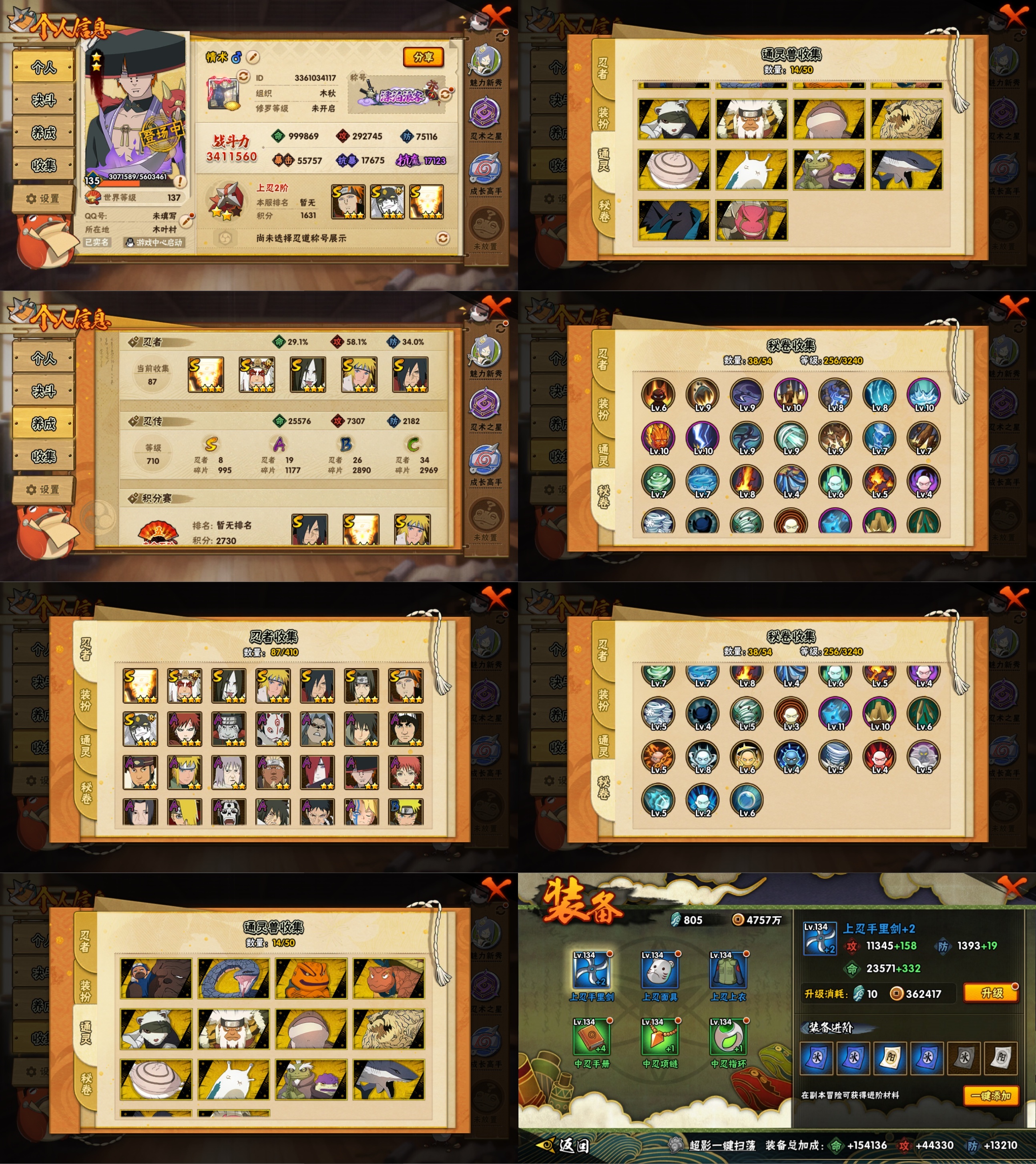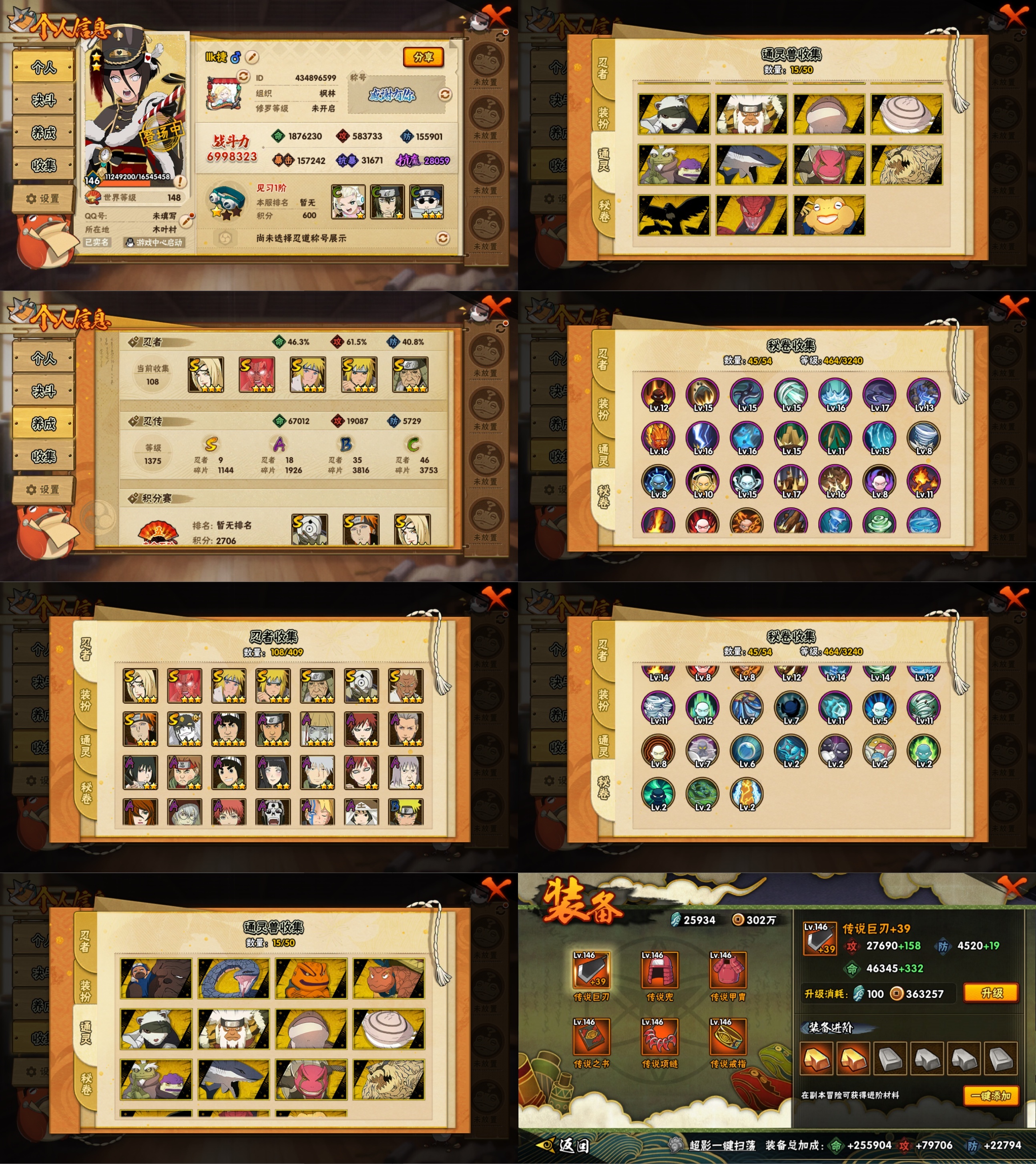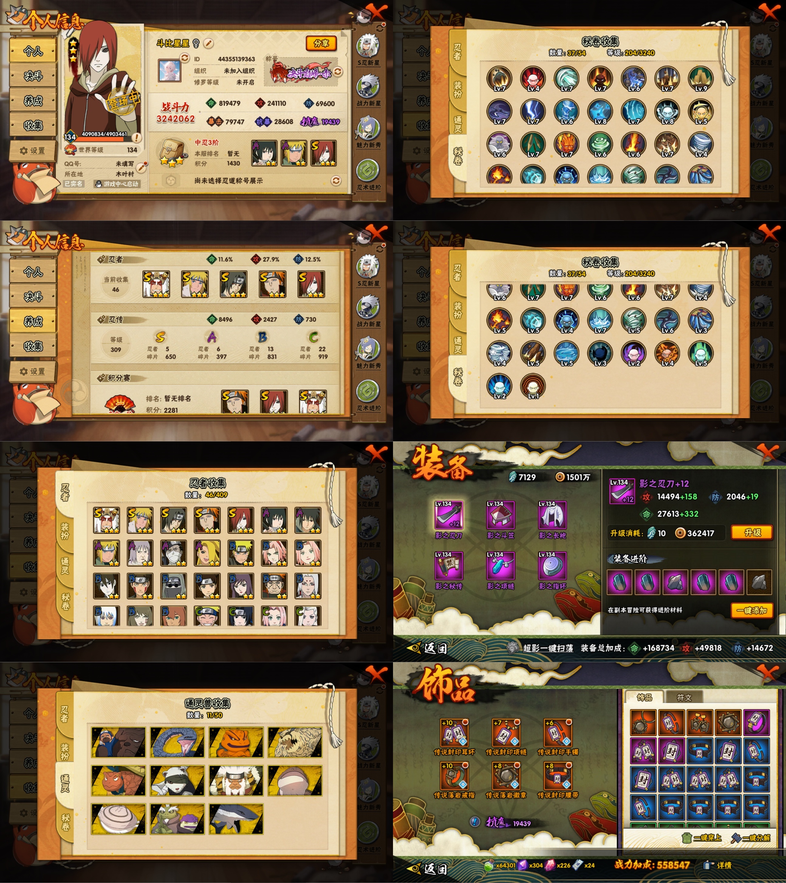 PX_2202896-13S忍/20A忍/战力907W/V11/区服3206 【S忍者】,宇智波斑「秽土转生·解」,宇智波佐助「永恒万花筒」,神秘面具男「红夜之刃」,大筒木金式,漩涡鸣人「九喇嘛连结」,自来也「舞之豪杰」,宇智波斑「白面具」,猿飞日斩「秽土转生」,自来也「仙人模式」,佩恩「天道」,猿飞日斩,波风水门,纲手, 【A忍者】,长十郎「六代目水影」,日向宁次「忍界大战」,长门「青年」,艾「青年」,宇智波佐助「须佐能乎」,旗木卡卡西「忍界大战」,漩涡鸣人「九尾查克拉」,千代「近松十人卫」,干柿鬼鲛「鲛肌融合」,宇智波佐助「疾风传咒印」,秋道丁次「忍界大战」,照美冥「五代目水影」,飞段「死司凭血」,迪达拉,我爱罗「疾风传」,蝎,干柿鬼鲛,宇智波鼬,猿飞阿斯玛,迈特凯,