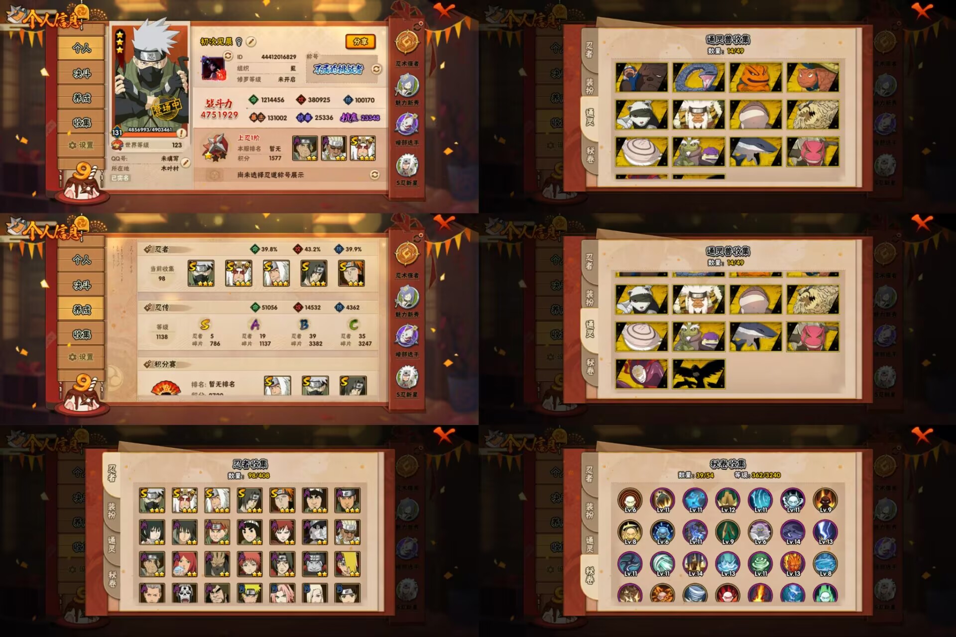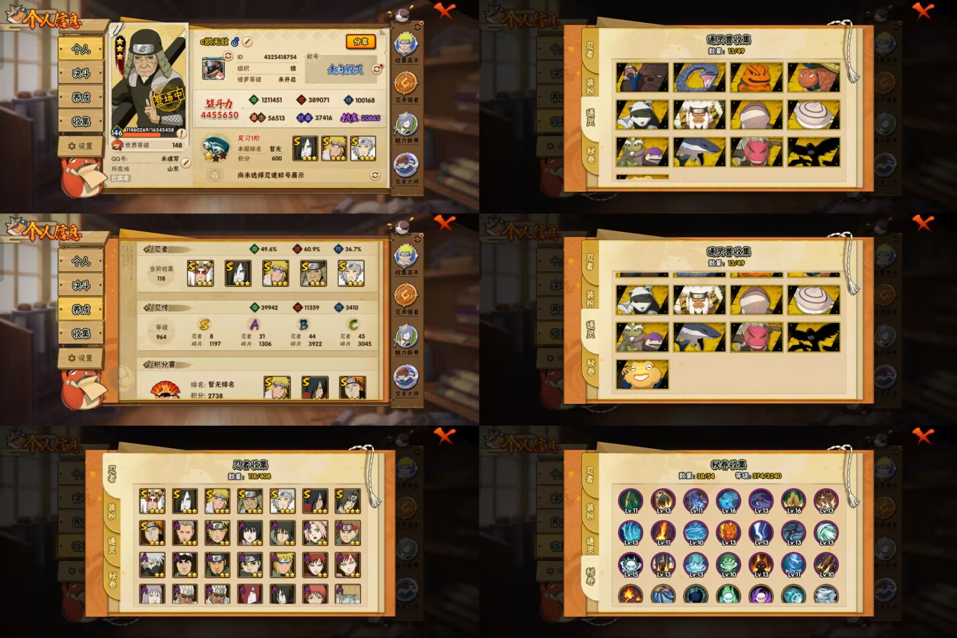 PX_2199483-8S忍/21A忍/战力445W/V4/区服254 【S忍者】,自来也「舞之豪杰」,宇智波斑「秽土转生」,猿飞日斩「秽土转生」,千手扉间,宇智波鼬「须佐能乎」,佩恩「天道」,波风水门,大蛇丸, 【A忍者】,宇智波泉奈,宇智波止水,长门「青年」,波风水门「青年」,奇拉比「忍界大战」,千代「近松十人卫」,我爱罗「忍界大战」,秋道丁次「忍界大战」,大蛇丸「晓」,春野樱「百豪」,宇智波佐助「万花筒写轮眼」,奇拉比,漩涡鸣人「仙人模式」,旗木卡卡西「万花筒写轮眼」,飞段「死司凭血」,飞段,我爱罗「疾风传」,蝎,干柿鬼鲛,猿飞阿斯玛,迈特凯,