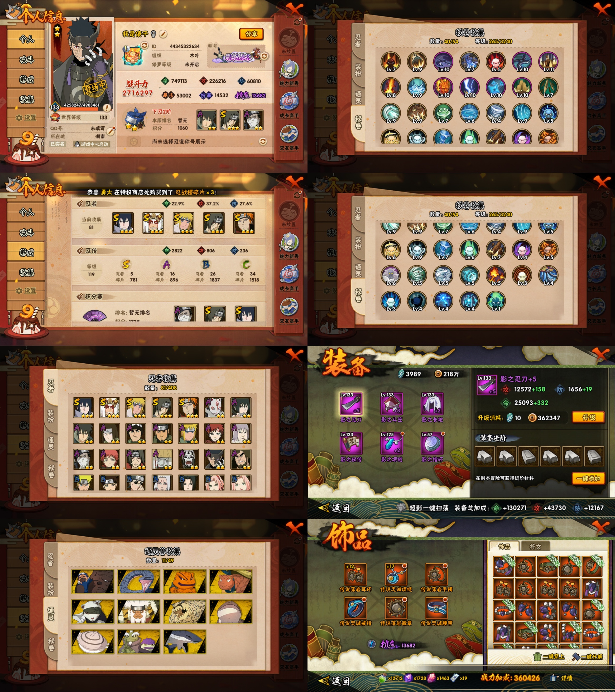 PX_2198928-5S忍/16A忍/战力271W/V8/区服3453 【S忍者】,宇智波佐助「永恒万花筒」,自来也「舞之豪杰」,宇智波鼬「须佐能乎」,佩恩「天道」,波风水门, 【A忍者】,日向宁次「忍界大战」,宇智波泉奈,宇智波带土「漂泊浪客」,神农「羁绊」,神秘面具男「忍者之路」,波风水门「青年」,宇智波佐助「须佐能乎」,千代「近松十人卫」,飞段「死司凭血」,我爱罗「疾风传」,蝎,干柿鬼鲛,宇智波鼬,猿飞阿斯玛,迈特凯,桃地再不斩,