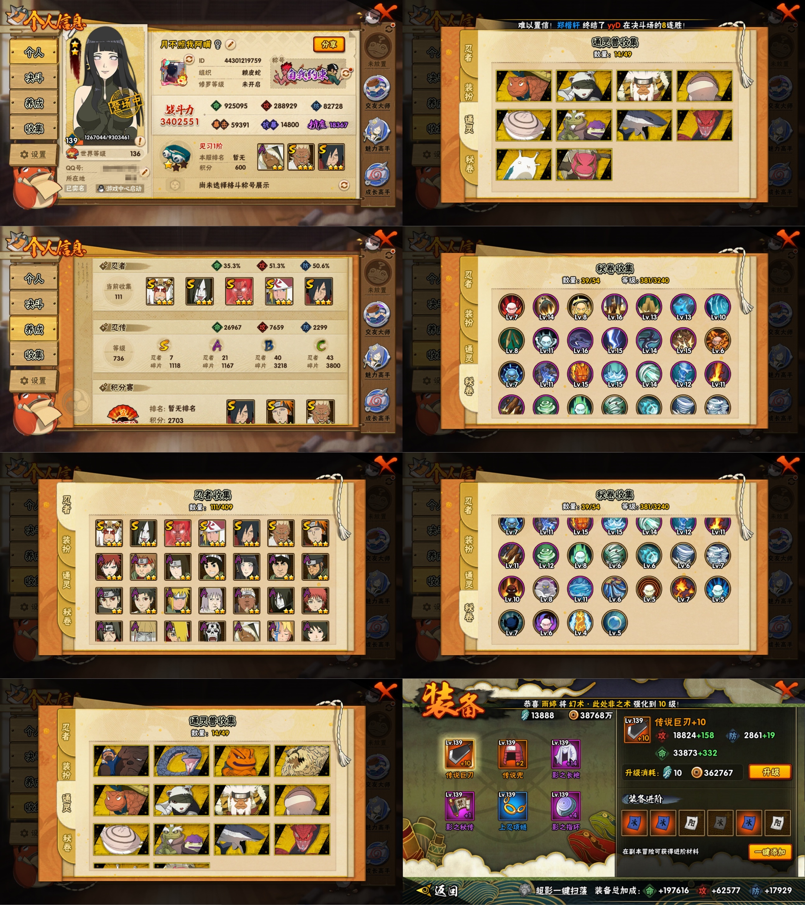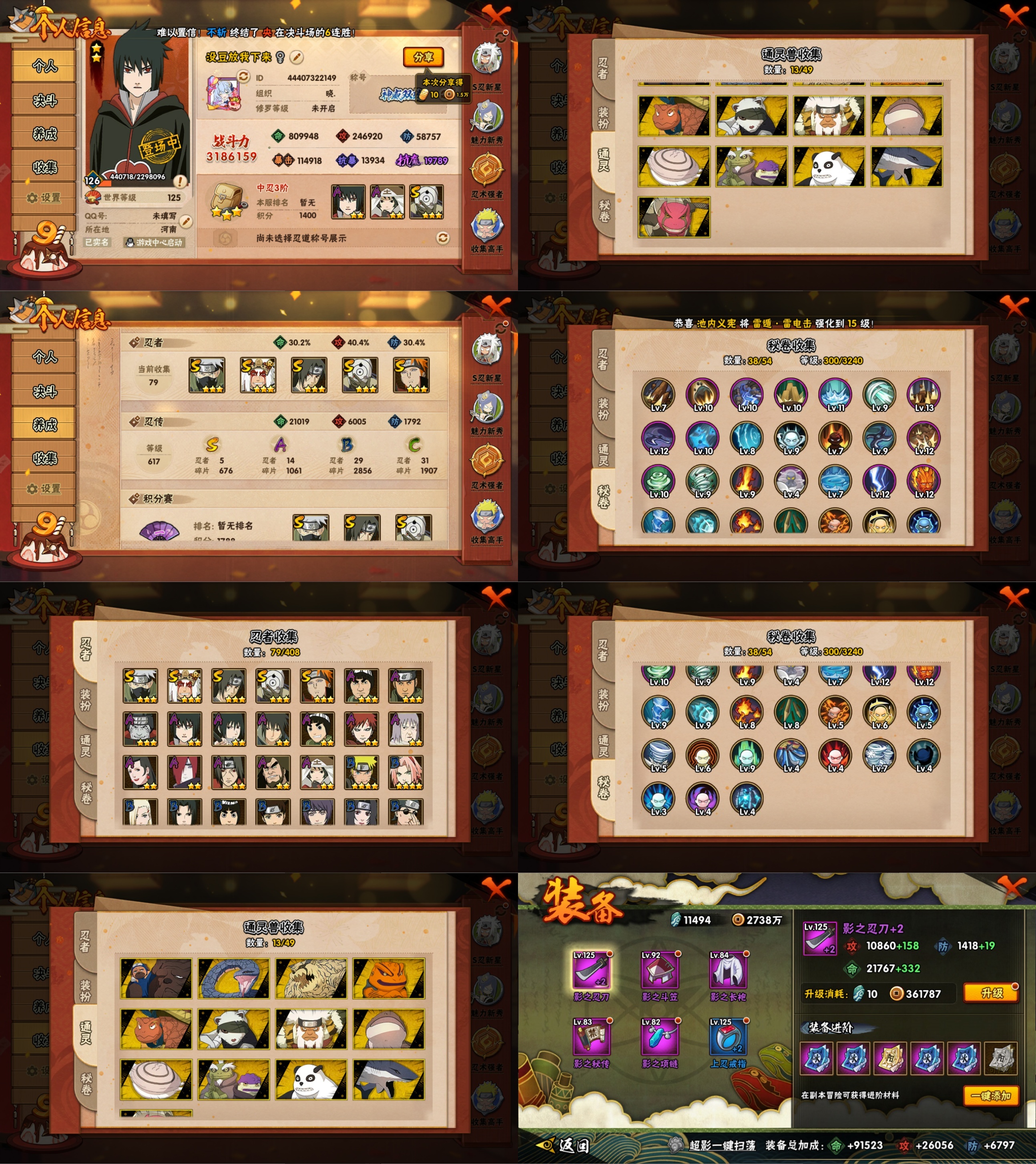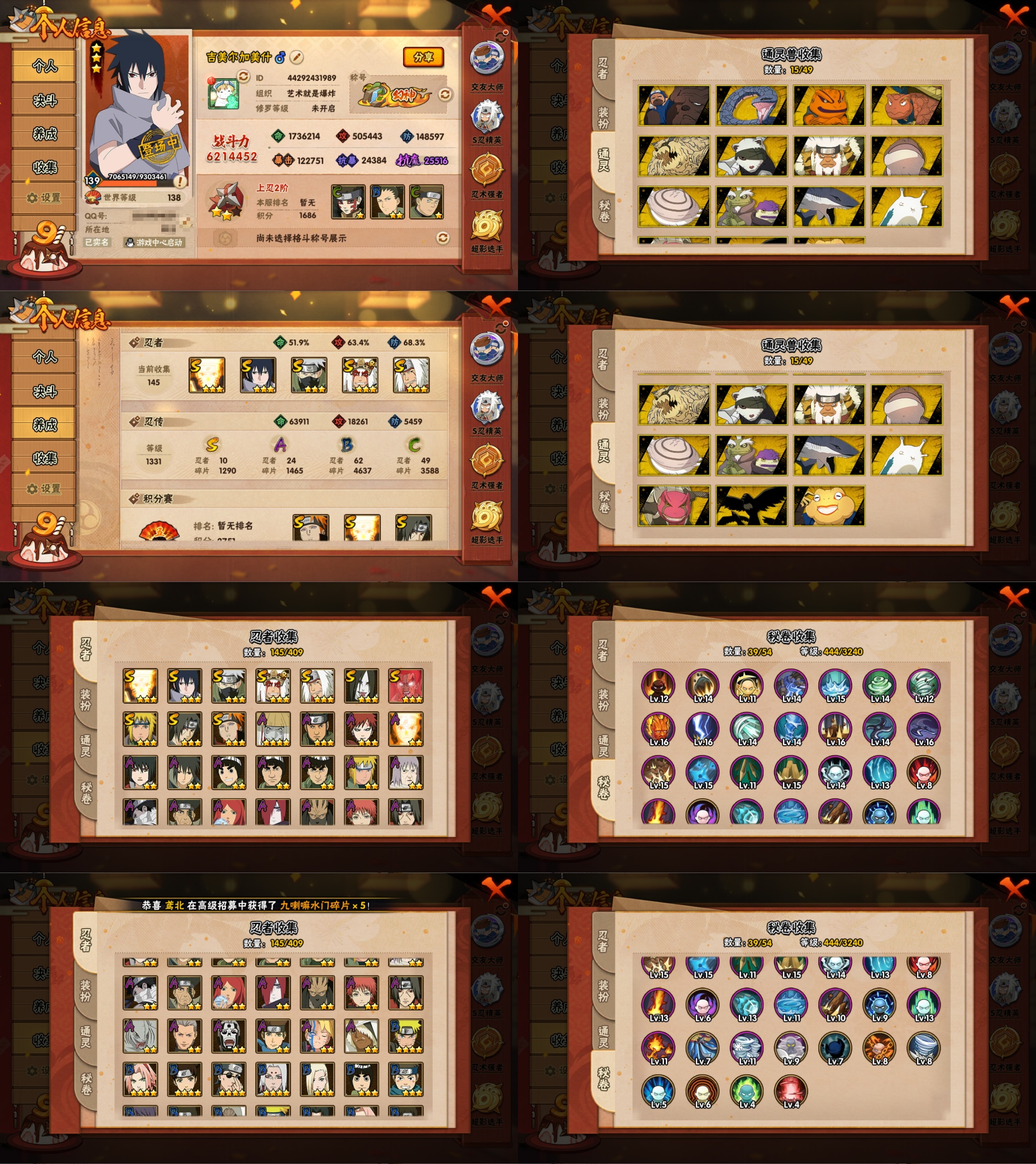 PX_2192366-8S忍/27A忍/战力661W/V5/区服1049 【S忍者】,宇智波斑「秽土转生·解」,自来也「舞之豪杰」,自来也「传说中的三忍」,千手扉间「秽土转生」,长门「秽土转生」,宇智波鼬「须佐能乎」,佩恩「天道」,波风水门, 【A忍者】,长十郎「六代目水影」,日向宁次「忍界大战」,漩涡博人「桃式显现」,李洛克「忍界大战」,蝎「绯流琥」,宇智波泉奈,神农「羁绊」,桃地再不斩「秽土转生」,波风水门「青年」,宇智波佐助「须佐能乎」,迪达拉「秽土转生」,漩涡鸣人「九尾查克拉」,千代「近松十人卫」,药师兜「半蛇斗篷」,我爱罗「忍界大战」,猿飞阿斯玛「秽土转生」,春野樱「百豪」,志村团藏,漩涡鸣人「仙人模式」,旗木卡卡西「万花筒写轮眼」,飞段「死司凭血」,飞段,我爱罗「疾风传」,蝎,干柿鬼鲛,猿飞阿斯玛,迈特凯,