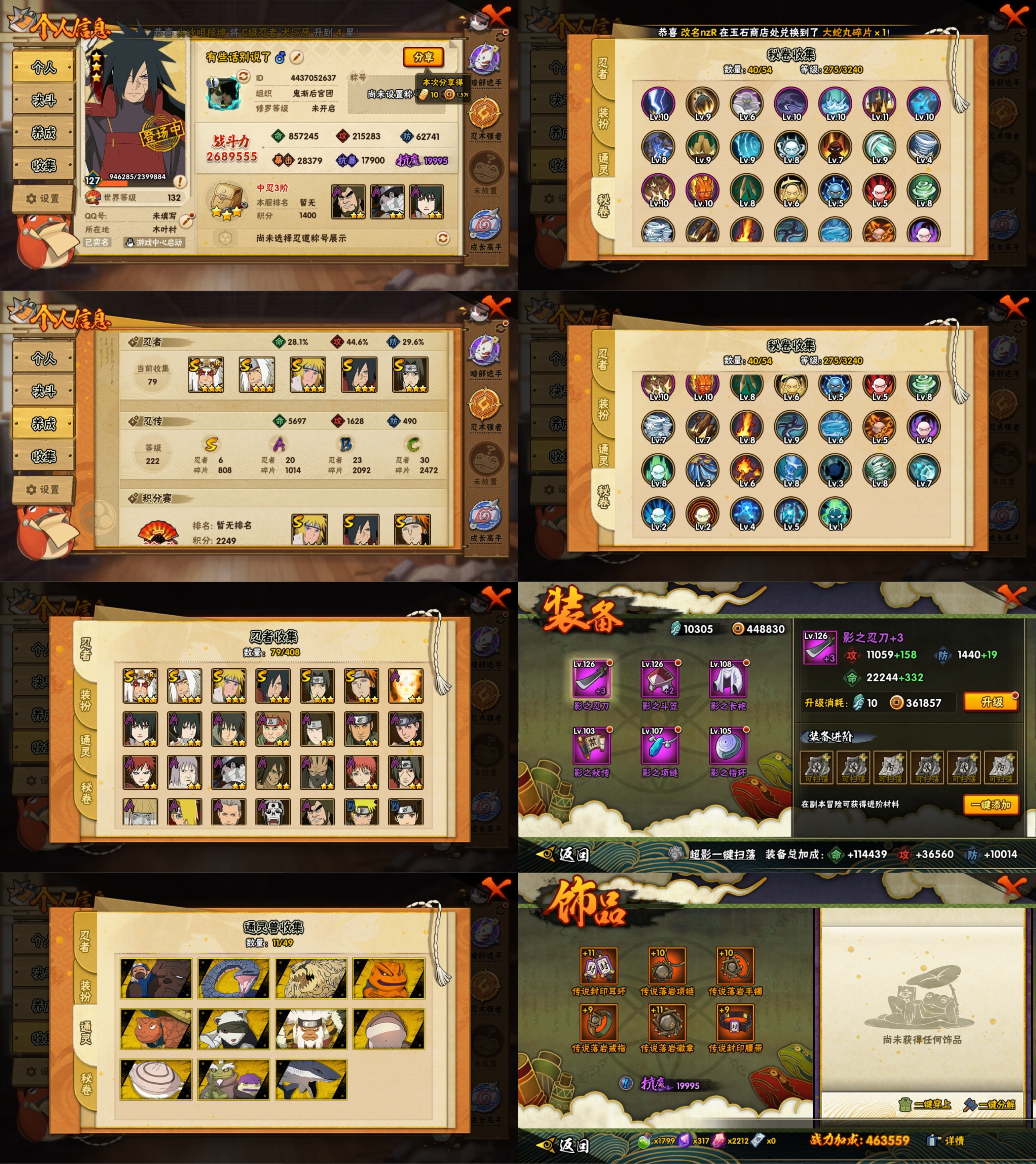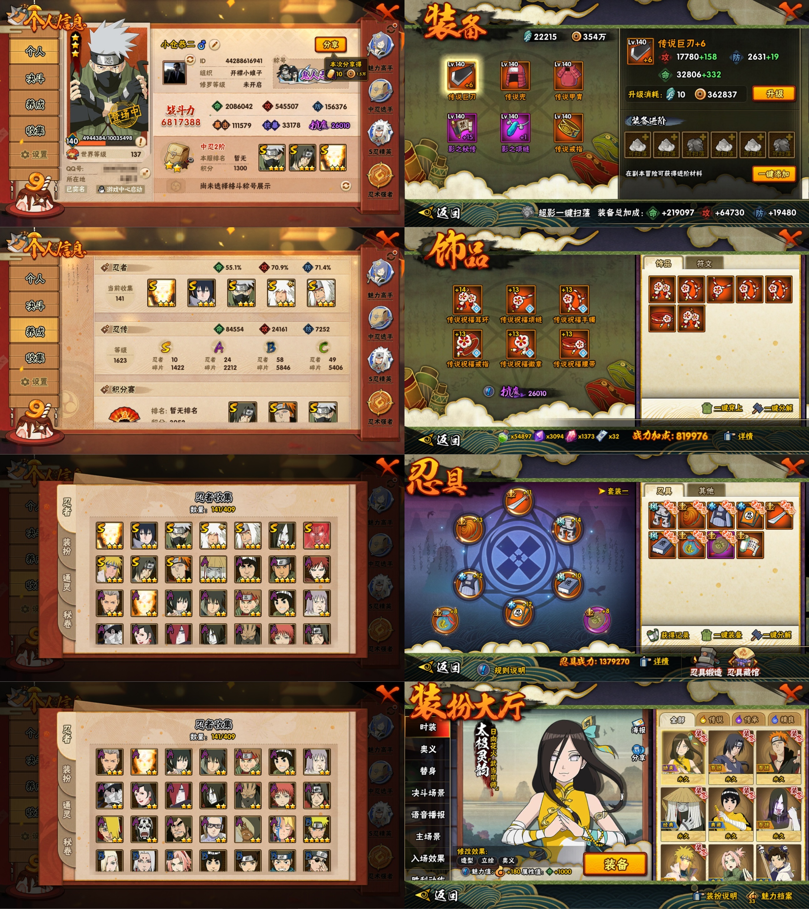PX_2193541-10S忍/24A忍/战力681W/V6/区服2886 【S忍者】,宇智波佐助「永恒万花筒」,漩涡鸣人「九喇嘛连结」,迈特凯「死门」,自来也「舞之豪杰」,旗木卡卡西「须佐能乎」,自来也「传说中的三忍」,宇智波鼬「须佐能乎」,佩恩「天道」,波风水门,大蛇丸, 【A忍者】,长十郎「六代目水影」,不缘,漩涡博人「桃式显现」,李洛克「忍界大战」,蝎「绯流琥」,宇智波泉奈,神农「羁绊」,桃地再不斩「秽土转生」,长门「青年」,达鲁伊「五代目雷影」,宇智波佐助「须佐能乎」,漩涡鸣人「九尾查克拉」,千代「近松十人卫」,秋道丁次「忍界大战」,大蛇丸「晓」,飞段「死司凭血」,飞段,迪达拉,我爱罗「疾风传」,蝎,干柿鬼鲛,宇智波鼬,猿飞阿斯玛,迈特凯,