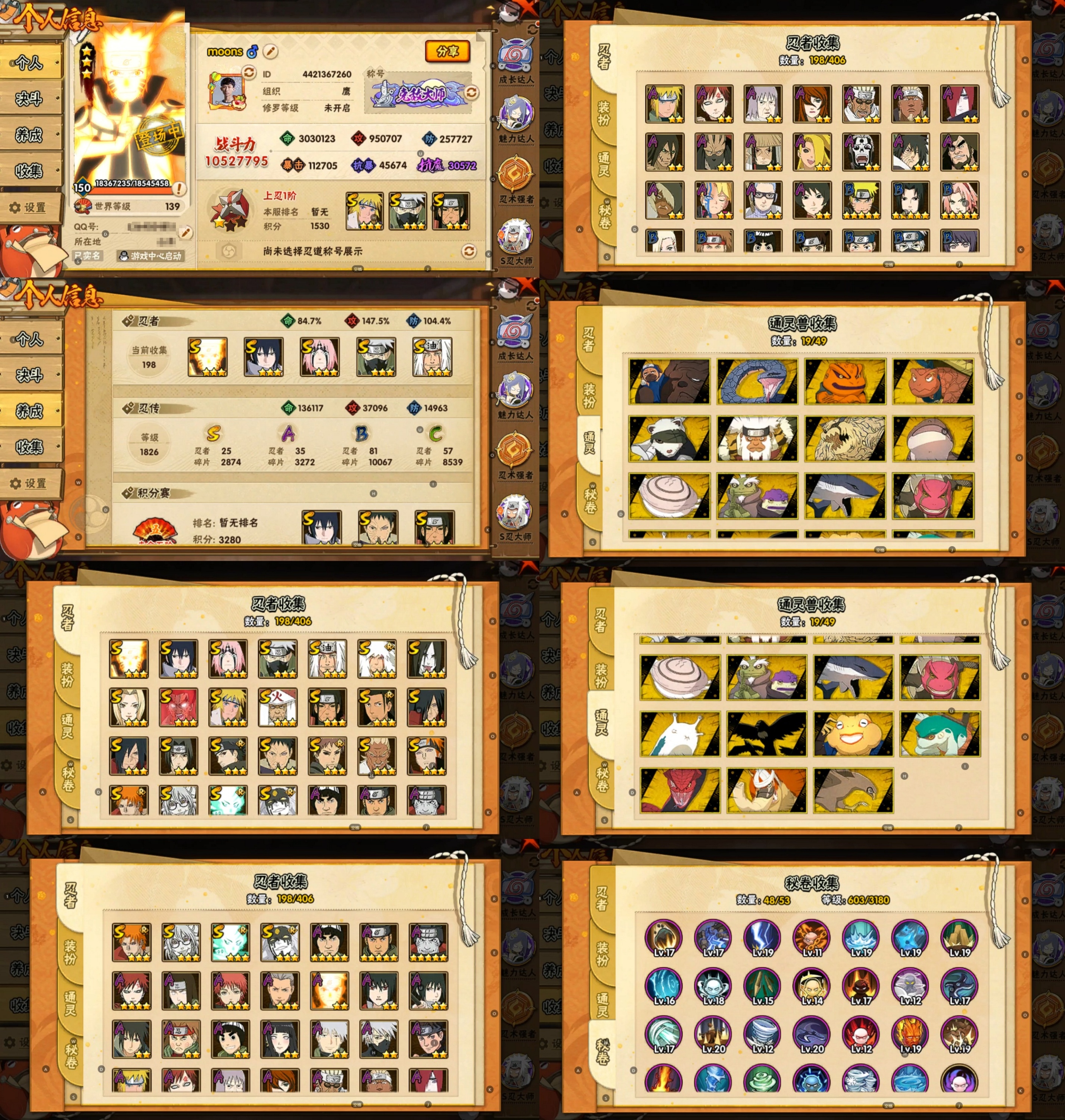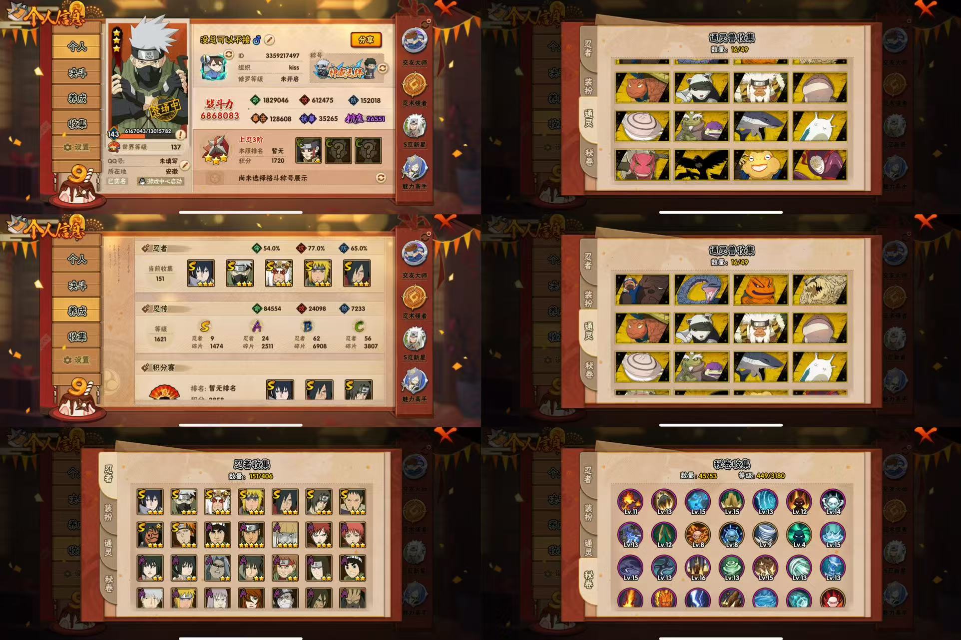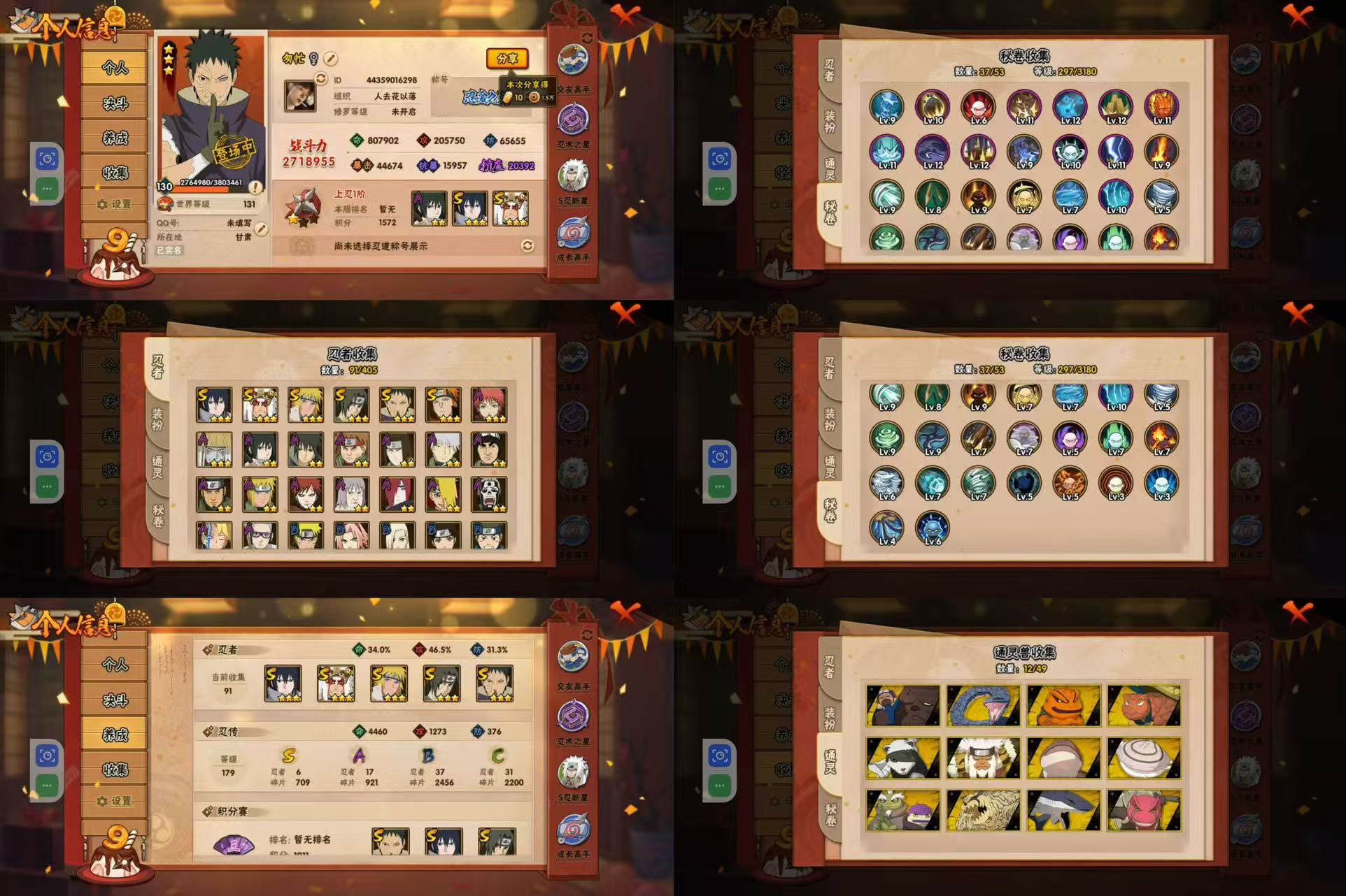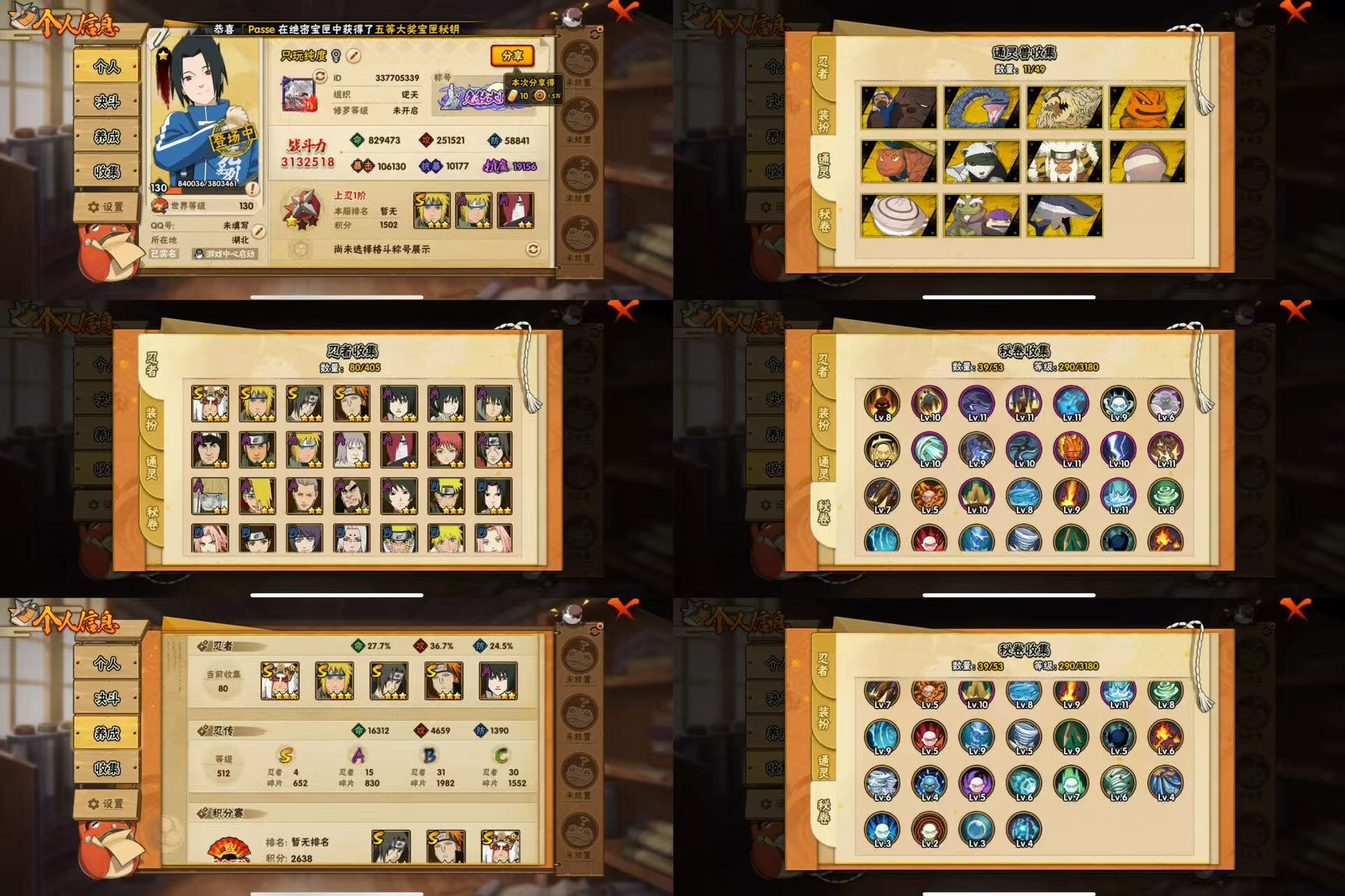 PX_2170103-6S忍/17A忍/战力271W/V1/区服3590 【S忍者】,宇智波佐助「永恒万花筒」,宇智波带土「忍界大战」,自来也「舞之豪杰」,宇智波鼬「须佐能乎」,佩恩「天道」,波风水门, 【A忍者】,长十郎「六代目水影」,日向宁次「忍界大战」,漩涡博人「桃式显现」,旗木卡卡西「幻之真容」,宇智波泉奈,长门「青年」,波风水门「青年」,宇智波佐助「须佐能乎」,千代「近松十人卫」,秋道丁次「忍界大战」,飞段「死司凭血」,迪达拉,我爱罗「疾风传」,蝎,干柿鬼鲛,猿飞阿斯玛,迈特凯,