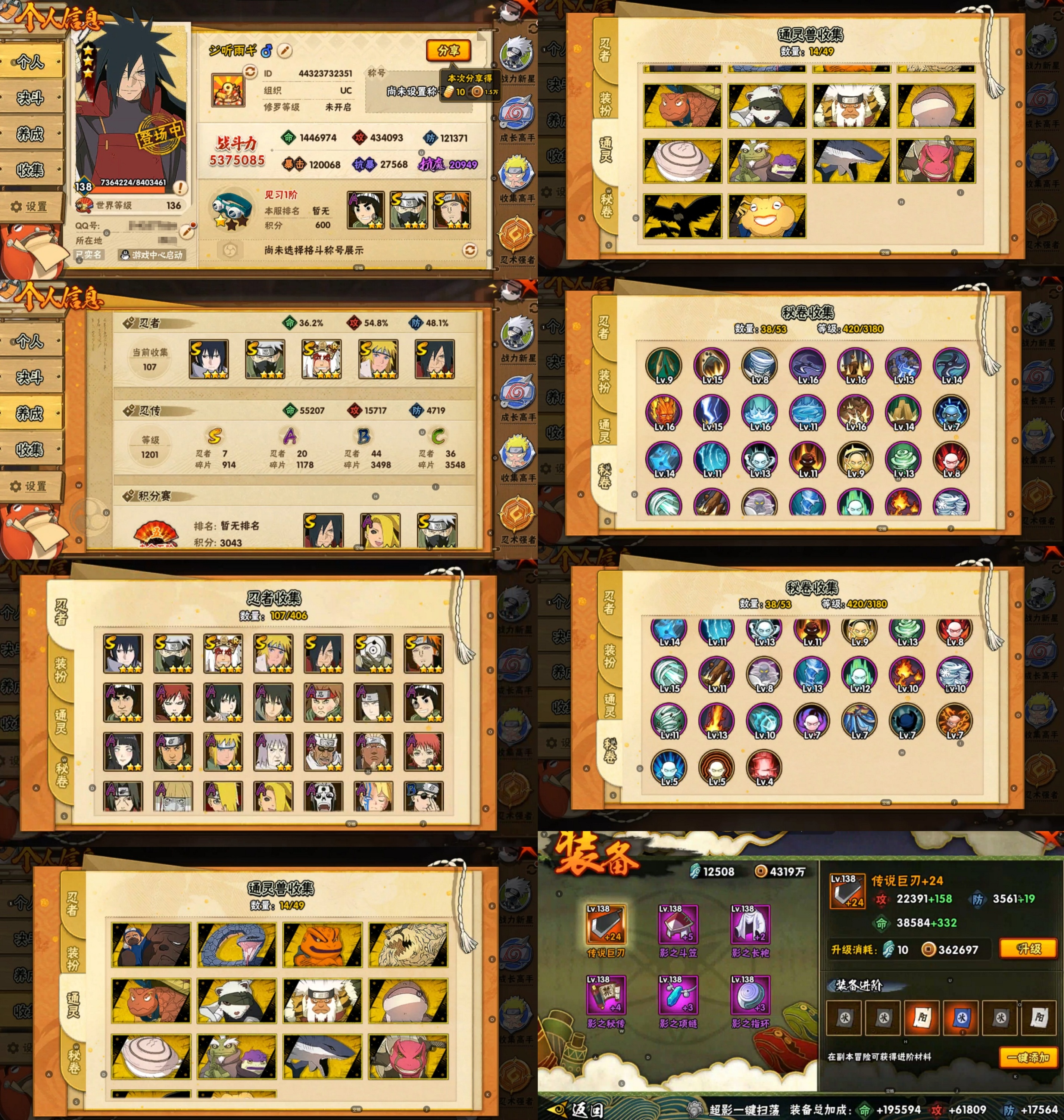 PX_2171405-7S忍/20A忍/战力537W/V6/区服3237 【S忍者】,宇智波斑「秽土转生·解」,宇智波佐助「永恒万花筒」,自来也「舞之豪杰」,旗木卡卡西「须佐能乎」,宇智波斑「白面具」,佩恩「天道」,波风水门, 【A忍者】,日向宁次「忍界大战」,漩涡博人「桃式显现」,日向雏田「最终章」,李洛克「忍界大战」,宇智波泉奈,艾「青年」,波风水门「青年」,宇智波佐助「须佐能乎」,迪达拉「秽土转生」,千代「近松十人卫」,秋道丁次「忍界大战」,奇拉比,飞段「死司凭血」,迪达拉,我爱罗「疾风传」,蝎,干柿鬼鲛,宇智波鼬,猿飞阿斯玛,迈特凯,