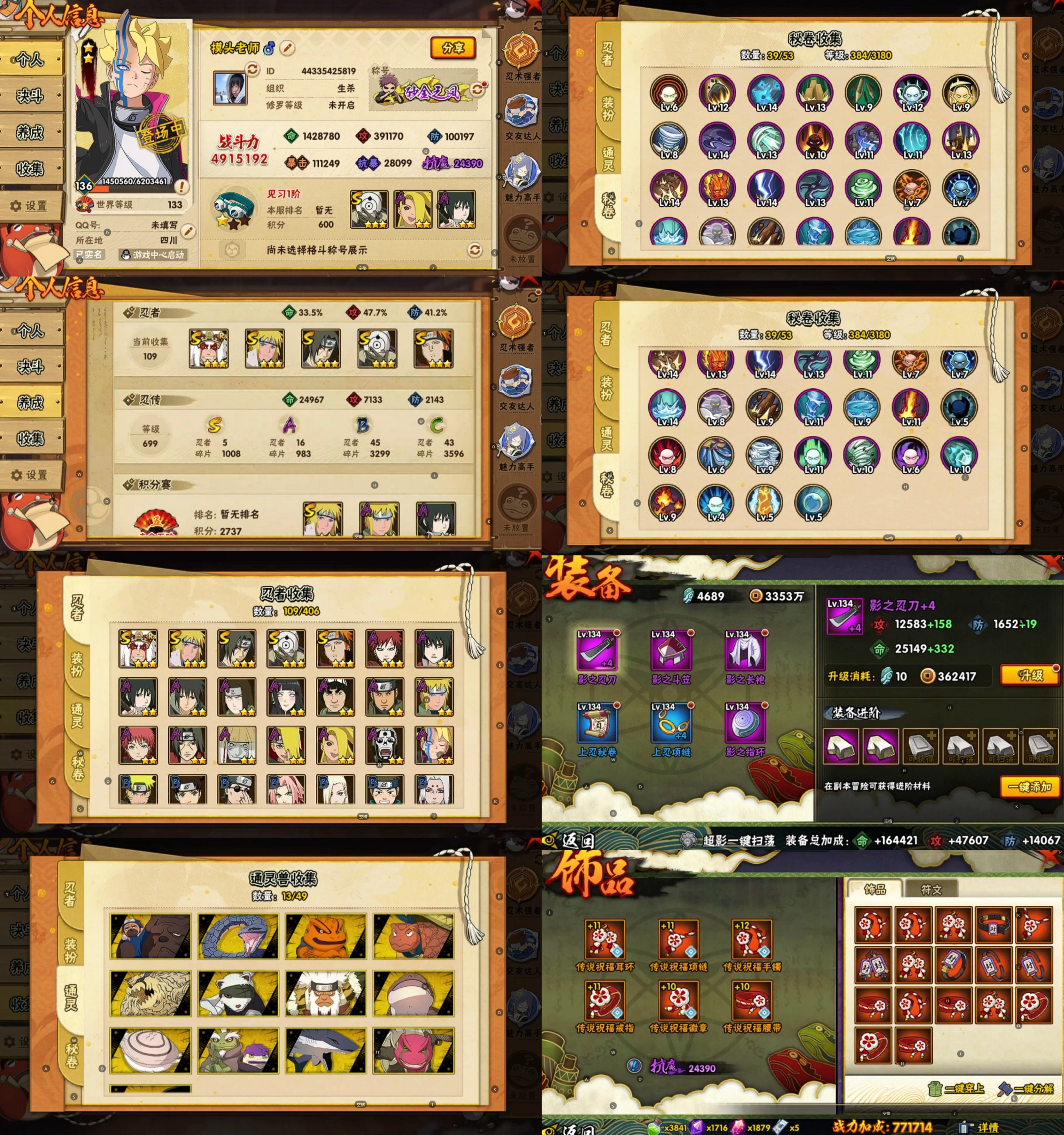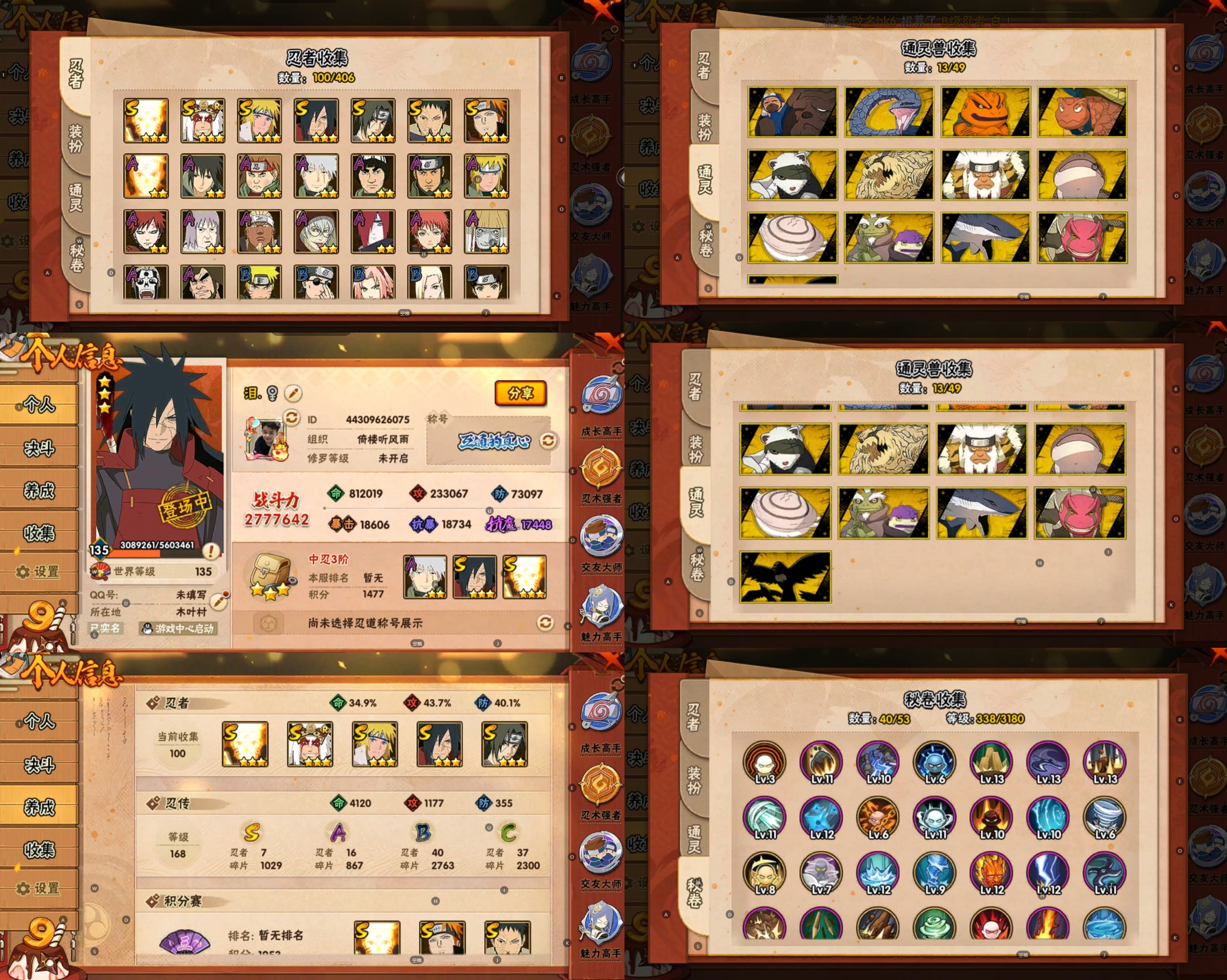 PX_2169464-5S忍/16A忍/战力491W/V7/区服3354 【S忍者】,自来也「舞之豪杰」,宇智波斑「白面具」,宇智波鼬「须佐能乎」,佩恩「天道」,波风水门, 【A忍者】,日向宁次「忍界大战」,漩涡博人「桃式显现」,日向雏田「最终章」,宇智波泉奈,波风水门「青年」,宇智波佐助「须佐能乎」,迪达拉「秽土转生」,宇智波佐助「万花筒写轮眼」,飞段「死司凭血」,迪达拉,我爱罗「疾风传」,蝎,干柿鬼鲛,宇智波鼬,猿飞阿斯玛,迈特凯,