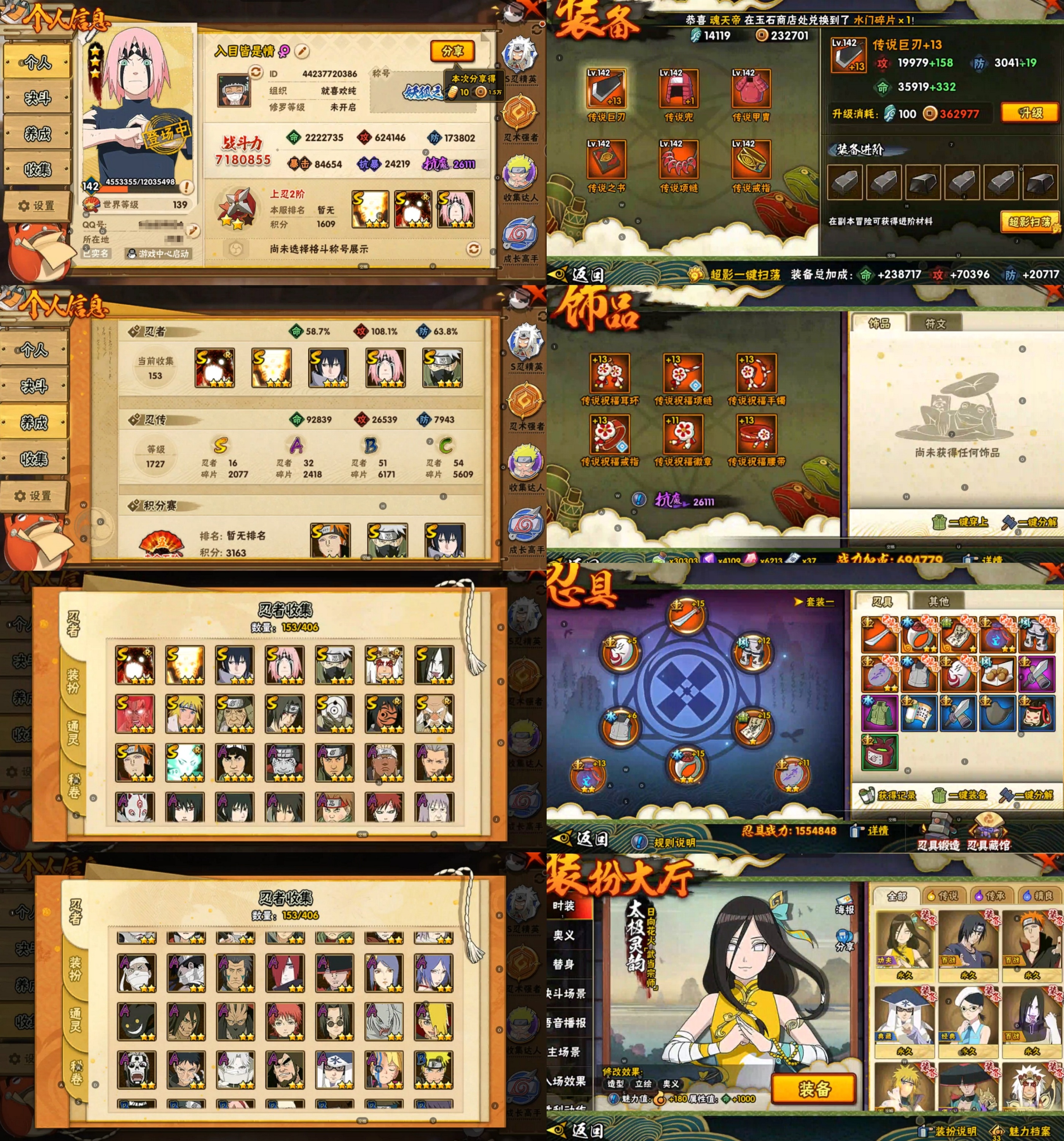 PX_2169454-16S忍/32A忍/战力718W/V13/区服2377 【S忍者】,宇智波佐助「永恒万花筒」,神秘面具男「红夜之刃」,春野樱「忍界大战」,漩涡鸣人「九喇嘛连结」,大野木「忍界大战」,迈特凯「死门」,自来也「舞之豪杰」,旗木卡卡西「须佐能乎」,大筒木舍人「最终章」,漩涡鸣人「暴怒·第六尾」,宇智波斑「白面具」,猿飞日斩「秽土转生」,宇智波鼬「须佐能乎」,佩恩「天道」,波风水门,大蛇丸, 【A忍者】,长十郎「六代目水影」,漩涡博人「桃式显现」,小南「漂泊浪客」,黑绝,不动,蝎「绯流琥」,宇智波泉奈,宇智波带土「漂泊浪客」,神农「羁绊」,桃地再不斩「秽土转生」,角都「秽土转生」,长门「青年」,佩恩·六道「漂泊浪客」,艾「青年」,神秘面具男「忍者之路」,宇智波佐助「须佐能乎」,桃地再不斩「漂泊武士」,小南「新春限定」,千代「近松十人卫」,干柿鬼鲛「鲛肌融合」,宇智波鼬「新春限定」,秋道丁次「忍界大战」,宇智波佐助「万花筒写轮眼」,飞段「死司凭血」,飞段,迪达拉,我爱罗「疾风传」,蝎,干柿鬼鲛,猿飞阿斯玛,迈特凯,卑留呼「火之意志继承者」,