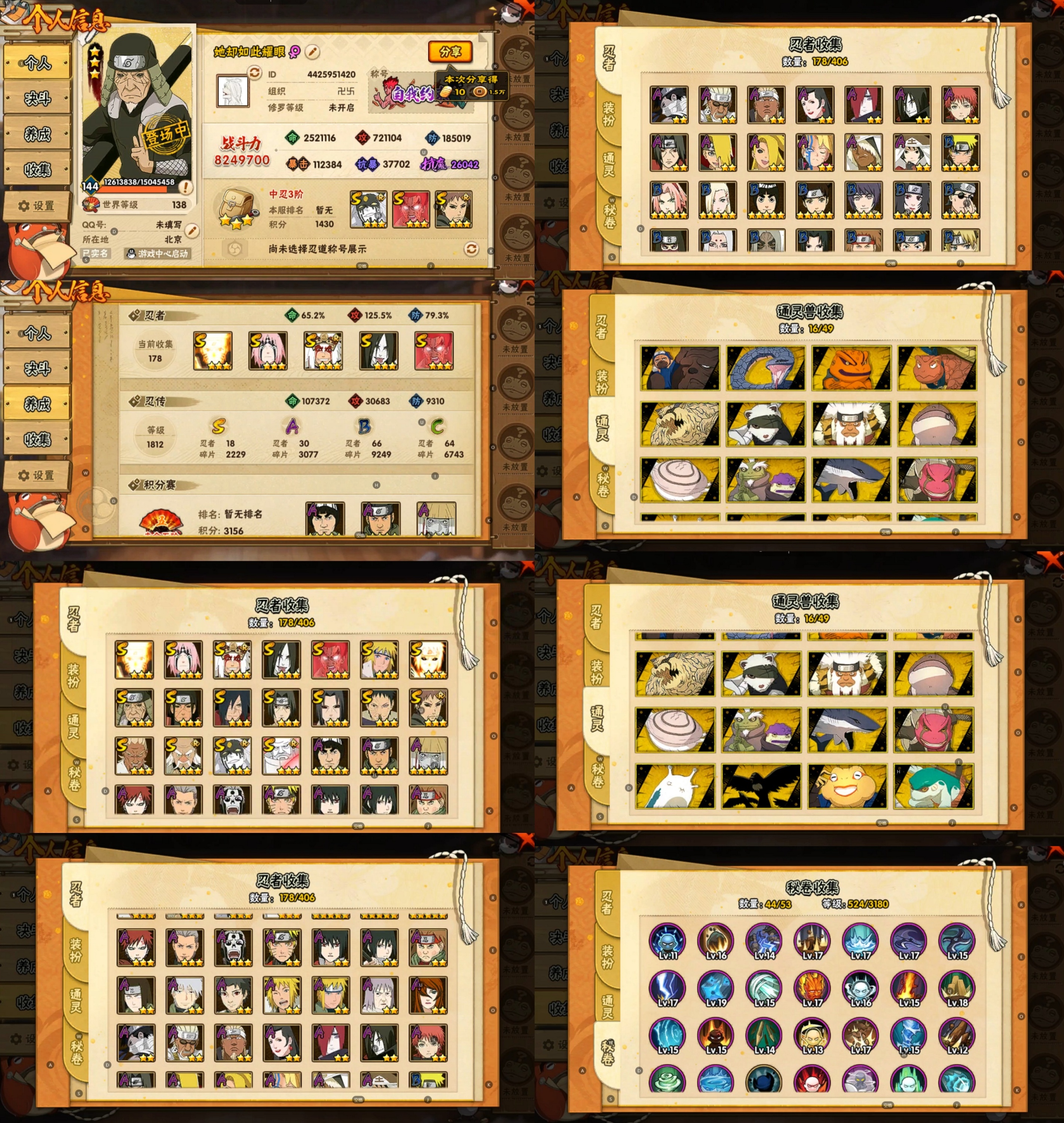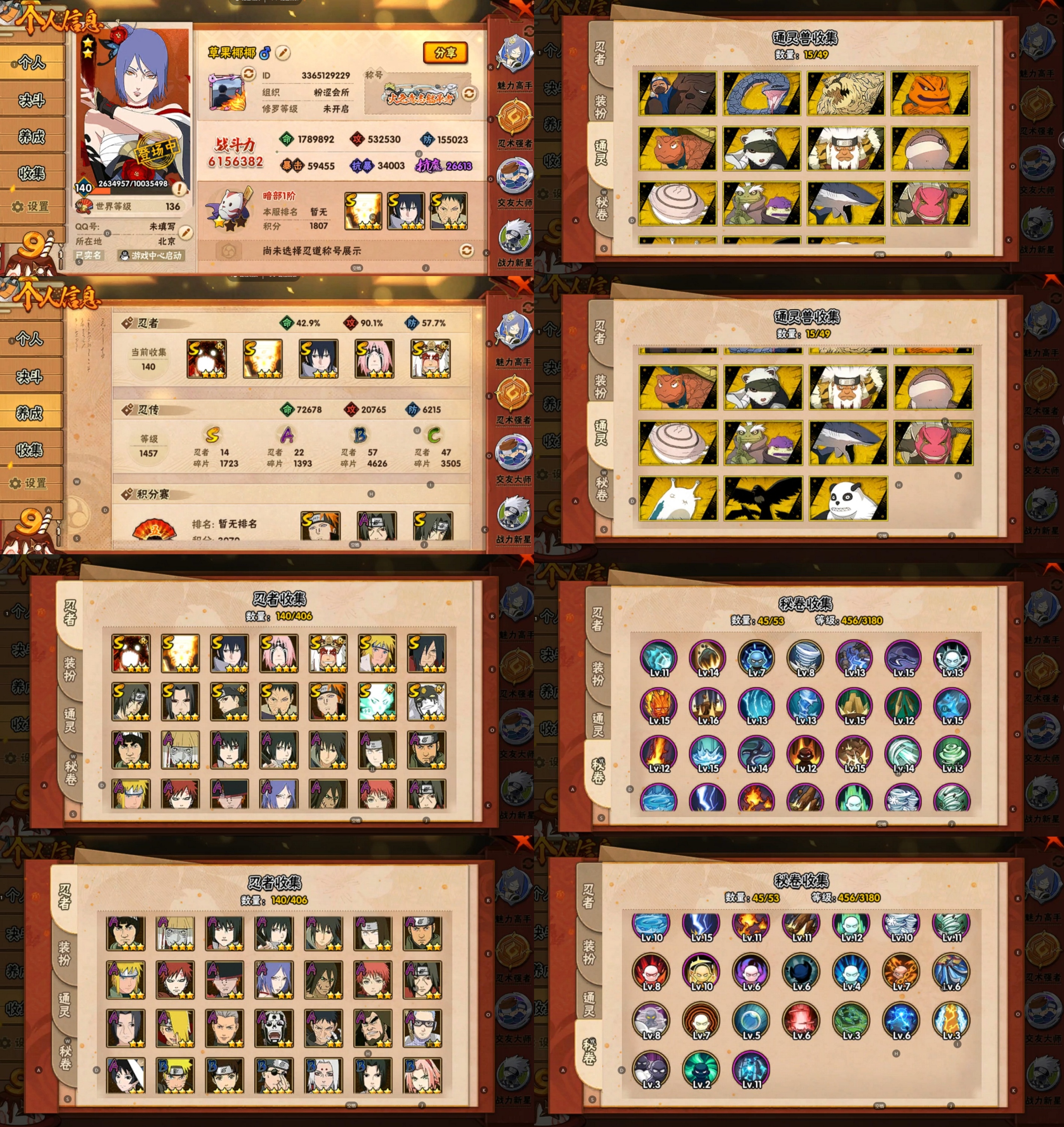 PX_2163446-27S忍/55A忍/战力1032W/V13/区服579 【S忍者】,宇智波止水「须佐能乎」,宇智波斑「秽土转生·解」,漩涡鸣人「九喇嘛连结」,迈特凯「死门」,宇智波斑「木叶创立」,宇智波带土「忍界大战」,罗砂「四代目风影」,自来也「舞之豪杰」,旗木卡卡西「须佐能乎」,自来也「传说中的三忍」,漩涡鸣人「暴怒·第六尾」,宇智波鼬「秽土转生」,佩恩·天道「超」,药师兜「仙人模式」,艾「三代目雷影」,宇智波斑「白面具」,千手扉间「秽土转生」,纲手「百豪」,猿飞日斩「秽土转生」,长门「秽土转生」,鬼灯幻月「二代目水影」,宇智波斑,神秘面具男,宇智波鼬「须佐能乎」,佩恩「天道」,波风水门,大蛇丸, 【A忍者】,不缘,日向宁次「忍界大战」,漩涡博人「桃式显现」,日向雏田「最终章」,旗木卡卡西「幻之真容」,小南「漂泊浪客」,李洛克「忍界大战」,蝎「绯流琥」,宇智波泉奈,宇智波带土「漂泊浪客」,神农「羁绊」,桃地再不斩「秽土转生」,宇智波止水,长门「青年」,佩恩·六道「漂泊浪客」,艾「青年」,不风,神秘面具男「忍者之路」,波风水门「青年」,宇智波止水「新春限定」,天天「忍界大战」,猿飞阿斯玛「七夕限定」,宇智波佐助「须佐能乎」,桃地再不斩「漂泊武士」,迪达拉「秽土转生」,宇智波带土「暴怒」,漩涡鸣人「九尾查克拉」,千代「近松十人卫」,药师兜「半蛇斗篷」,宇智波鼬「新春限定」,小南「夏日泳装」,秋道丁次「忍界大战」,大蛇丸「晓」,猿飞阿斯玛「秽土转生」,春野樱「百豪」,波风水门「新春限定」,照美冥「五代目水影」,宇智波佐助「万花筒写轮眼」,奇拉比,漩涡鸣人「仙人模式」,旗木卡卡西「万花筒写轮眼」,角都「地怨虞」,飞段「死司凭血」,小南,飞段,迪达拉,我爱罗「疾风传」,蝎,干柿鬼鲛,宇智波鼬,猿飞阿斯玛,迈特凯,