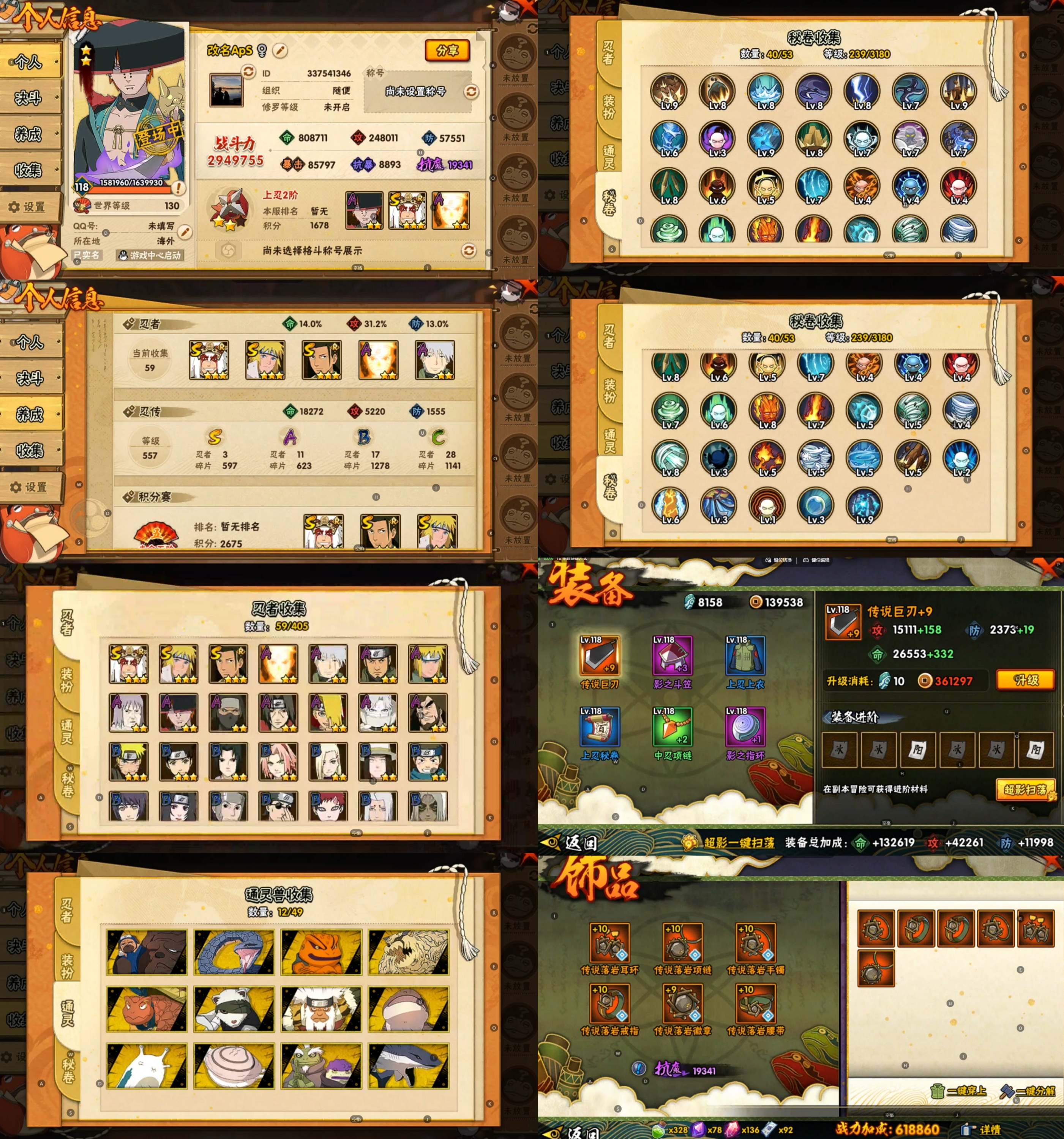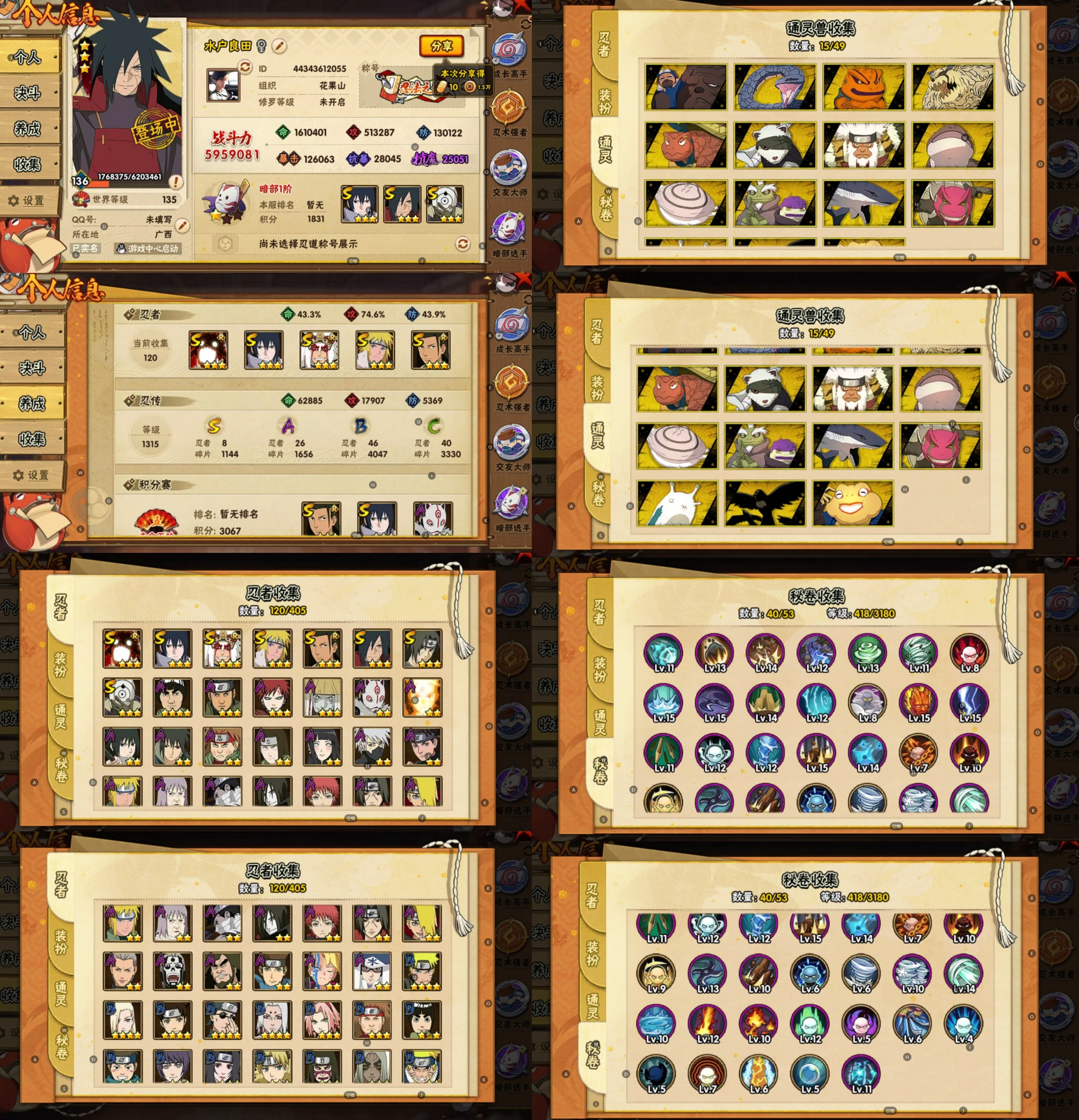 PX_2163246-8S忍/26A忍/战力595W/V10/区服3436 【S忍者】,宇智波斑「秽土转生·解」,千手柱间「木叶创立」,宇智波佐助「永恒万花筒」,自来也「舞之豪杰」,漩涡鸣人「暴怒·第六尾」,宇智波斑「白面具」,宇智波鼬「须佐能乎」,波风水门, 【A忍者】,长十郎「六代目水影」,日向宁次「忍界大战」,漩涡博人「桃式显现」,日向雏田「最终章」,宇智波泉奈,神农「羁绊」,桃地再不斩「秽土转生」,神秘面具男「忍者之路」,波风水门「青年」,宇智波佐助「须佐能乎」,漩涡鸣人「九尾查克拉」,千代「近松十人卫」,秋道丁次「忍界大战」,大蛇丸「晓」,猿飞日斩「火影继承人」,旗木卡卡西「万花筒写轮眼」,飞段「死司凭血」,飞段,迪达拉,我爱罗「疾风传」,蝎,干柿鬼鲛,宇智波鼬,猿飞阿斯玛,迈特凯,