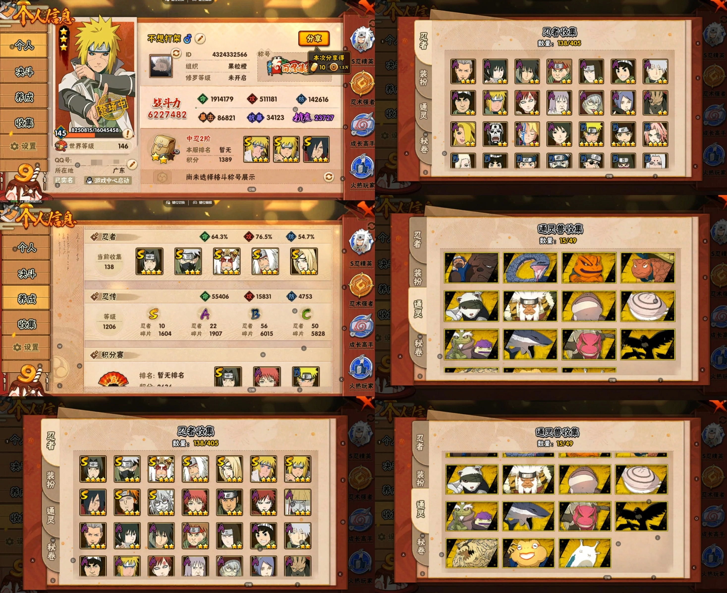 PX_2140198-15S忍/40A忍/战力795W/V11/区服65 【S忍者】,宇智波佐助「永恒万花筒」,漩涡鸣人「九喇嘛连结」,迈特凯「死门」,千手柱间「秽土转生」,自来也「舞之豪杰」,旗木卡卡西「须佐能乎」,宇智波鼬「秽土转生」,宇智波斑「秽土转生」,宇智波斑「白面具」,千手扉间「秽土转生」,宇智波斑,宇智波鼬「须佐能乎」,佩恩「天道」,波风水门,大蛇丸, 【A忍者】,长十郎「六代目水影」,蝎「绯流琥」,宇智波泉奈,宇智波止水,艾「青年」,达鲁伊「五代目雷影」,波风水门「青年」,千手扉间「漂泊武士」,奇拉比「忍界大战」,宇智波佐助「须佐能乎」,迪达拉「秽土转生」,漩涡鸣人「九尾查克拉」,千代「近松十人卫」,药师兜「半蛇斗篷」,我爱罗「忍界大战」,秋道丁次「忍界大战」,大蛇丸「晓」,猿飞阿斯玛「秽土转生」,春野樱「百豪」,波风水门「新春限定」,照美冥「五代目水影」,猿飞日斩「火影继承人」,宇智波佐助「万花筒写轮眼」,奇拉比,漩涡鸣人「仙人模式」,旗木卡卡西「万花筒写轮眼」,角都「地怨虞」,飞段「死司凭血」,角都,飞段,迪达拉,我爱罗「疾风传」,蝎,干柿鬼鲛,宇智波鼬,猿飞阿斯玛,迈特凯,桃地再不斩,
