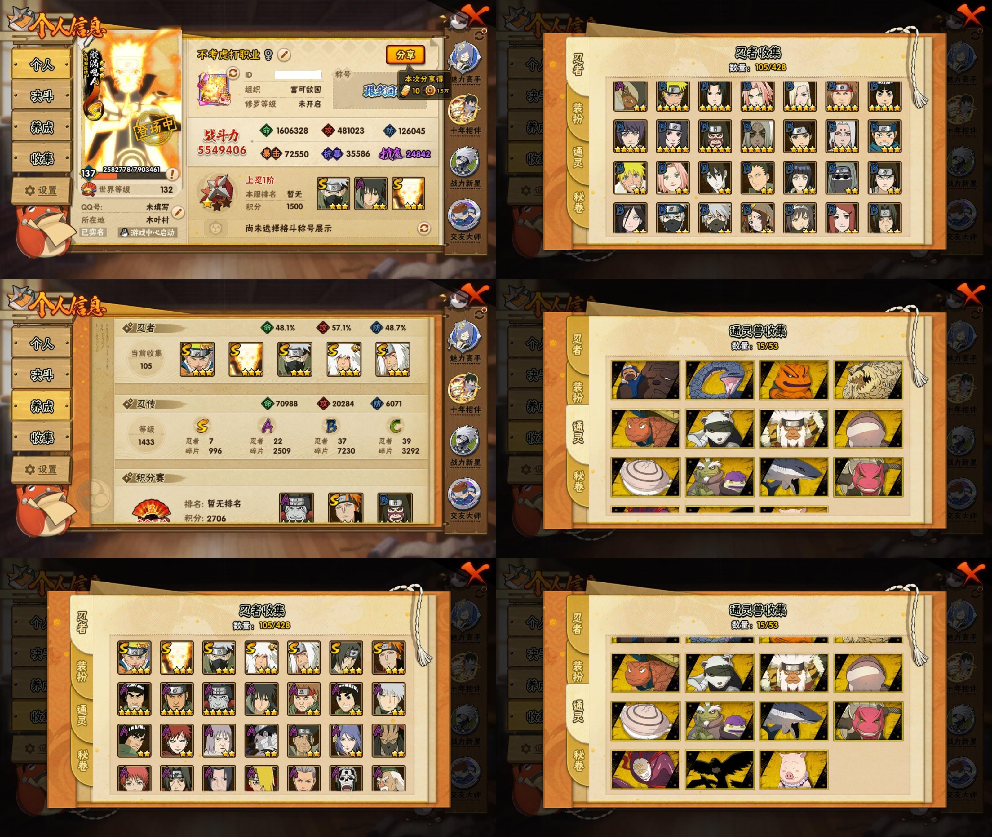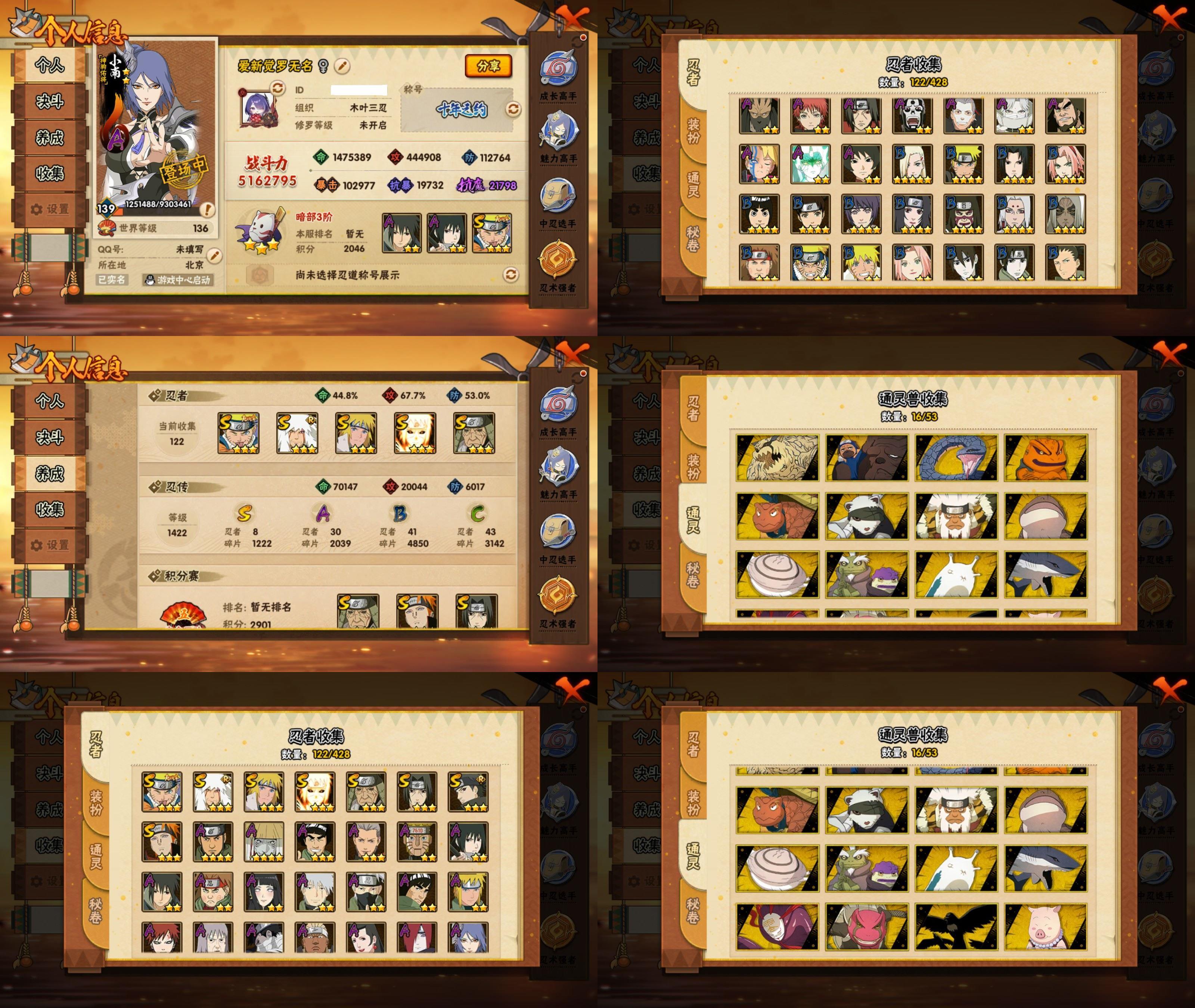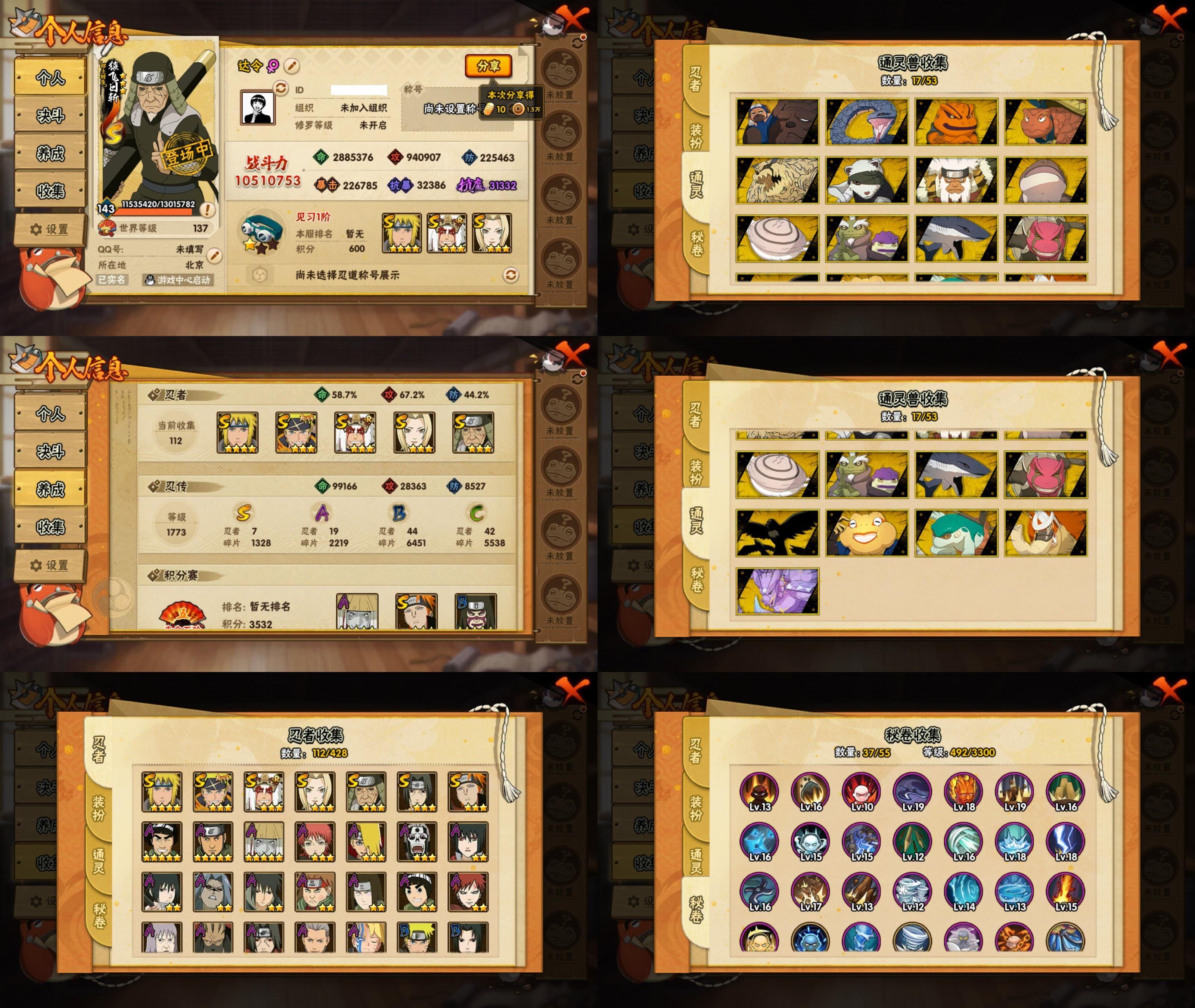PX_2523516-8S忍/30A忍/战力516W/V10/区服3472 【S忍者】,宇智波佐助「漩涡鸣人」,宇智波止水「须佐能乎」,自来也「舞之豪杰」,猿飞日斩「秽土转生」,宇智波鼬「须佐能乎」,佩恩「天道」,波风水门,波风水门「九喇嘛连结」, 【A忍者】,小南「神驹佑将」,旗木卡卡西「神威对决」,机械鸣人「初始形态」,巳月「仙人模式」,迈特凯「青春爆炸」,不缘,漩涡博人「桃式显现」,日向雏田「最终章」,旗木卡卡西「幻之真容」,蝎「绯流琥」,宇智波泉奈,神农「羁绊」,桃地再不斩「秽土转生」,长门「青年」,艾「青年」,波风水门「青年」,黑土「四代目土影」,飞段「恶灵之影」,宇智波佐助「须佐能乎」,千代「近松十人卫」,秋道丁次「忍界大战」,飞段「死司凭血」,飞段,我爱罗「疾风传」,蝎,干柿鬼鲛,宇智波鼬,猿飞阿斯玛,迈特凯,卑留呼「火之意志继承者」,