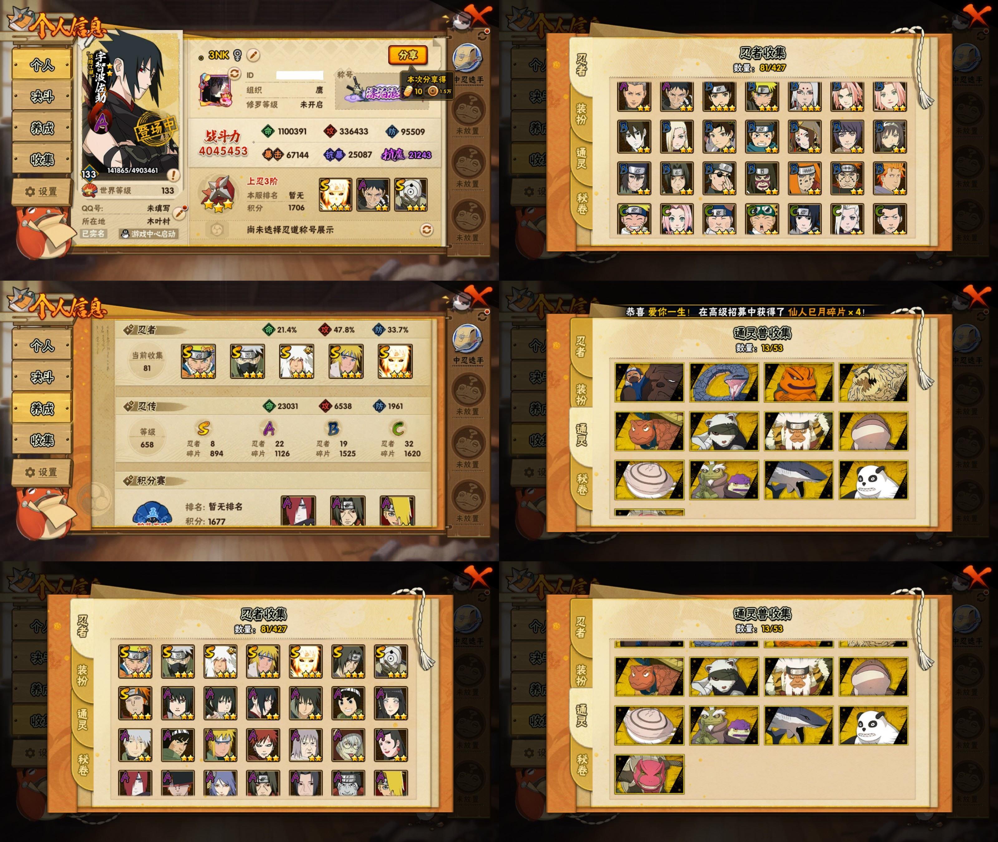 PX_2500971-9S忍/25A忍/战力399W/V4/区服2484 【S忍者】,宇智波佐助「漩涡鸣人」,宇智波斑「秽土转生·解」,宇智波带土「忍界大战」,自来也「舞之豪杰」,旗木卡卡西「须佐能乎」,宇智波鼬「须佐能乎」,佩恩「天道」,波风水门,大蛇丸, 【A忍者】,小南「神驹佑将」,迈特凯「青春爆炸」,长十郎「六代目水影」,日向宁次「忍界大战」,宇智波鼬「夏日限定」,旗木卡卡西「幻之真容」,李洛克「忍界大战」,宇智波泉奈,达鲁伊「五代目雷影」,波风水门「青年」,奇拉比「忍界大战」,宇智波佐助「须佐能乎」,迪达拉「秽土转生」,漩涡鸣人「九尾查克拉」,千代「近松十人卫」,秋道丁次「忍界大战」,宇智波佐助「万花筒写轮眼」,奇拉比,旗木卡卡西「万花筒写轮眼」,飞段,我爱罗「疾风传」,蝎,干柿鬼鲛,宇智波鼬,