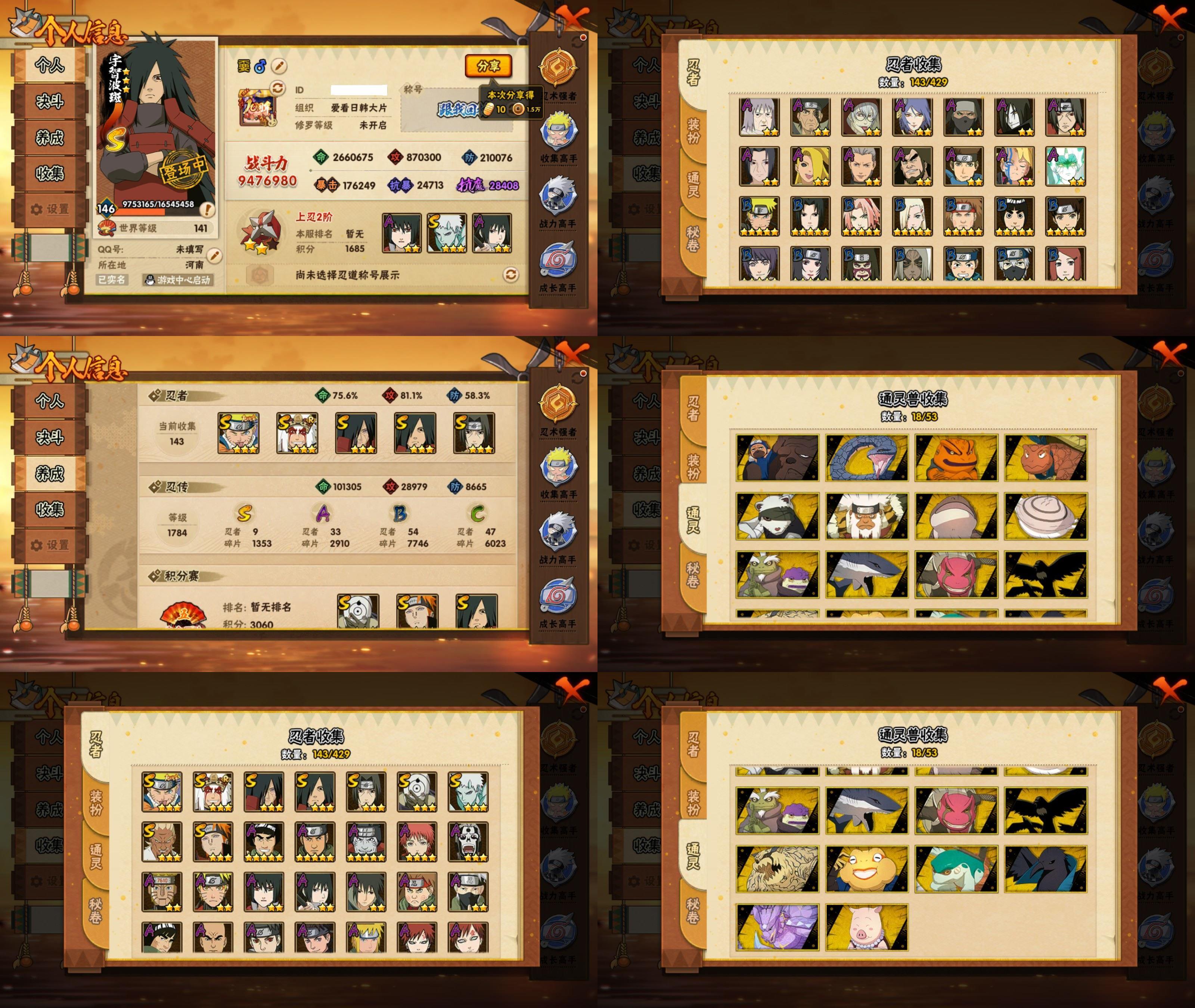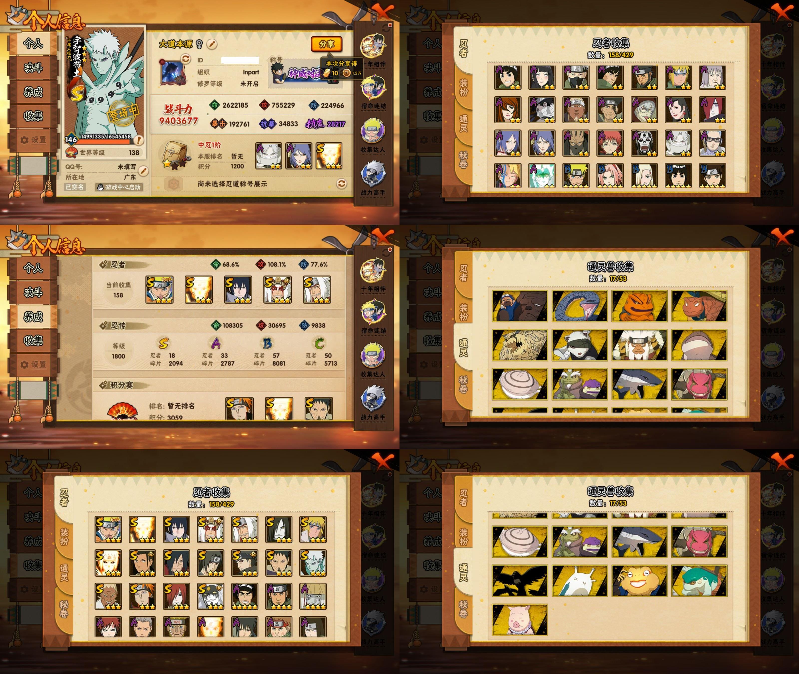 PX_2541428-9S忍/33A忍/战力947W/V3/区服1758 【S忍者】,宇智波带土「十尾人柱力」,宇智波佐助「漩涡鸣人」,艾「忍界大战」,自来也「舞之豪杰」,宇智波斑「秽土转生」,宇智波斑「白面具」,宇智波斑,宇智波鼬「须佐能乎」,佩恩「天道」, 【A忍者】,小南「神驹佑将」,旗木卡卡西「神威对决」,机械鸣人「初始形态」,巳月「仙人模式」,迈特凯「青春爆炸」,土台「忍界大战」,漩涡博人「桃式显现」,宇智波鼬「夏日限定」,宇智波泉奈,神农「羁绊」,宇智波止水,波风水门「青年」,宇智波佐助「须佐能乎」,迪达拉「秽土转生」,猿飞木叶丸「博人传」,角都「晓创生」,千代「近松十人卫」,药师兜「半蛇斗篷」,地陆,我爱罗「忍界大战」,秋道丁次「忍界大战」,大蛇丸「晓」,猿飞日斩「火影继承人」,宇智波佐助「万花筒写轮眼」,漩涡鸣人「仙人模式」,飞段「死司凭血」,飞段,我爱罗「疾风传」,蝎,干柿鬼鲛,宇智波鼬,猿飞阿斯玛,迈特凯,