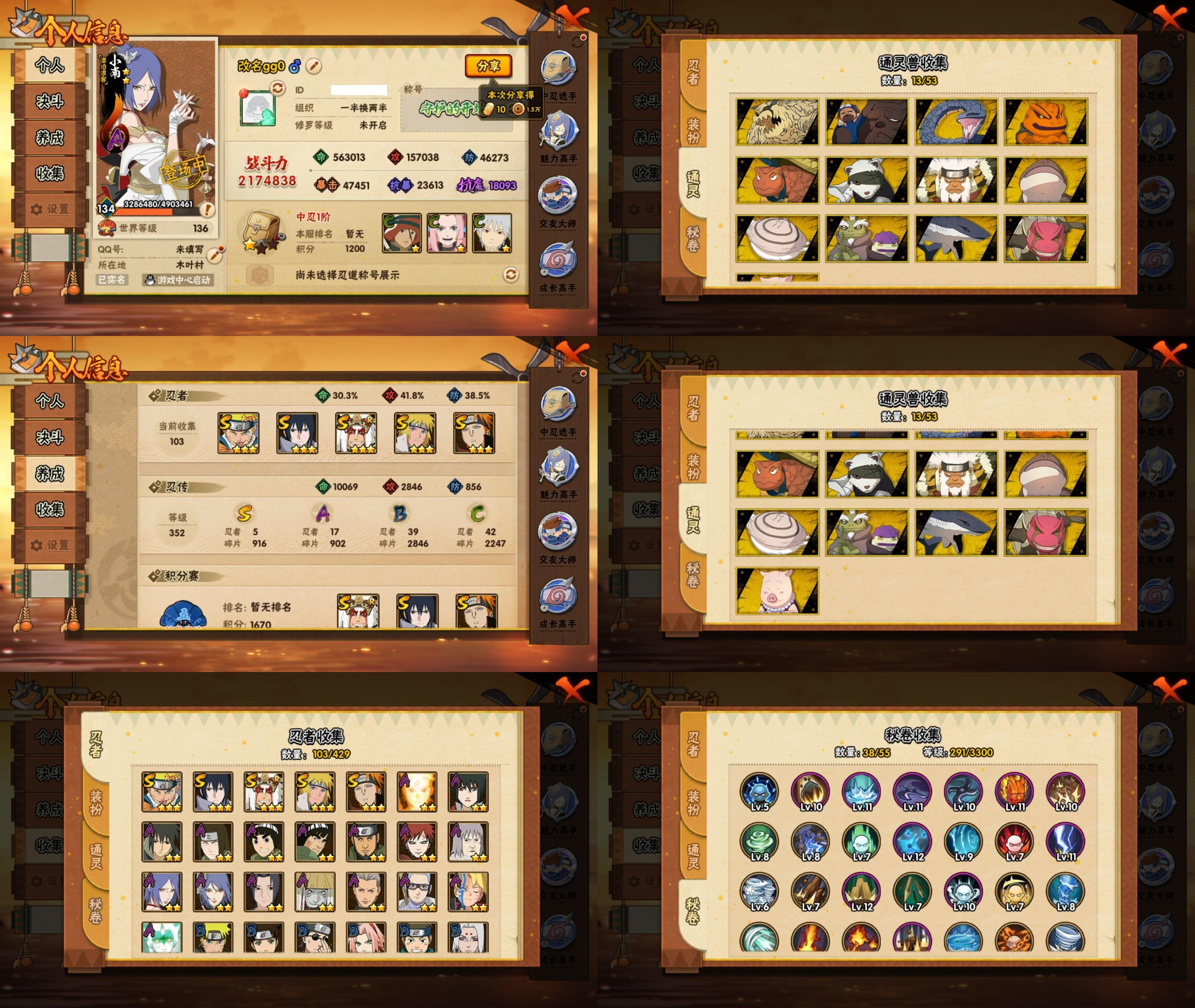 PX_2540850-9S忍/23A忍/战力536W/V6/区服3501 【S忍者】,宇智波佐助「漩涡鸣人」,宇智波斑「秽土转生·解」,宇智波佐助「永恒万花筒」,宇智波带土「忍界大战」,自来也「舞之豪杰」,宇智波斑「白面具」,宇智波鼬「须佐能乎」,佩恩「天道」,波风水门, 【A忍者】,小南「神驹佑将」,旗木卡卡西「神威对决」,机械鸣人「初始形态」,巳月「仙人模式」,迈特凯「青春爆炸」,土台「忍界大战」,长十郎「六代目水影」,不动,宇智波泉奈,神农「羁绊」,角都「秽土转生」,神秘面具男「忍者之路」,波风水门「青年」,宇智波佐助「须佐能乎」,漩涡鸣人「九尾查克拉」,千代「近松十人卫」,秋道丁次「忍界大战」,飞段「死司凭血」,飞段,蝎,干柿鬼鲛,猿飞阿斯玛,迈特凯,
