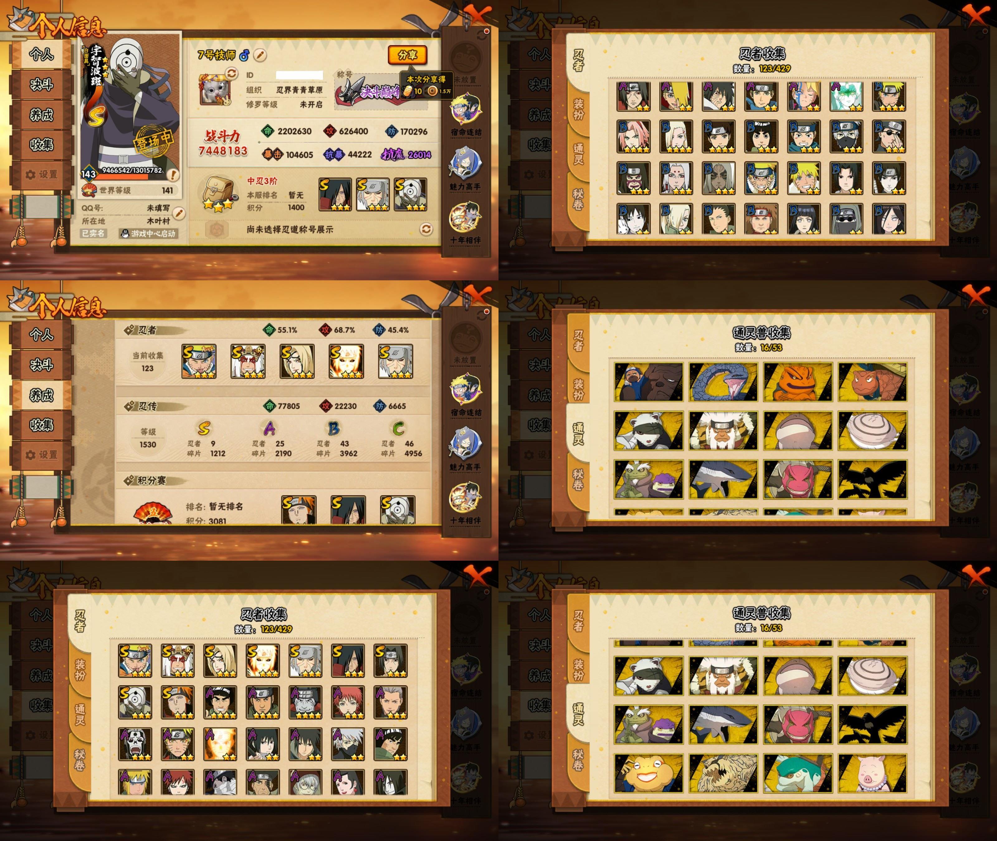 PX_2540891-26S忍/46A忍/战力1262W/V11/区服1489 【S忍者】,宇智波佐助「漩涡鸣人」,宇智波止水「须佐能乎」,艾「忍界大战」,宇智波斑「秽土转生·解」,宇智波佐助「永恒万花筒」,春野樱「忍界大战」,自来也「舞之豪杰」,旗木卡卡西「须佐能乎」,自来也「传说中的三忍」,漩涡鸣人「暴怒·第六尾」,宇智波鼬「秽土转生」,药师兜「仙人模式」,宇智波斑「秽土转生」,宇智波斑「白面具」,半藏「秽土转生」,千手扉间「秽土转生」,波风水门「秽土转生」,无「二代目土影」,猿飞日斩「秽土转生」,自来也「仙人模式」,宇智波鼬「须佐能乎」,佩恩「天道」,猿飞日斩,波风水门,大蛇丸,纲手, 【A忍者】,宇智波带土「漂泊浪客」,宇智波佐助「侠隐江湖」,波风水门「新春限定」,小南「新春限定」,桃地再不斩「漂泊武士」,宇智波止水「新春限定」,小南「神驹佑将」,旗木卡卡西「神威对决」,机械鸣人「初始形态」,纲手「妖怪奇谭」,迈特凯「青春爆炸」,长十郎「六代目水影」,漩涡博人「桃式显现」,日向雏田「最终章」,李洛克「忍界大战」,蝎「绯流琥」,宇智波泉奈,神农「羁绊」,角都「秽土转生」,宇智波止水,波风水门「青年」,黑土「四代目土影」,宇智波佐助「须佐能乎」,迪达拉「秽土转生」,猿飞木叶丸「博人传」,漩涡鸣人「九尾查克拉」,千代「近松十人卫」,药师兜「半蛇斗篷」,我爱罗「忍界大战」,大蛇丸「晓」,春野樱「百豪」,宇智波佐助「万花筒写轮眼」,志村团藏,漩涡鸣人「仙人模式」,旗木卡卡西「万花筒写轮眼」,角都「地怨虞」,飞段「死司凭血」,小南,飞段,迪达拉,我爱罗「疾风传」,蝎,干柿鬼鲛,宇智波鼬,猿飞阿斯玛,迈特凯,