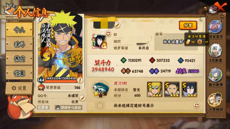 PX_2487754-忍者6,A忍者11,通灵11】【安卓Q-3242区-133级-V1-189万战力】【S级】宇智波鼬「须佐能乎」,佩恩「天道」,漩涡鸣人·宇智波佐助,自来也「舞之豪杰」,波风水门,宇智波佐助「永恒万花筒」【A级】不缘,长十郎「六代目水影」,宇智波佐助「须佐能乎」,迈特凯「青春爆炸」,漩涡博人「桃式显现」,黑土「四代目土影」,小南「神驹佑将」,我爱罗「疾风传」,宇智波泉奈,角都「地怨虞」,神