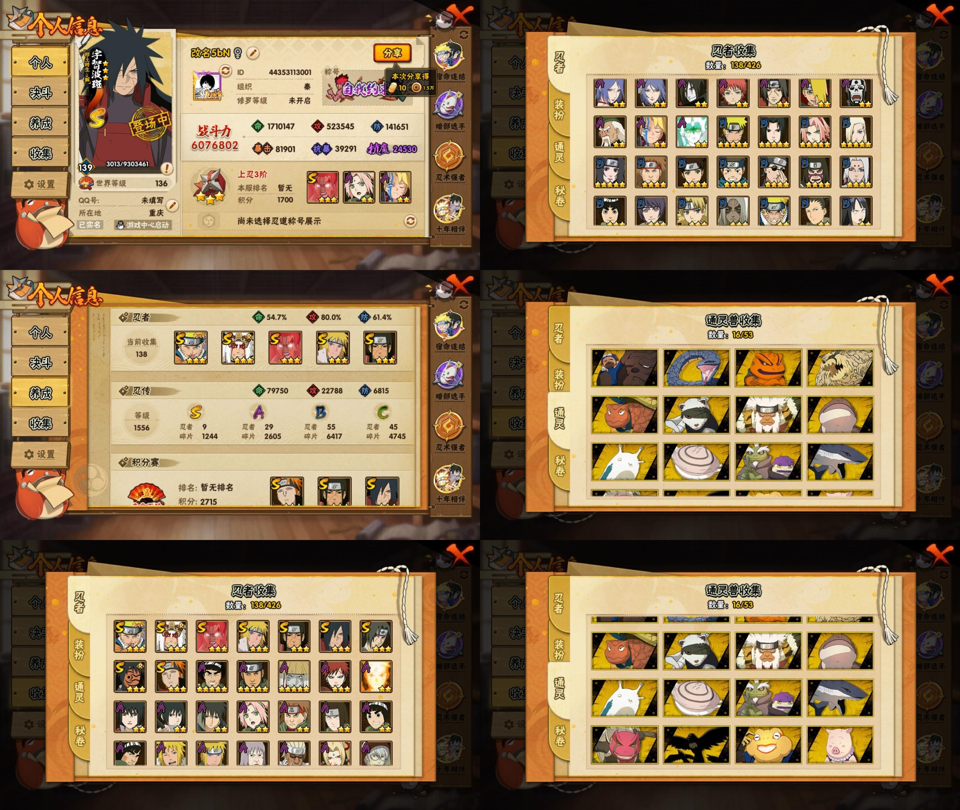 PX_2476148-6S忍/30A忍/战力487W/V10/区服3964 【S忍者】,宇智波佐助「漩涡鸣人」,宇智波止水「须佐能乎」,自来也「舞之豪杰」,旗木卡卡西「须佐能乎」,宇智波鼬「须佐能乎」,佩恩「天道」, 【A忍者】,机械鸣人「初始形态」,巳月「仙人模式」,迈特凯「青春爆炸」,不缘,漩涡博人「桃式显现」,旗木卡卡西「幻之真容」,李洛克「忍界大战」,蝎「绯流琥」,宇智波泉奈,宇智波带土「漂泊浪客」,神农「羁绊」,桃地再不斩「秽土转生」,长门「青年」,神秘面具男「忍者之路」,波风水门「青年」,宇智波佐助「须佐能乎」,宇智波鼬「新春限定」,宇智波佐助「疾风传咒印」,秋道丁次「忍界大战」,大蛇丸「晓」,飞段「死司凭血」,飞段,迪达拉,我爱罗「疾风传」,蝎,干柿鬼鲛,宇智波鼬,猿飞阿斯玛,迈特凯,