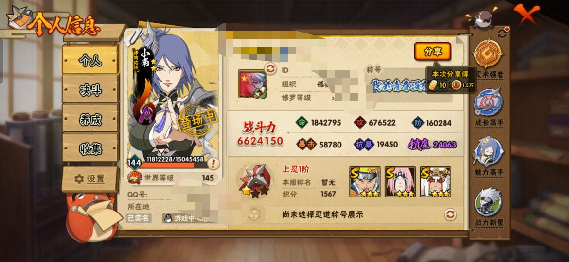 PX_2464674-服】2651【等级】139【S级数量】10【A级数量】23【B级数量】50【C级数量】36【S级】旗木卡卡西「须佐能乎」,漩涡鸣人·宇智波佐助,漩涡鸣人「九喇嘛连结」,迈特凯「死门」,宇智波鼬「须佐能乎」,春野樱「忍界大战」,佩恩「天道」,自来也「舞之豪杰」,大蛇丸,波风水门,【A级】长门「青年」,飞段「死司凭血」,黑土「四代目土影」,旗木卡卡西「幻之真容」,春野樱「百豪」,秋道丁次「忍