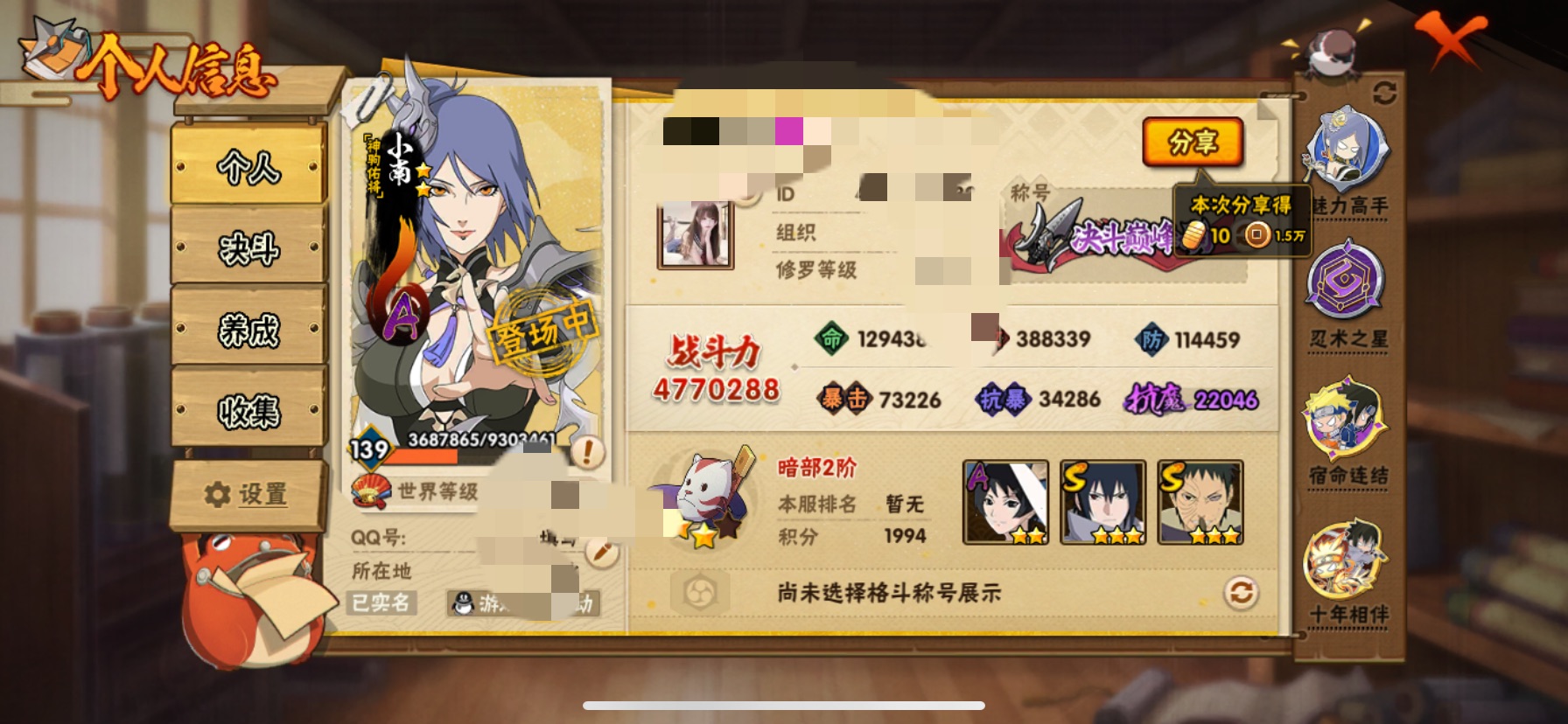PX_2462987-服】安卓Q,3480【等级】139【S级数量】13【A级数量】30【B级数量】49【C级数量】46【S级】宇智波鼬「秽土转生」,旗木卡卡西「须佐能乎」,大筒木桃式,佩恩「天道」,宇智波鼬「须佐能乎」,艾「忍界大战」,波风水门,漩涡鸣人·宇智波佐助,宇智波斑「五影会谈」,宇智波佐助「永恒万花筒」,宇智波止水「须佐能乎」,波风水门「九喇嘛连结」,自来也「舞之豪杰」【A级】漩涡鸣人「九尾查克拉