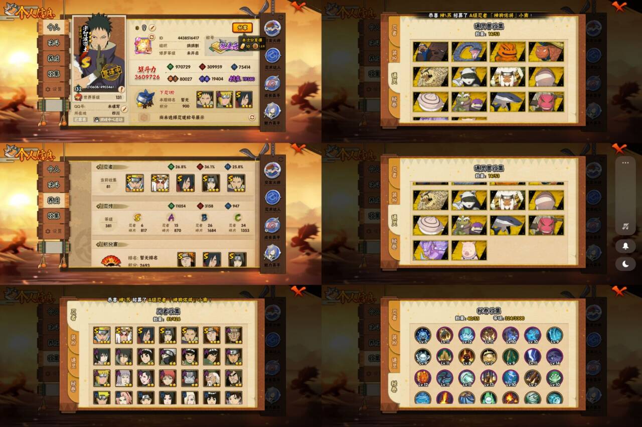 PX_2456958-6S忍/15A忍/战力360W/V6/区服3851 【S忍者】,宇智波佐助「漩涡鸣人」,宇智波斑「秽土转生·解」,宇智波带土「忍界大战」,自来也「舞之豪杰」,宇智波鼬「须佐能乎」,佩恩「天道」, 【A忍者】,机械鸣人「初始形态」,大野木「侠隐江湖」,迈特凯「青春爆炸」,不缘,李洛克「忍界大战」,宇智波泉奈,神农「羁绊」,波风水门「青年」,宇智波佐助「须佐能乎」,旗木卡卡西「忍界大战」,千代「近松十人卫」,蝎,干柿鬼鲛,猿飞阿斯玛,迈特凯,