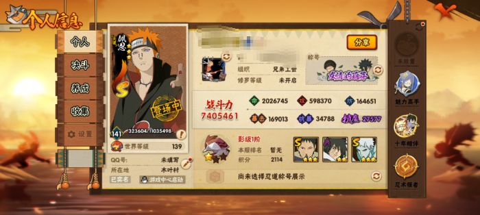 PX_2544653-每日捡漏价100个】可二次,安卓Q【2182区,VIP5,11S,31A,15通灵,640w战力】【区服】2182【等级】144【S级数量】11【A级数量】31【B级数量】66【C级数量】49【S级】自来也「传说中的三忍」,自来也「舞之豪杰」,宇智波带土「忍界大战」,宇智波带土「十尾人柱力」,宇智波鼬「秽土转生」,波风水门,宇智波佐助「永恒万花筒」,佩恩「天道」,宇智