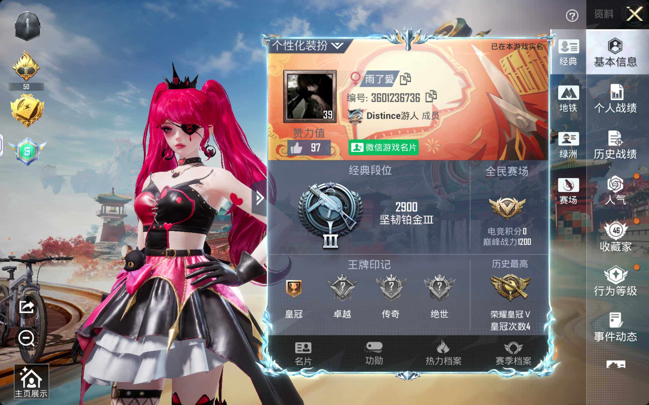 PX_2549233-,苹果微信-23王牌印记-23粉装-15特效枪-9载具-热力值-265套装-346枪皮 【23粉装】套装-香水柠檬,套装-PEL轰鸣竞梦者,套装-烈焰拳霸,套装-冰霜白皇,套装-银刃赛罗,角色-洛天依,套装-缤纷油彩,套装-宝贝奶油派,套装-快乐主宰,套装-天使彩虹糖,套装-俏皮狐尾,套装-彩虹鹿灵,套装-暗星紫秘,套装-仲夏莫吉托,套装-山涧鹿灵,套装-古堡领主,套装-天启纪元,套装-妙趣可丽,套装-暗夜玫瑰,套装-吟月归客,套装-天之羽翼,套装-蝶舞迷情,套装-梦幻火箭 【15特效枪】SLR-暗夜玫瑰/4级,M762-甜蜜誓约/5级,M416-至情至圣/9级,M249-彩虹甜喵/1级,Mini14-龙虾霸霸/4级,Kar98K-伏魔团/4级,S12K-海渊国主/5级,SCAR-L-童趣迷兔/7级,MG3-洛神天依/7级,UMP45-恐龙拽拽/5级,M24-暗星紫秘/4级,AKM-炫紫旋律/7级,GROZA-香水柠檬/5级,UZI-绮梦青鸾/3级,M416-五爪金龙/3级 【8稀有紫装】深海小丑鱼,浪漫天命,雪山精英,浪漫波比,迅捷狂鲨,小丑鱼,暗夜魅影,萌熊伴侣背包(3级) 【9稀有载具】玛莎拉蒂Ghibli(粉),特斯拉Roadster(水滴蓝),特斯拉Model,3(珍珠白),阿斯顿·马丁DBS(红),萌喵橘座,兰博基尼URUS(明艳黄),兰博基尼Aventador,SVJ(翡翠绿),合金龙骨(蓝),双人摩托-双刃魅影(红) 【265稀有时装】梦幻火箭,缤纷油彩,宝贝奶油派,天使彩虹糖,蝶舞迷情,洛天依,彩虹鹿灵,暗夜玫瑰,古堡领主,暗星紫秘,PEL轰鸣竞梦者,天启纪元,妙趣可丽,俏皮狐尾,银刃赛罗,冰霜白皇,山涧鹿灵,吟月归客,快乐主宰,天之羽翼,香水柠檬,烈焰拳霸,仲夏莫吉托,浪漫天命,雪山精英,深海小丑鱼,小丑鱼,迅捷狂鲨,浪漫波比,好奇恐龙,激萌罗小黑,大橘为重,萌趣咩咩,神秘黑猫,软萌银虎,海上生明月,诡面顽熊,暗夜魅影,无畏开拓者,迷域探索者,机械英豪,机械征服者,SS5特训,冰原使者,SS16特训,暴风机械师,时空追击者,星辰守护者,浴火魔神,暗夜傀儡,红酒骑士,醒狮腾龙,拳皇97八神庵,蔷薇魔法师,冰川谧蓝,云纹魔法士,焰山流火,威严将相,黑色刀锋,冰爽风暴,极乐追光,炫光向阳,天空之恋,福星高照,暗夜契约,海龙战士,纯白誓言,豚鼠丹丹,精密机核,虎虎生威吉莉,夏日音浪,清香五月粽,软嫩糖心蛋,魔力冰咖,SS8特训,众神之王,爱神,智慧之神,白熊同盟,萌黄之夏,隐空刺,SS37特训,月蓝流光,PEL躁动竞梦者,海滨突袭者,超能拳王,S6赛事,摇滚狂鲨,深海来使,极速竞梦,飞驰魅影,音速流光,热血青春,冰川格斗者,爆竹金鼠,SS9特训,白月香洋装,不夜海上花,森林猎手,酷潮明星,涂山之恋,抹茶蜜豆,薄荷蓝莓,黎明保卫者,炫蓝之夏,竞技名士,深蓝色名流,长空猛禽,竞技勇士朋克,安第斯皇冠,特战装甲,乘风破浪,战地菁英,灰色格斗者,六六大吉,甜蜜告白,辉星之火,怒火燎原,魅力单车,雪山征服者,夜莺强袭者,野性战魂,猎梦纪元,丛林猎人,甜心亚梦,SS2特训,战地领军,虚音幻奏,派对绅士,传奇侦探,极地朋克,幻世战舞者,战地督导,甜蜜菠萝,特殊使命,半糖蓝莓,恒星战甲,午夜朋克,青涩时光,青春校园,暖心熊熊,特种空勤,牛气满满,和平特警,娇憨猪猪,风暴特警,春日漫步,冰川特警,潮流先锋,雷霆特警,龙腾端午,幻影公爵,滨海假日,麻辣教官,SS3特训,冰冻风暴,韶华初心,攀登者,梦之呓语,SS11特训,SS4特训,俏皮奶喵,青春冒险家,暖心橘喵,摇滚战魂,潮流游乐家,疯狂小兔子,青龙圣者,圣诞大吉,玄武圣者,朱雀圣者,凛冬战士,白虎圣者,北国孤狼,蓝彩潮人,SS6特训,千禧之恋,诡谋托雷基亚,神秘领域,炽焰拳师,绮丽涂鸦,骁骑迪迦,格斗专家,坚韧舞者,奇迹天团,竞技达人朋克,淡雅花蕊,玲珑飞花,原初圣火,逆风勇士,跃动心情,初火先锋,SS7特训,核芯基因,精神漫游,娴静芝兰,霓虹街区,田园牧歌,萌趣颜团子,轻风白浪,SS10特训,特种颜团子,沙漠兵团,闪金天王,镭射皇者,风华少年志,探宝勇士,无烬之地,SS12特训,牛气冲天,迅捷之星,SS18特训,治愈之星,银白舞王,科技之星,SS13特训,飞行日记,SS17特训,瑞龙福将,团圆交子,蓝调潮人,绚烂繁星,遗落祭司,缤纷焰火,光影梦想家,异彩先驱,霓虹极客,空投萌叽,装甲骑士,SS19特训,SS20特训,SS21特训,玉兔迎春,弄潮海豚,梦起落英,SS22特训,SS23特训,呆萌铁蟹,浪漫樱花,甜蜜熊情侣,双棍侠客,滨海厨神,SS14特训,天籁歌者,电音精灵,龙舌兰冰茶,神气柴柴,忍者信条,妙红点点,幻彩翩翩,格斗先锋,吉莉礼服,刚毅裁决者,SS1特训,王牌教练,荣耀,柠萌假日,SS24特训,鹤鸣,懵萌河马,初雨海棠,快乐星愿,SS15特训,舞夜骑士,深蓝冒险家 【346稀有枪械】M416-至情至圣/9级,M416-五爪金龙/3级,AKM-炫紫旋律/7级,SCAR-L-童趣迷兔/7级,GROZA-香水柠檬/5级,M762-甜蜜誓约/5级,Kar98K-伏魔团/4级,M24-暗星紫秘/4级,Mini14-龙虾霸霸/4级,SLR-暗夜玫瑰/4级,UZI-绮梦青鸾/3级,UMP45-恐龙拽拽/5级,S12K-海渊国主/5级,M249-彩虹甜喵/1级,MG3-洛神天依/7级,M416-神秘黑猫,M416-潮汐统领,M416-乌木金纹,M416-蓝色火焰,M416-夜灯,M416-糯团青竹,M416-暗夜行者,M416-暗星紫秘,AKM-夜灯,AKM-四圣焕新,AKM-生命誓言,AKM-乌木金纹,AKM-彩虹符号,AKM-海渊国主,AKM-春暖花开,AKM-冰凉西瓜,AKM-玉龙,AKM-天启纪元,AKM-灼热熔岩,AKM-虎虎生威,AKM-恐龙拽拽,AKM-萌趣颜团子,AKM-阿狸红,AKM-霓虹街区,AKM-沙漠守护者,SCAR-L-雷霆特警,SCAR-L-玉兔迎春,SCAR-L-乌木金纹,SCAR-L-暗夜玫瑰,SCAR-L-甜蜜誓约,SCAR-L-龙宫之主,SCAR-L-王牌四分卫,SCAR-L-夏日绵绵冰,SCAR-L-繁花小夜曲,SCAR-L-流星咚咚,SCAR-L-炫彩节奏,M16A4-机械英豪,M16A4-红色方程式,M16A4-蓝色火焰,M16A4-龙虾霸霸,M16A4-甜心亚梦,M16A4-魔法学院,M16A4-